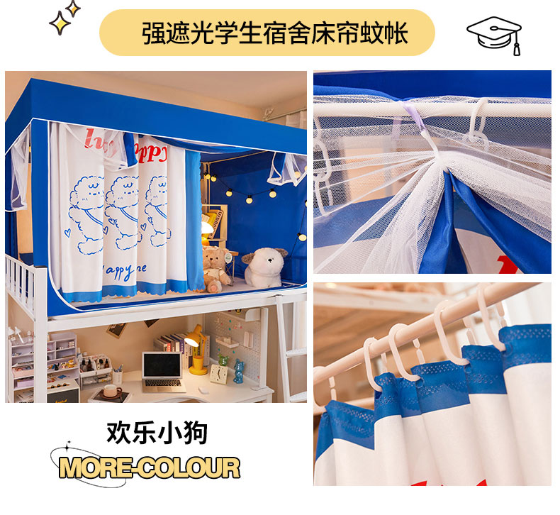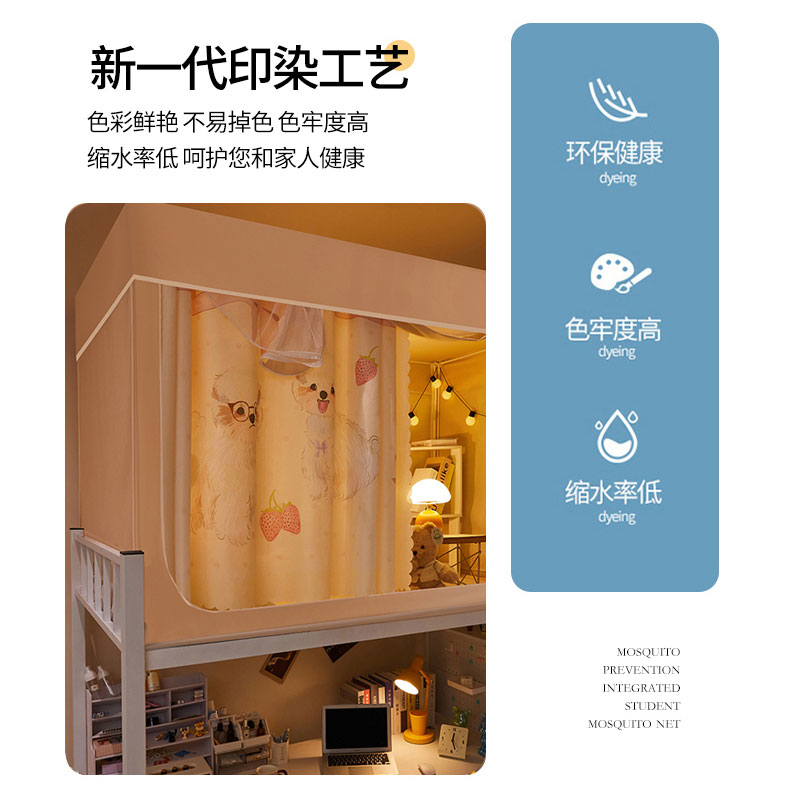 水妙家纺 2025年新款强遮光学生上下铺床帘蚊账 干饭熊宝