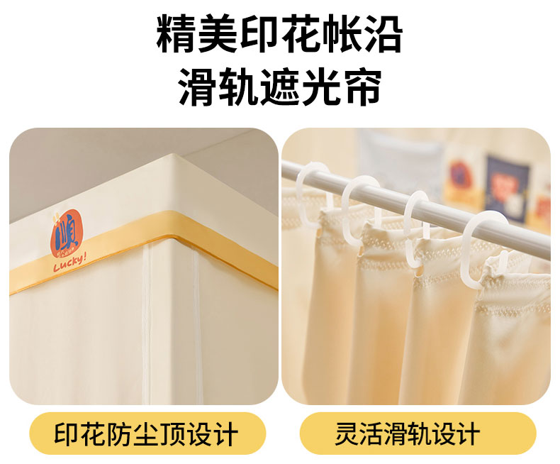 水妙家纺 2025新款加厚强遮光蚊账学生宿舍上下铺130克斜纹加厚床帘蚊账 发财暴富