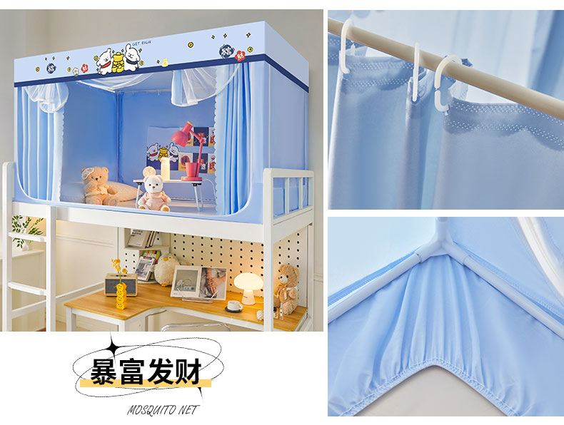 商品名称:水妙家纺 2025新款加厚强遮光蚊账学生宿舍上下铺130克斜纹加厚床帘蚊账 发财暴富