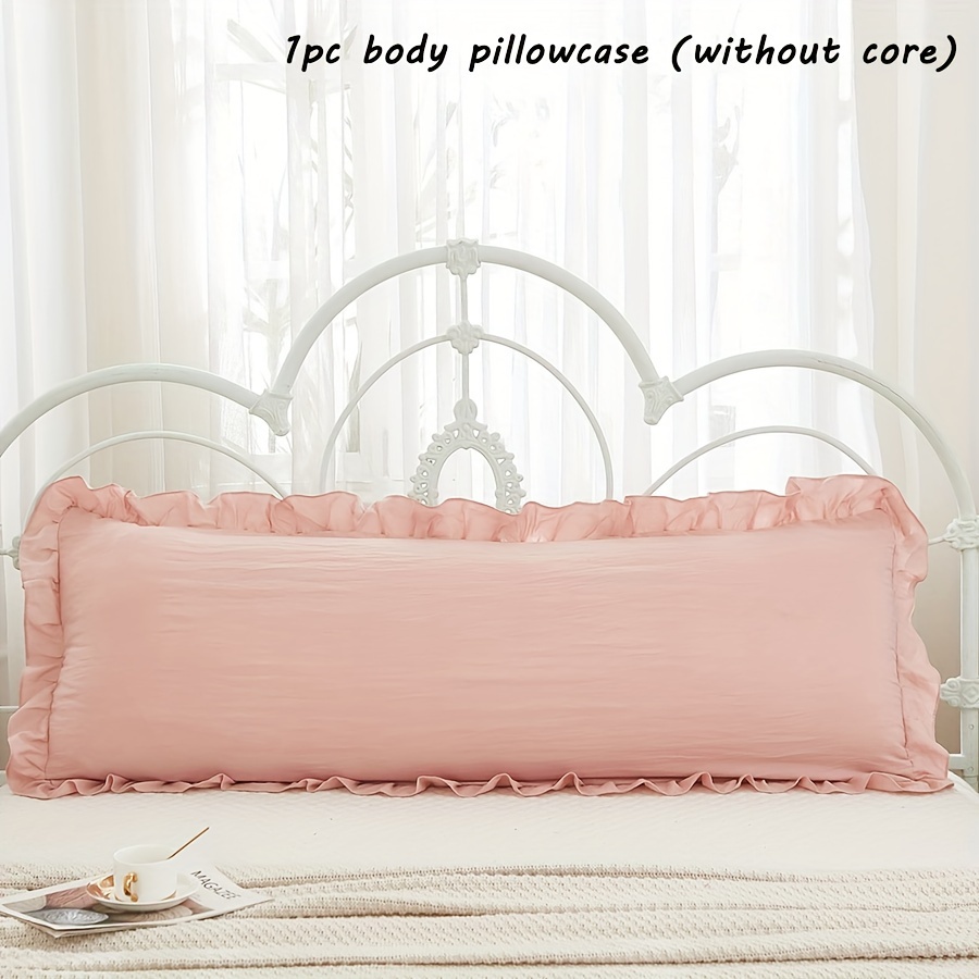 (总)跨境专供 化纤磨毛纯色荷叶边枕套长枕单枕套51*137