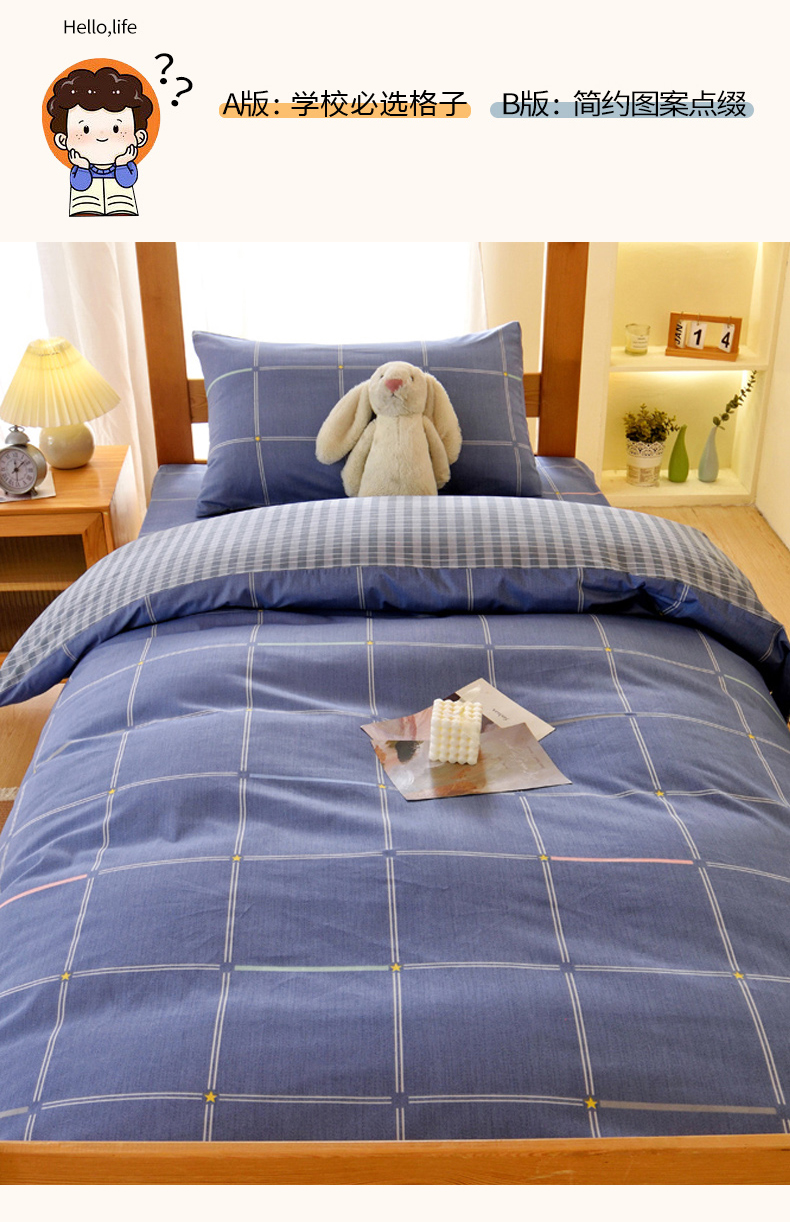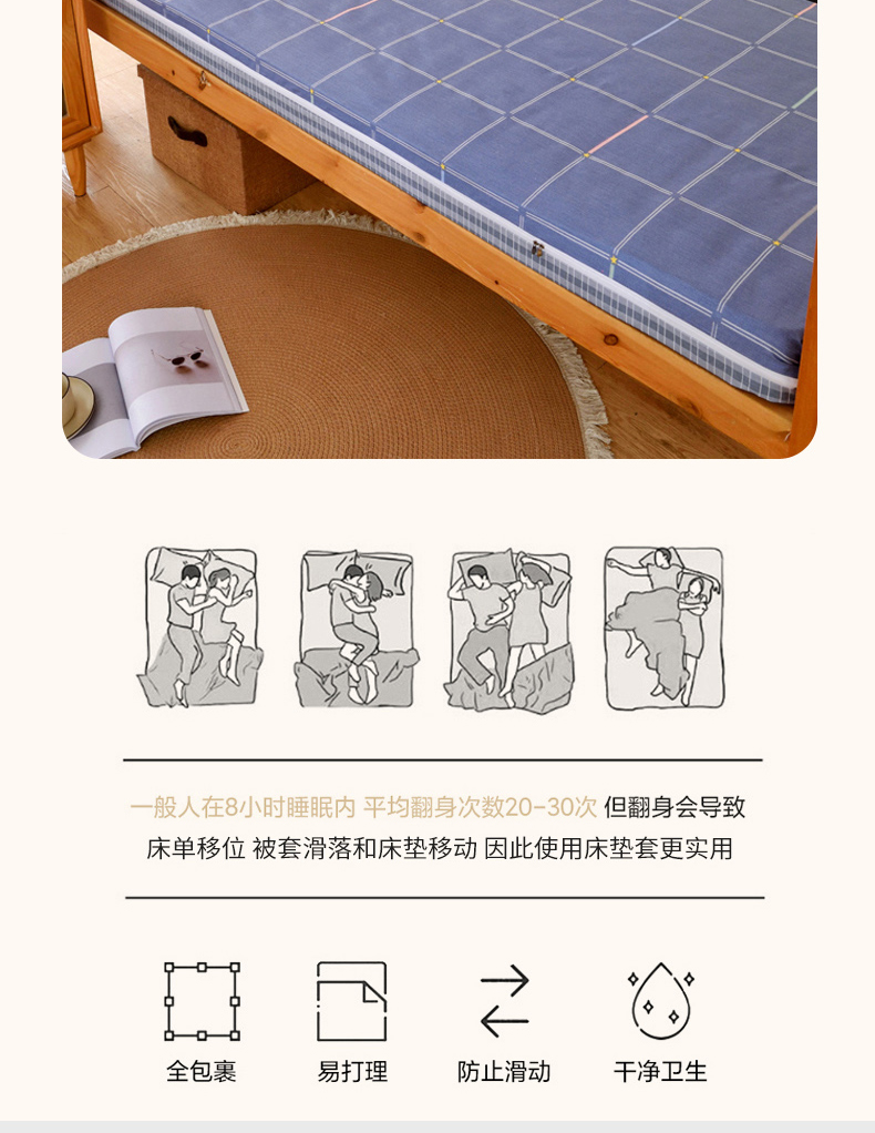 当前位置: 91家纺网 > 商品网购 > 床垫/床褥 > 普通床垫 > 水妙家纺 2025年新款A类全棉纯棉学生宿舍上下铺床垫套六件套三件套 床垫套念初-蓝