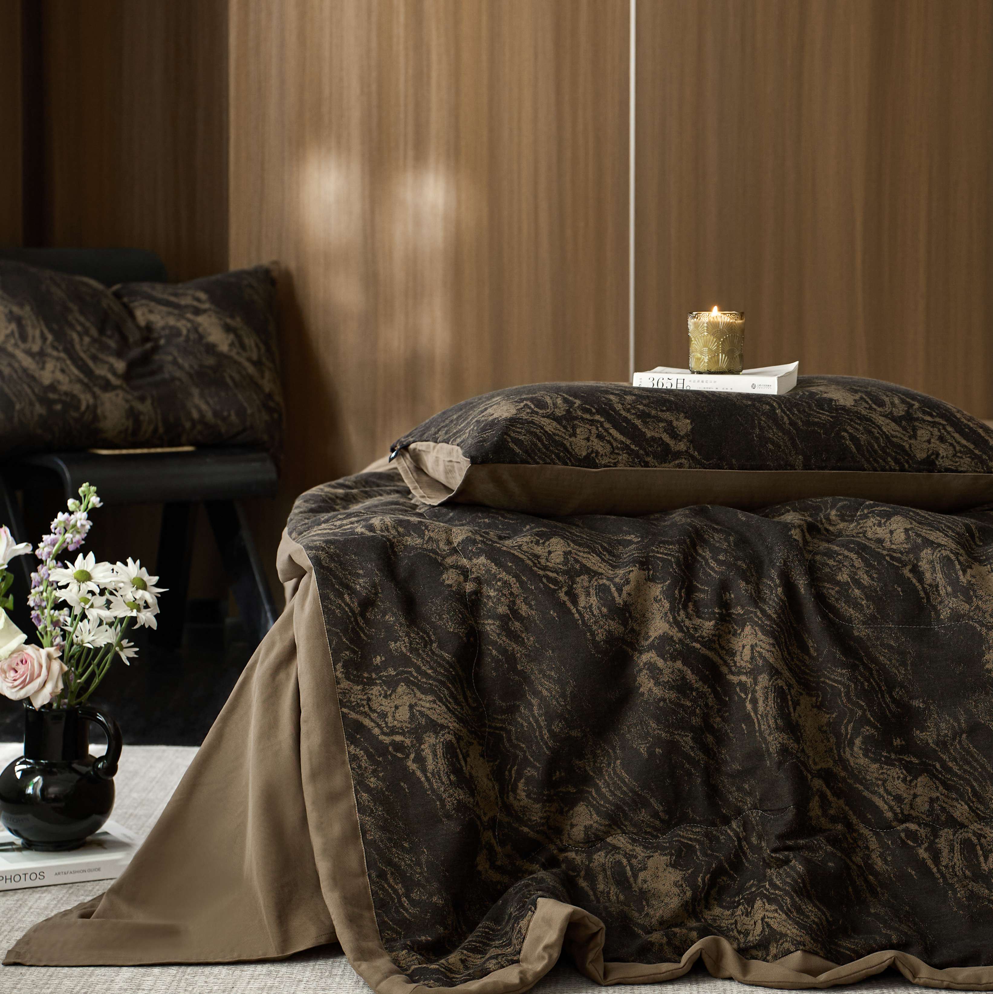 (总)安莱生活 2025春夏新款空气层色织提花四件套费尔岛系列,费尔岛-茶棕,费尔岛-咖啡,费尔岛-银灰