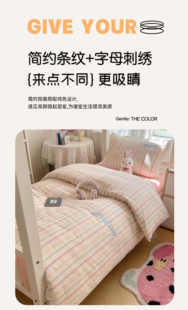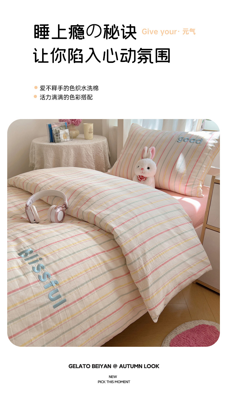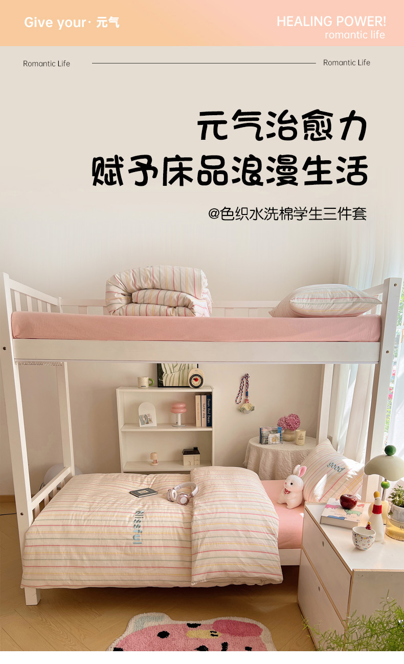 当前位置: 91家纺网 > 商品网购 > 床品套件 > 三件套 > 丽涵家纺 2025新款色织水洗棉刺绣学生三件套 韵律-粉