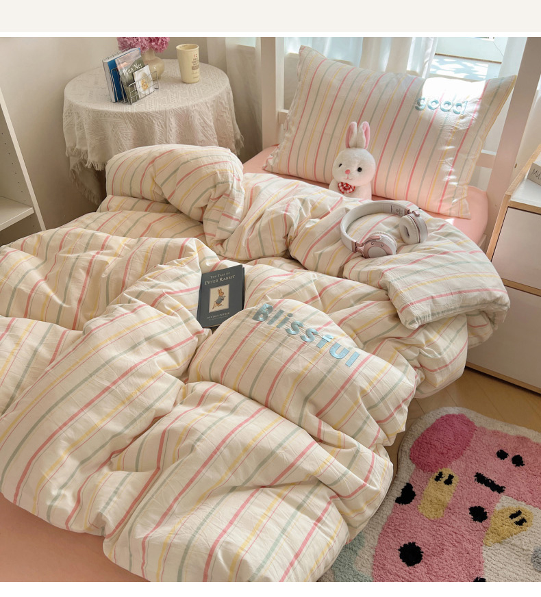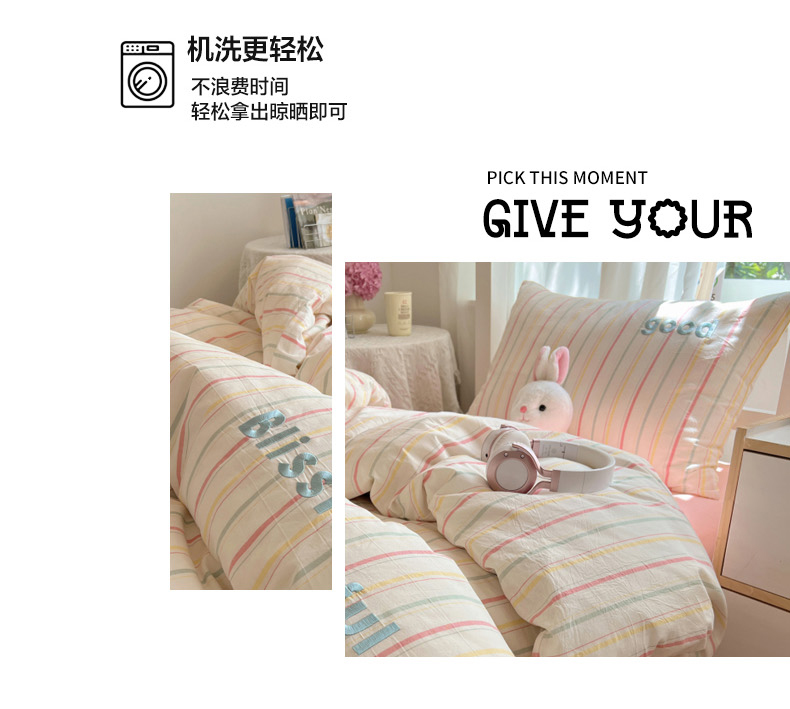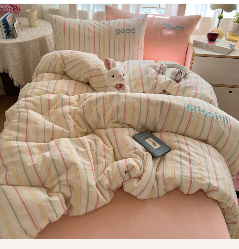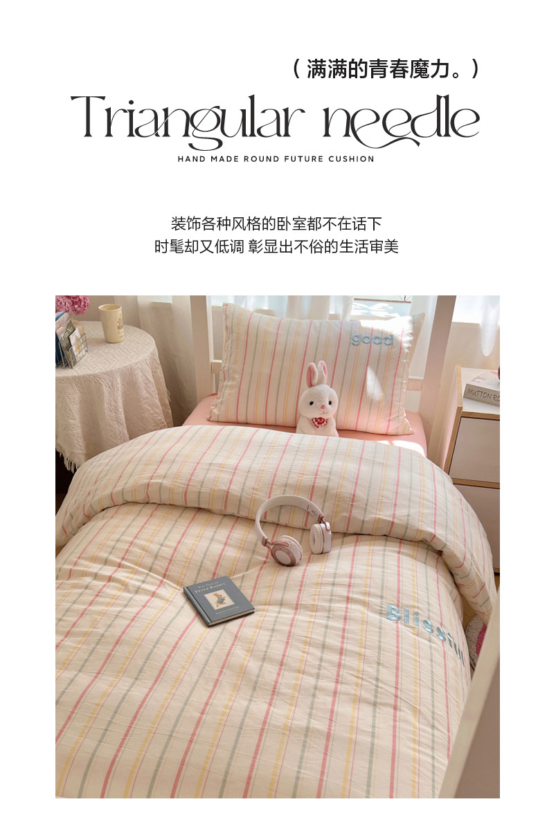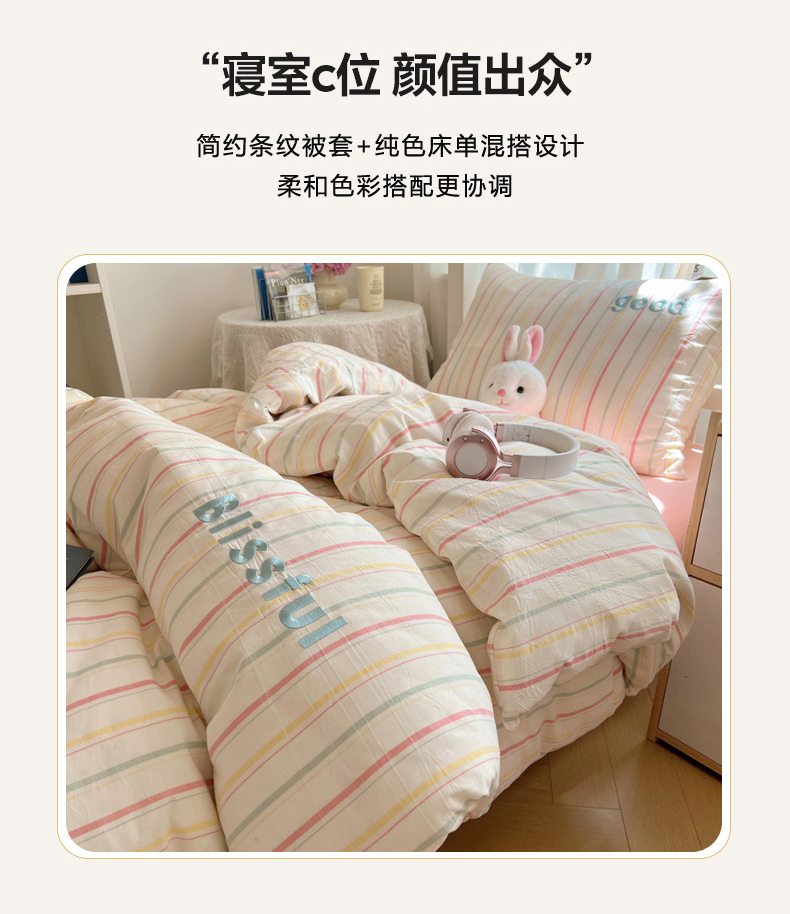 当前位置: 91家纺网 > 商品网购 > 床品套件 > 三件套 > 丽涵家纺 2025新款色织水洗棉刺绣学生三件套 韵律-粉