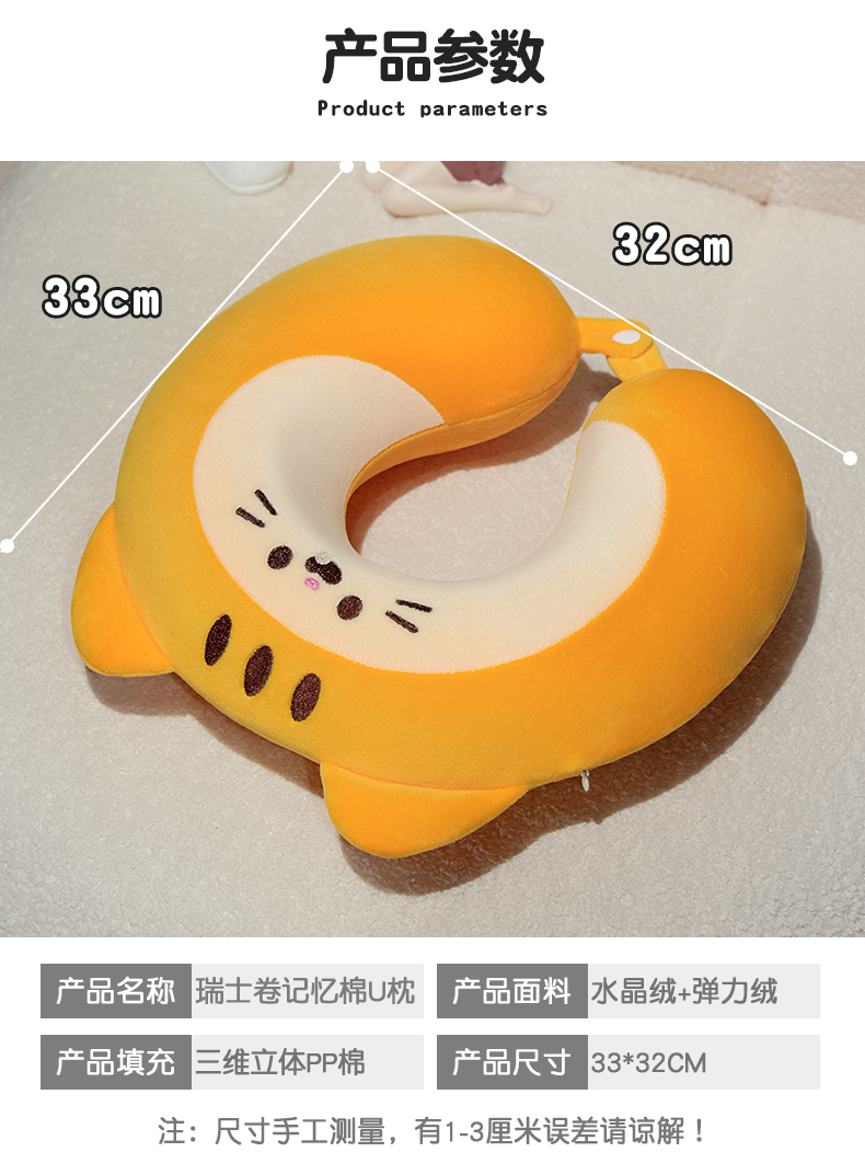 当前位置: 91家纺网 > 商品网购 > 枕头/枕芯/保健枕/颈椎枕 > U型枕 > 仟亿莱 2025新款瑞士卷动物系列记忆棉U枕 记忆三花猫 33*32cm/只