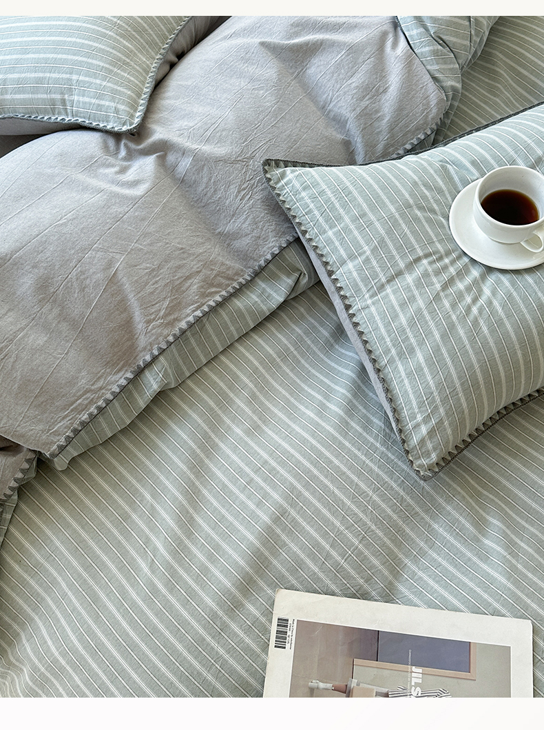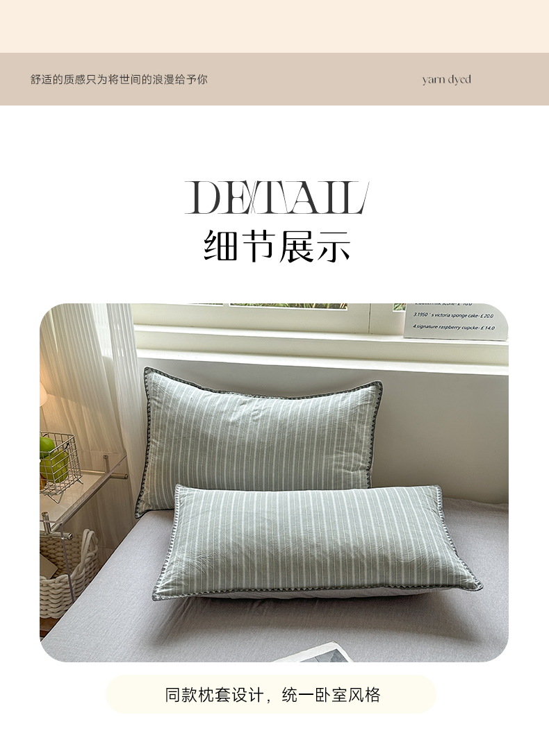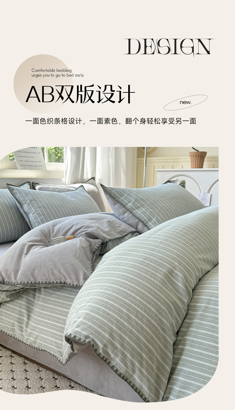 当前位置: 91家纺网 > 商品网购 > 床品套件 > 四件套 > 全棉普通四件套 > 晚依家纺 2025新款A类全棉色织水洗棉被套单件格子条纹四件套学生宿舍被罩三件套定制定做 乐事-绿灰