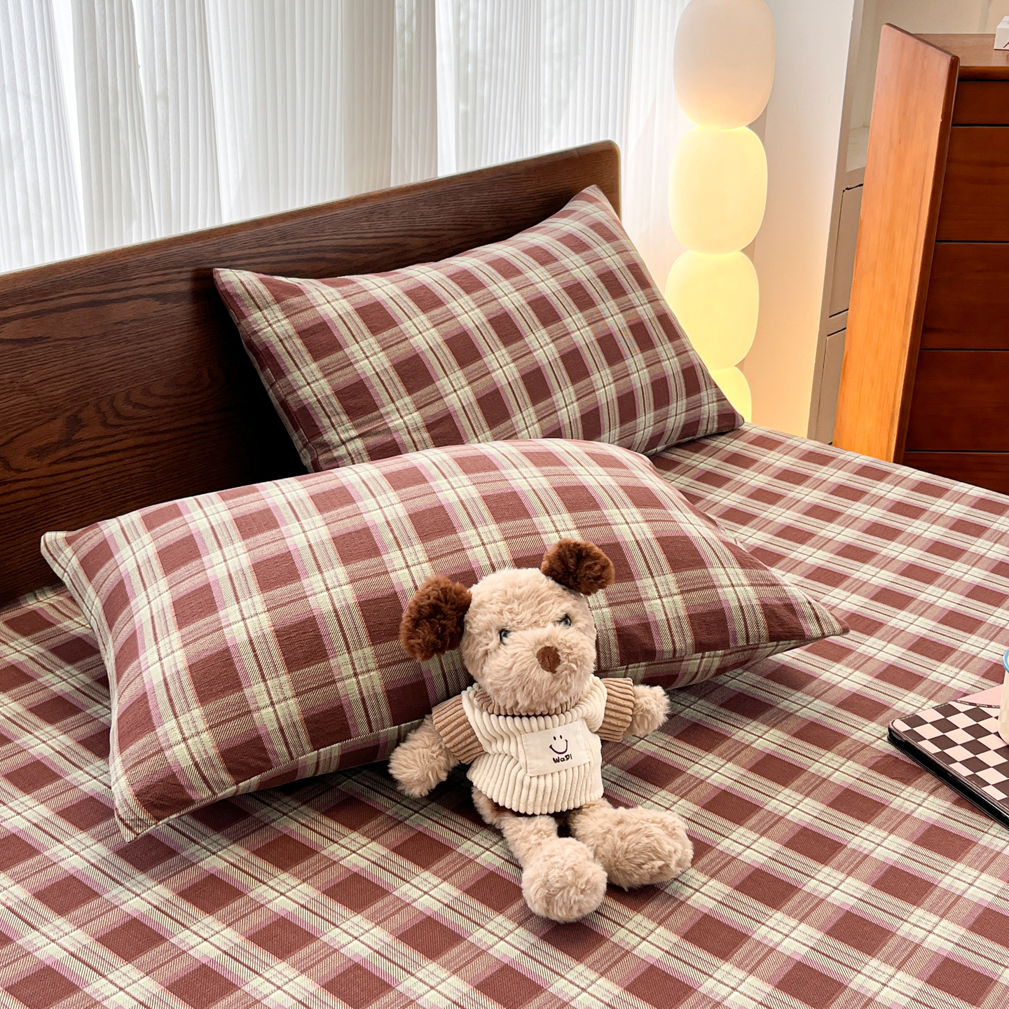 韩巢家纺 2025新款复古风格子双层纱单枕套 银河