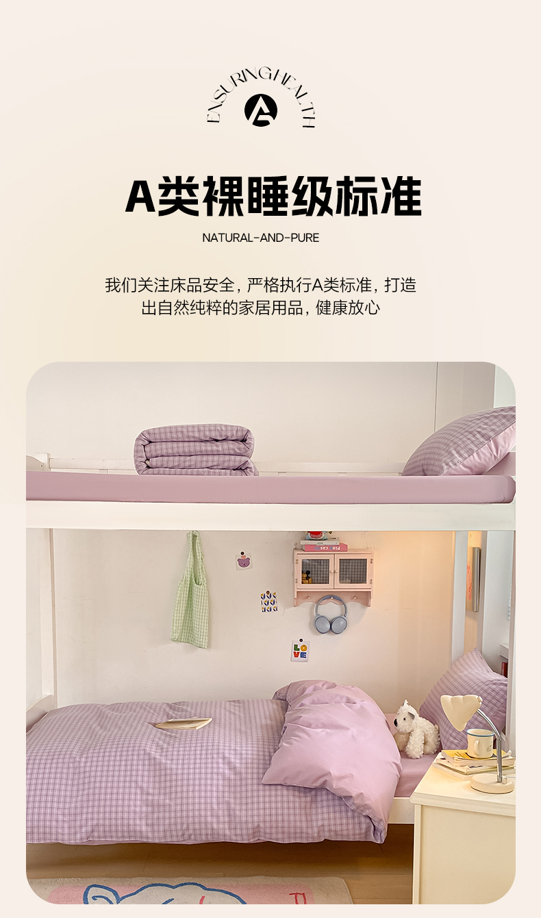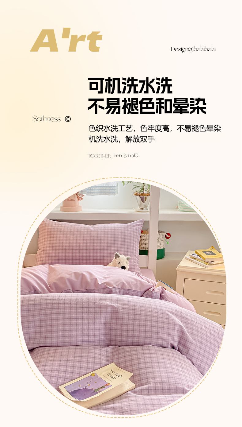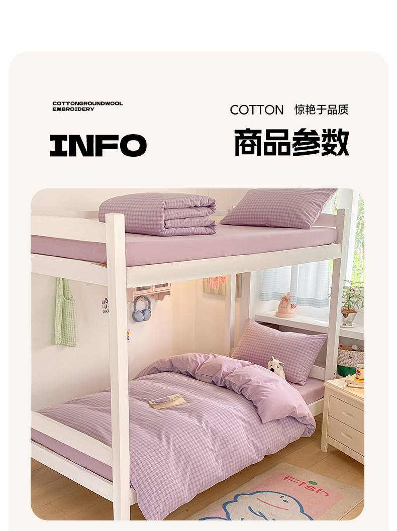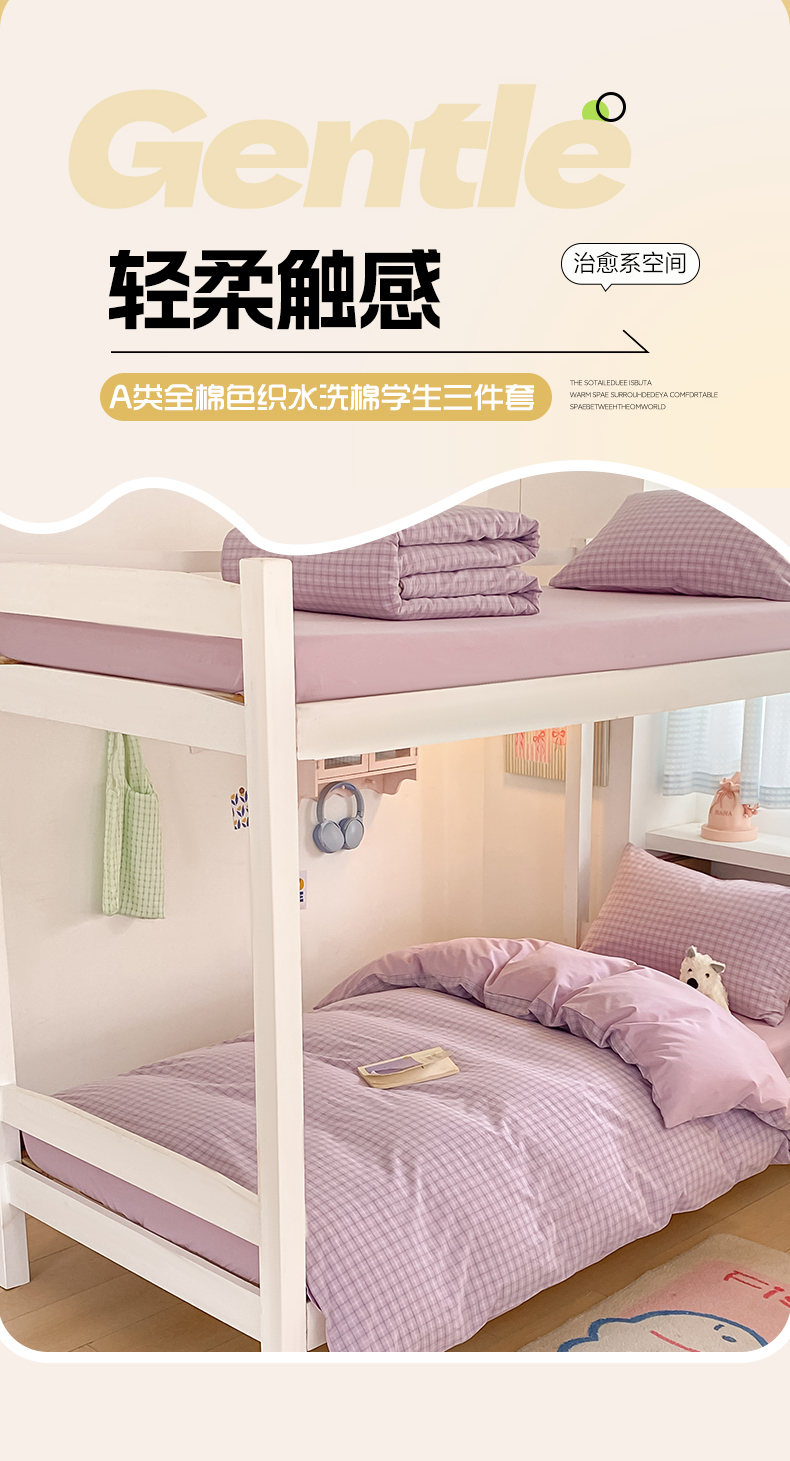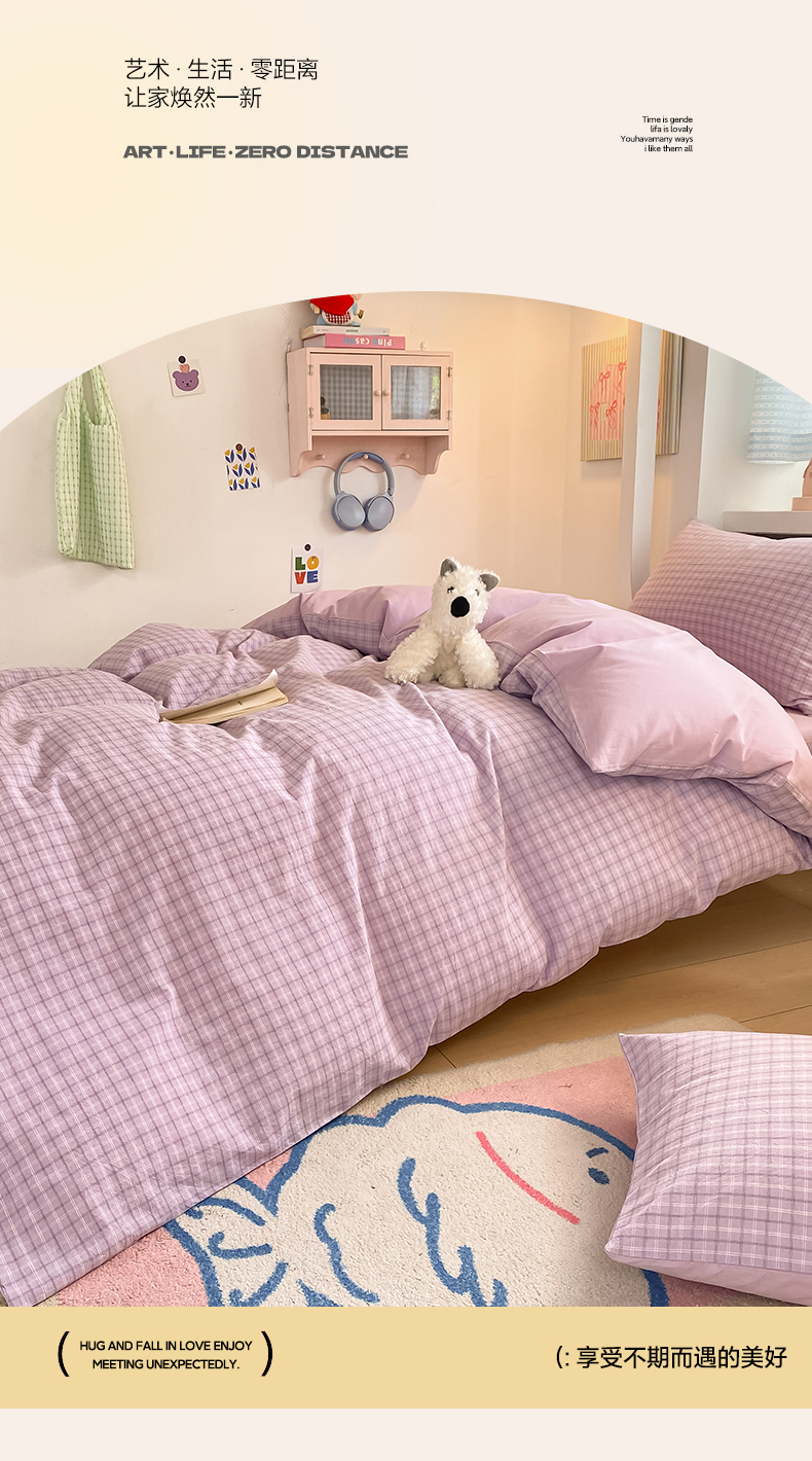 当前位置: 91家纺网 > 商品网购 > 床品套件 > 三件套 > 寐居家纺 2025新款亲肤舒适全棉纯棉色织水洗棉学生三件套 哈曼-紫
