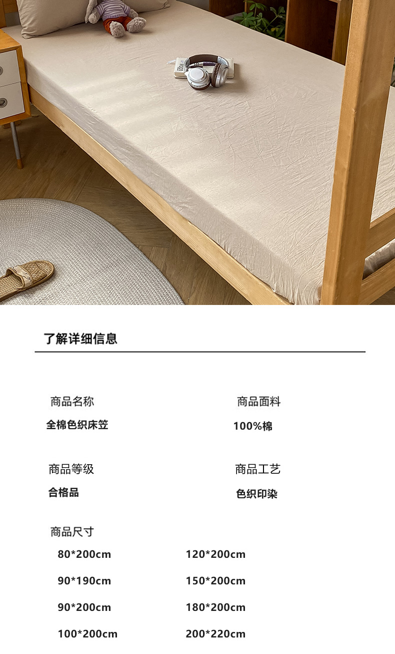 • 91家纺网 家纺一手货源 找家纺 恋人优选 2025新款儿童学生宿舍上下铺全棉纯棉色织床笠单品单床笠床笠单件-无标款系列二 米色