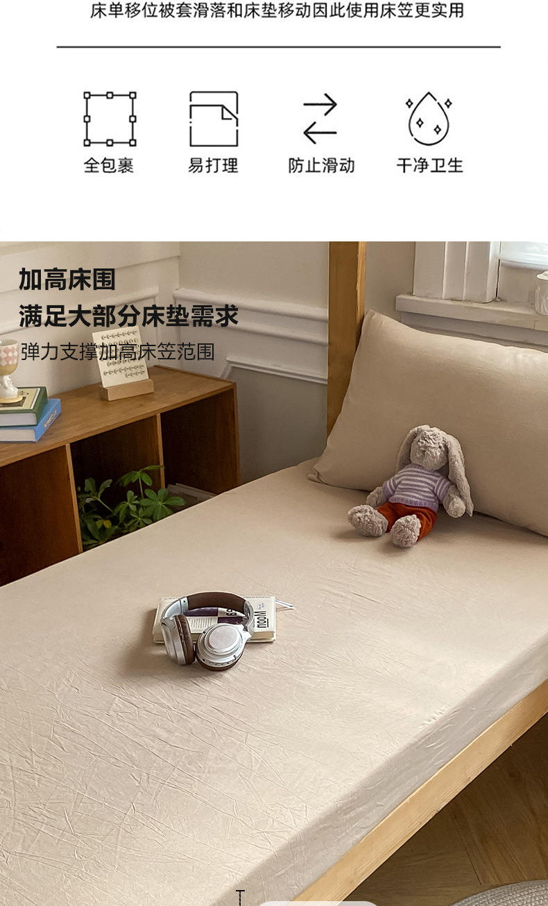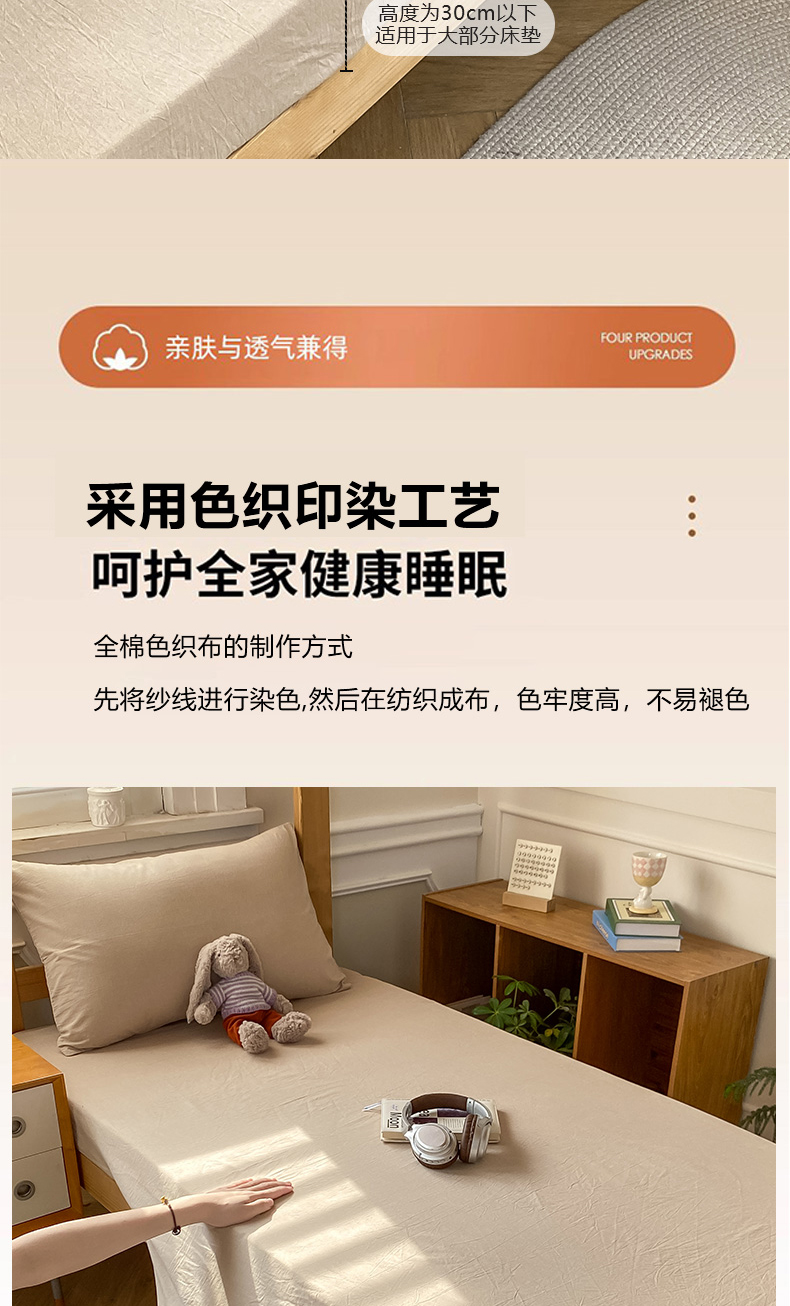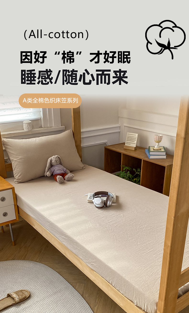 恋人优选 2025新款儿童学生宿舍上下铺全棉纯棉色织床笠单品单床笠床笠单件-无标款系列二 米色