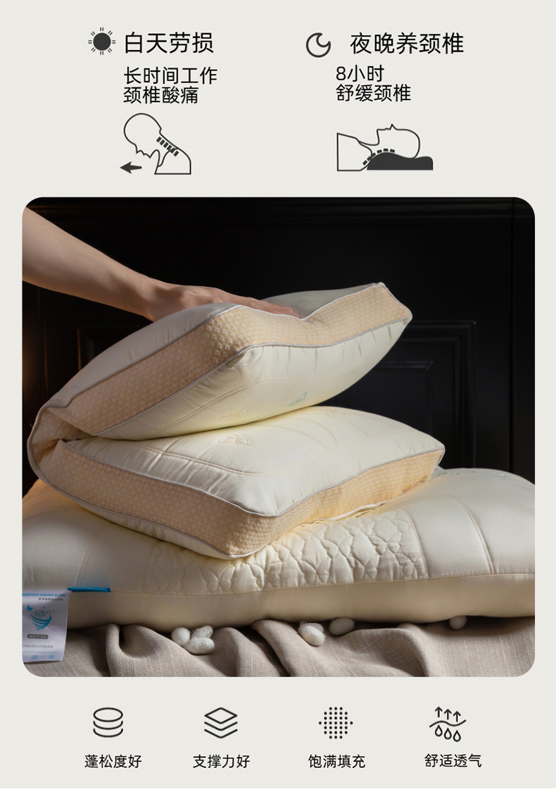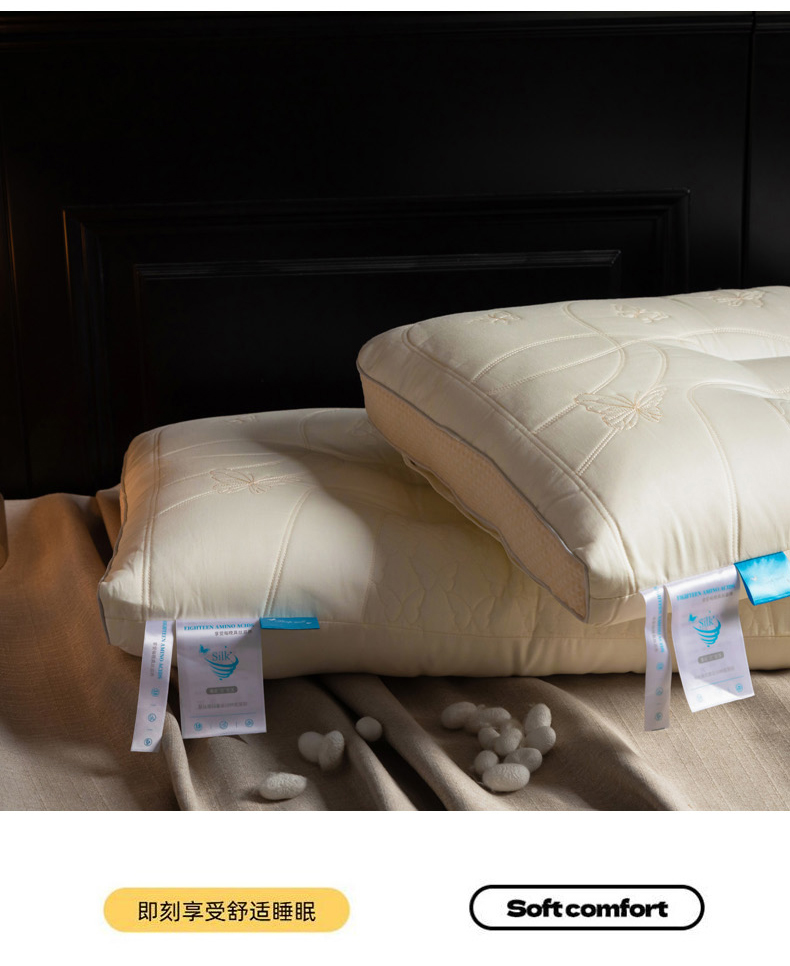当前位置: 91家纺网 > 商品网购 > 枕头/枕芯/保健枕/颈椎枕 > 普通枕芯 > 慕尚家纺 2025新款简约天丝棉绣花枕头枕芯 蝴蝶蚕丝枕 48x74cm/只