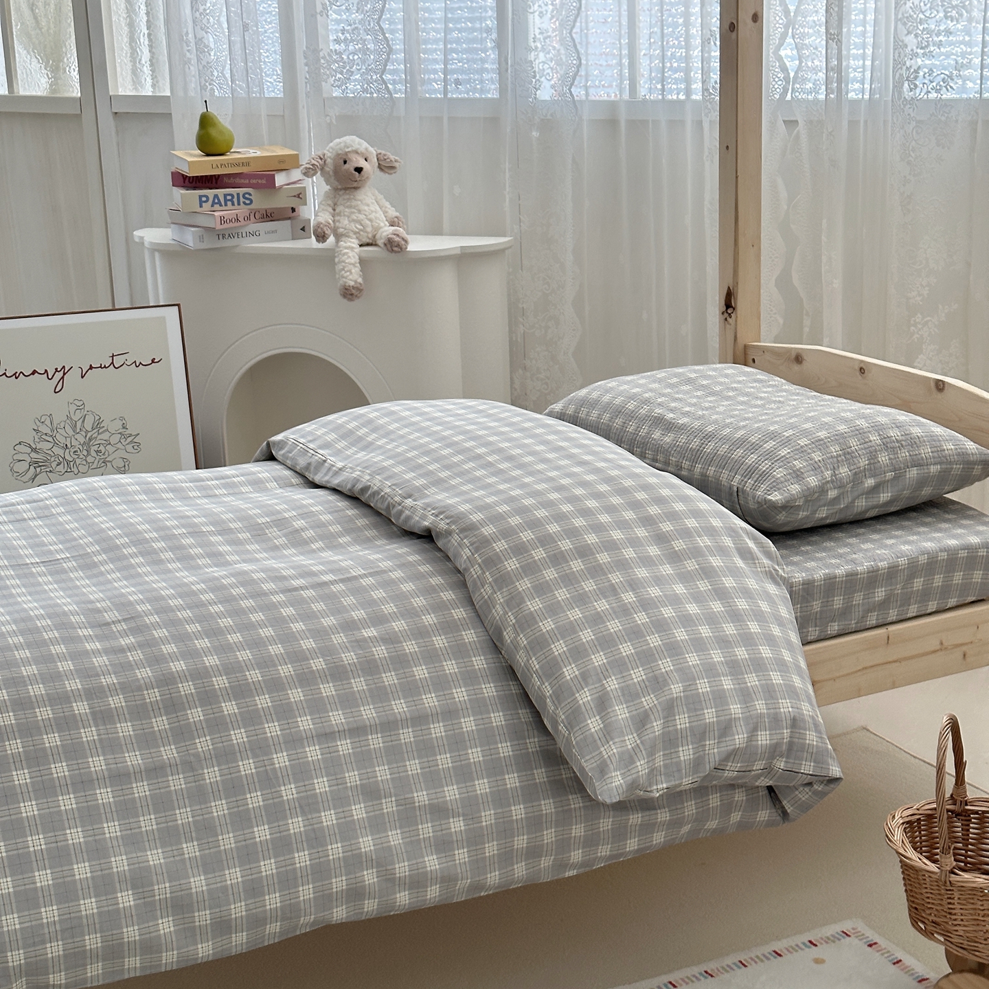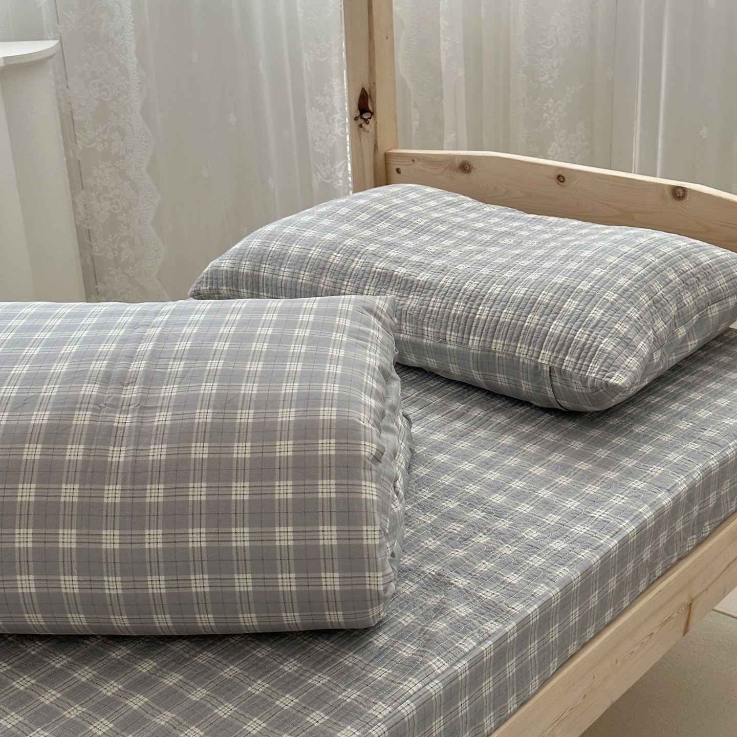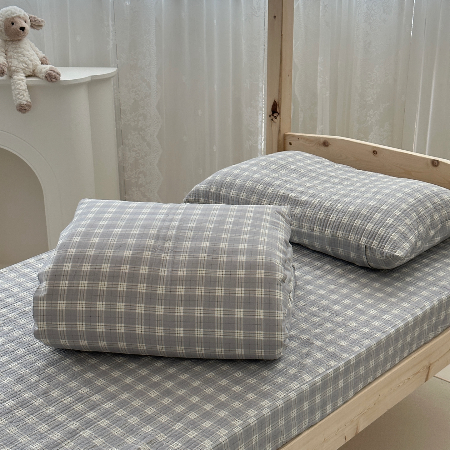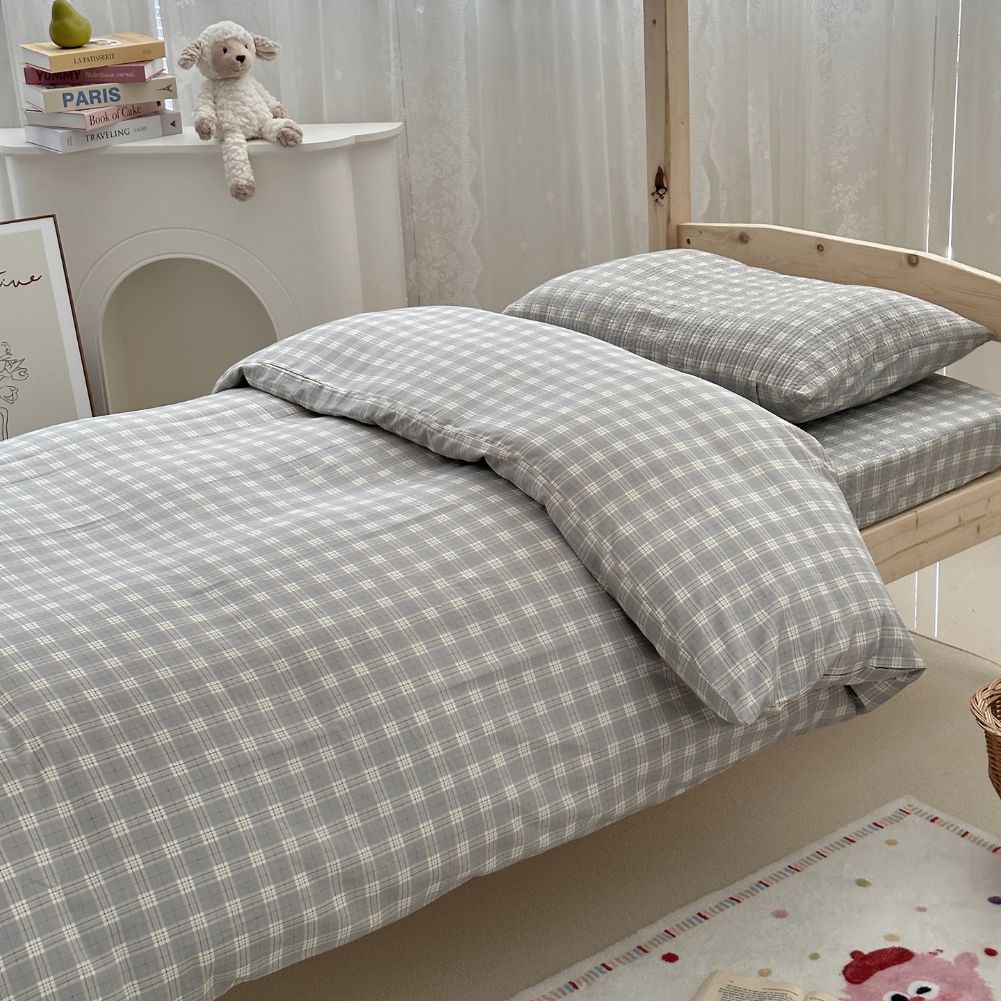 当前位置: 91家纺网 > 商品网购 > 床品套件 > 三件套 > 佰织鑫家居 2025新款独家原创-学生季纯棉夹棉床笠三件套 灰格