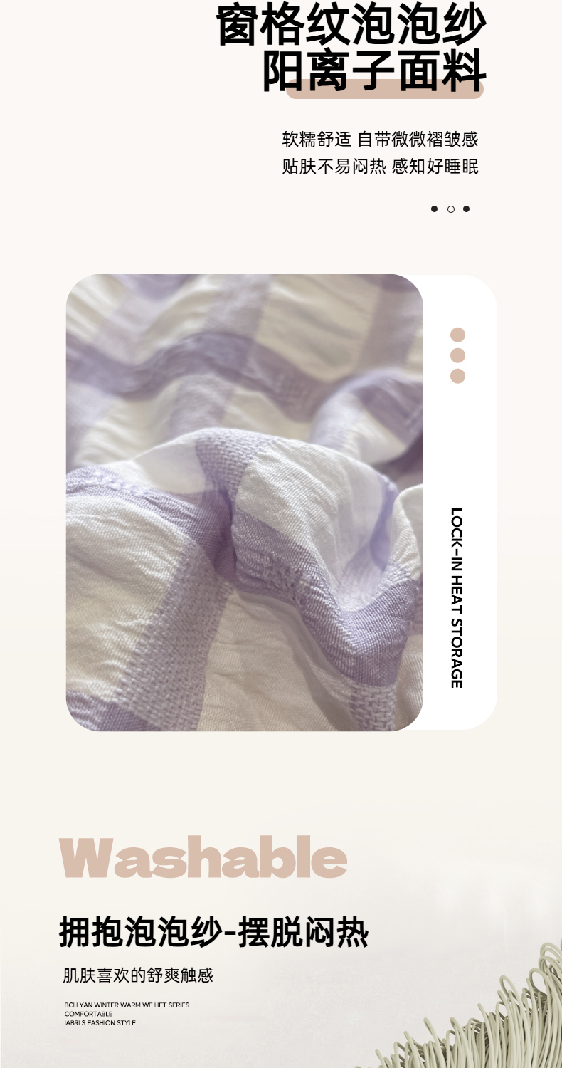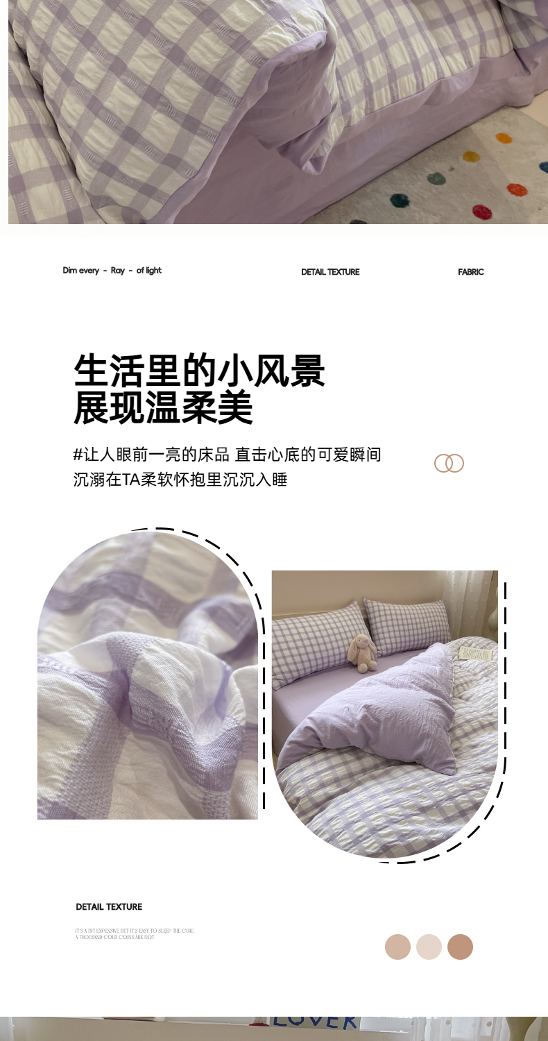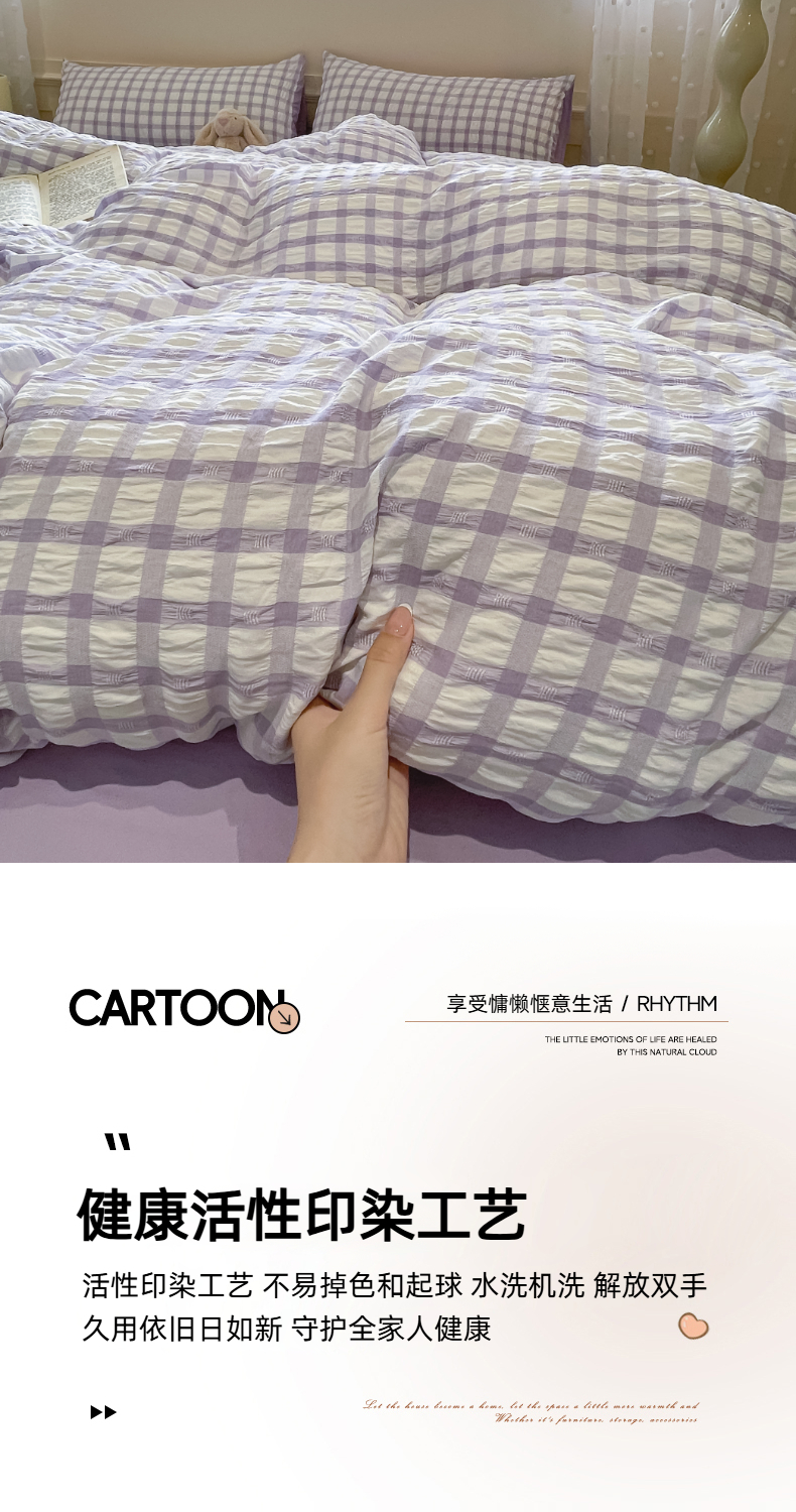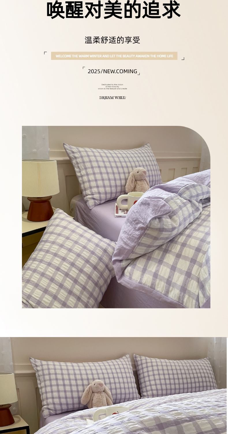 当前位置: 91家纺网 > 商品网购 > 床品套件 > 四件套 > 其它四件套 > 凯洛奇 2025新款窗格纹泡泡纱阳离子四件套 窗格纹泡泡纱-梦幻紫(提供买家秀)