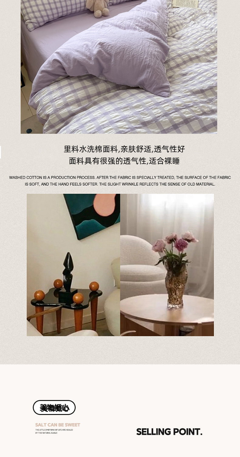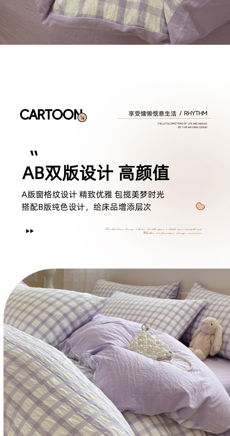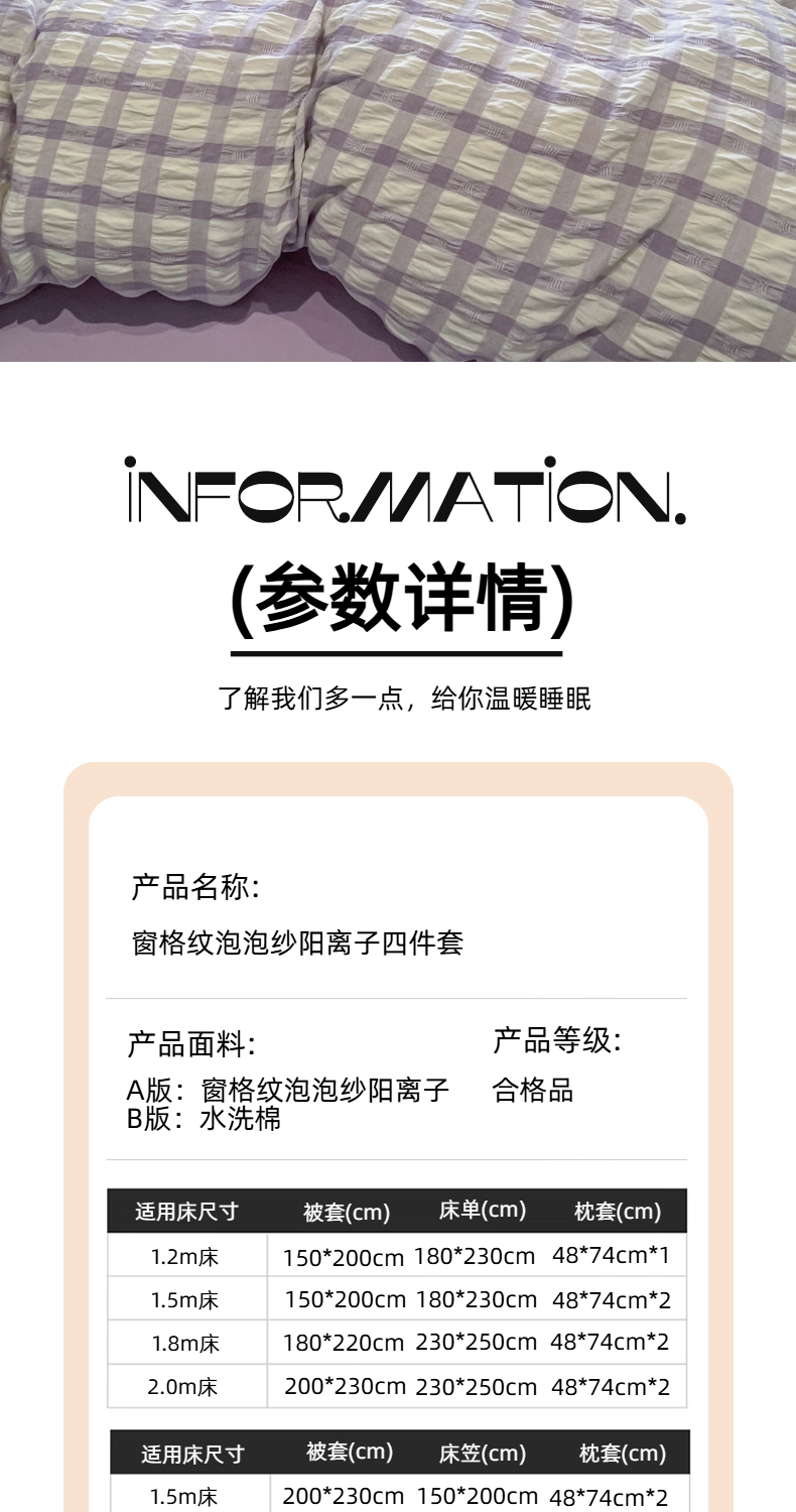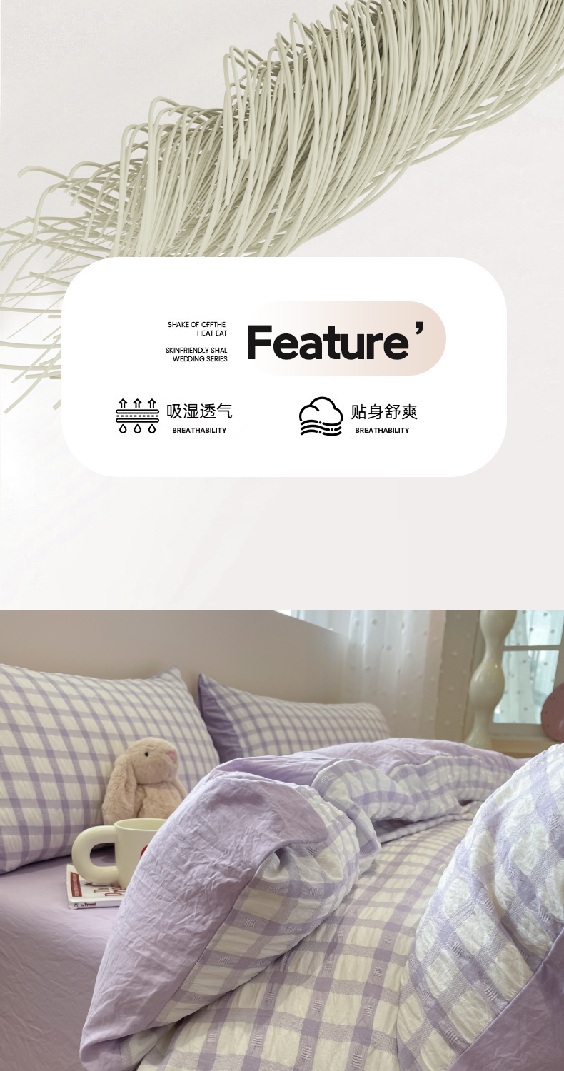 当前位置: 91家纺网 > 商品网购 > 床品套件 > 四件套 > 其它四件套 > 凯洛奇 2025新款窗格纹泡泡纱阳离子四件套 窗格纹泡泡纱-梦幻紫(提供买家秀)