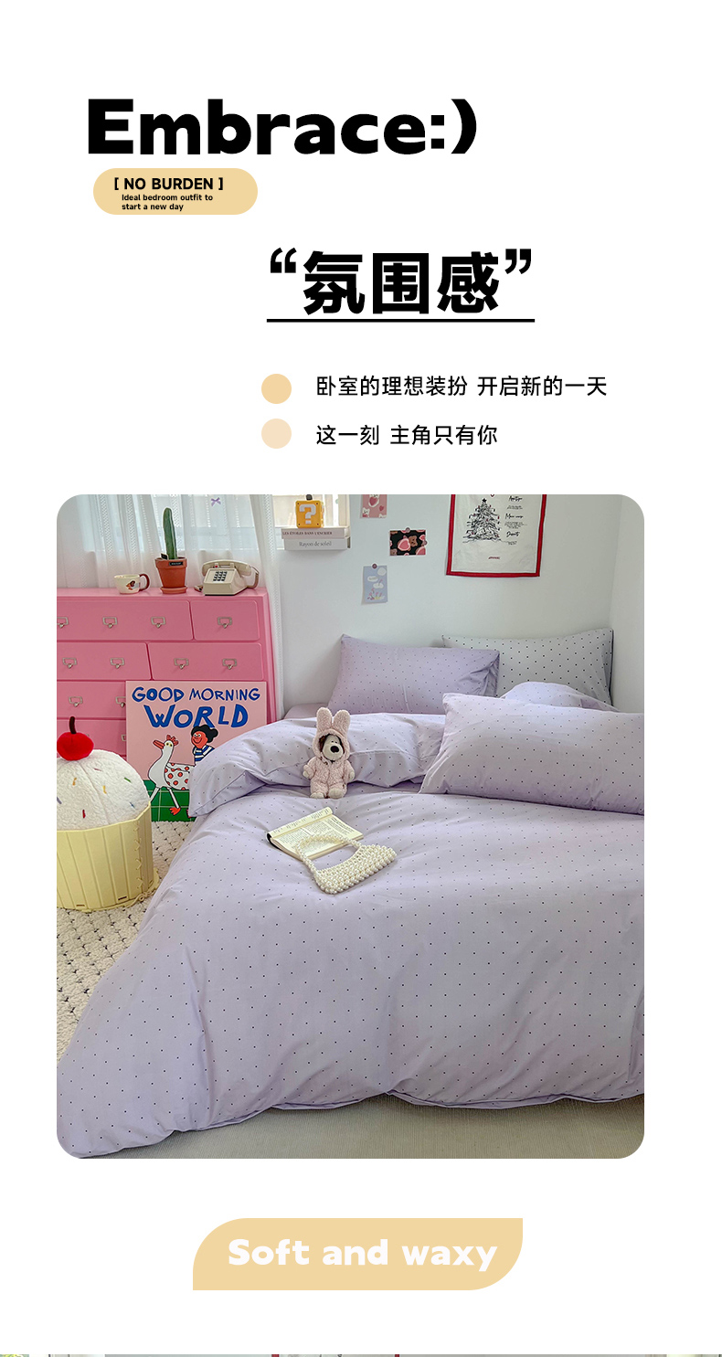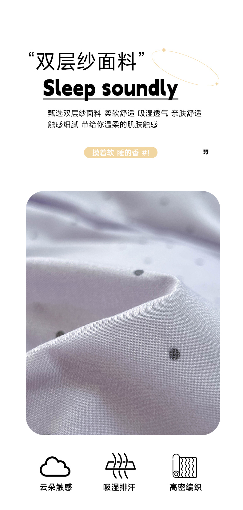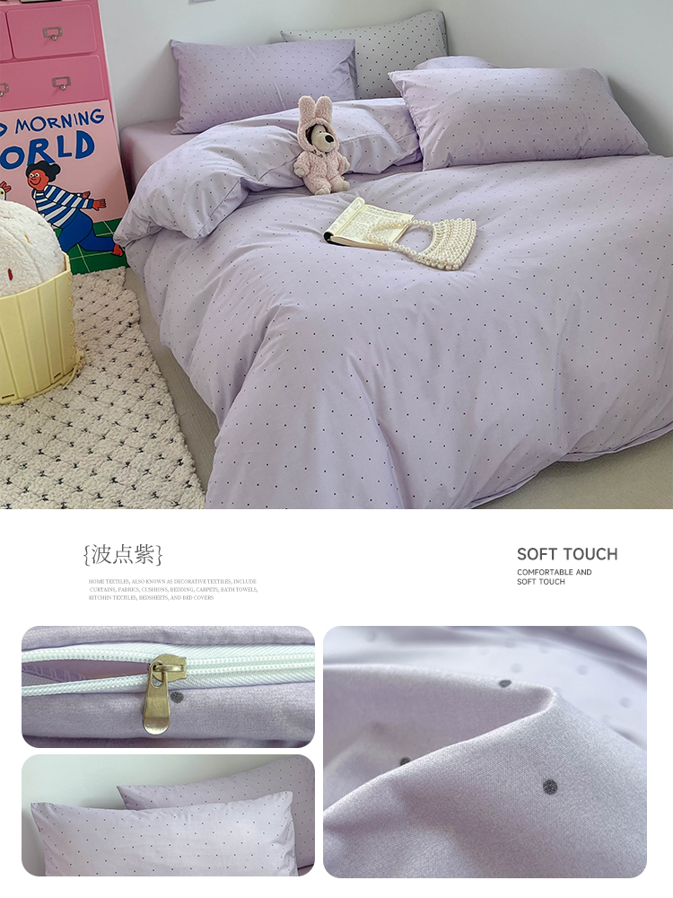 当前位置: 91家纺网 > 商品网购 > 床品套件 > 四件套 > 双层纱四件套 > 红嘴企鹅 2025新款云感提花双层纱印花系列四件套 波点紫