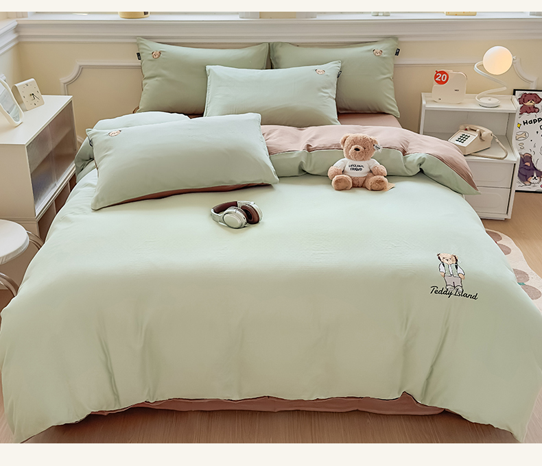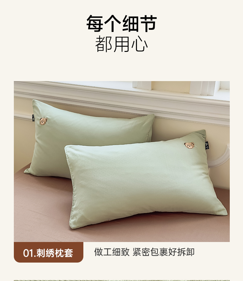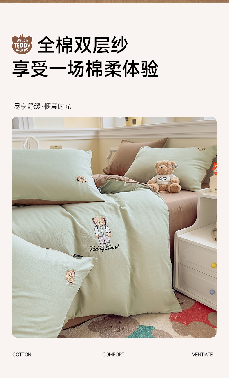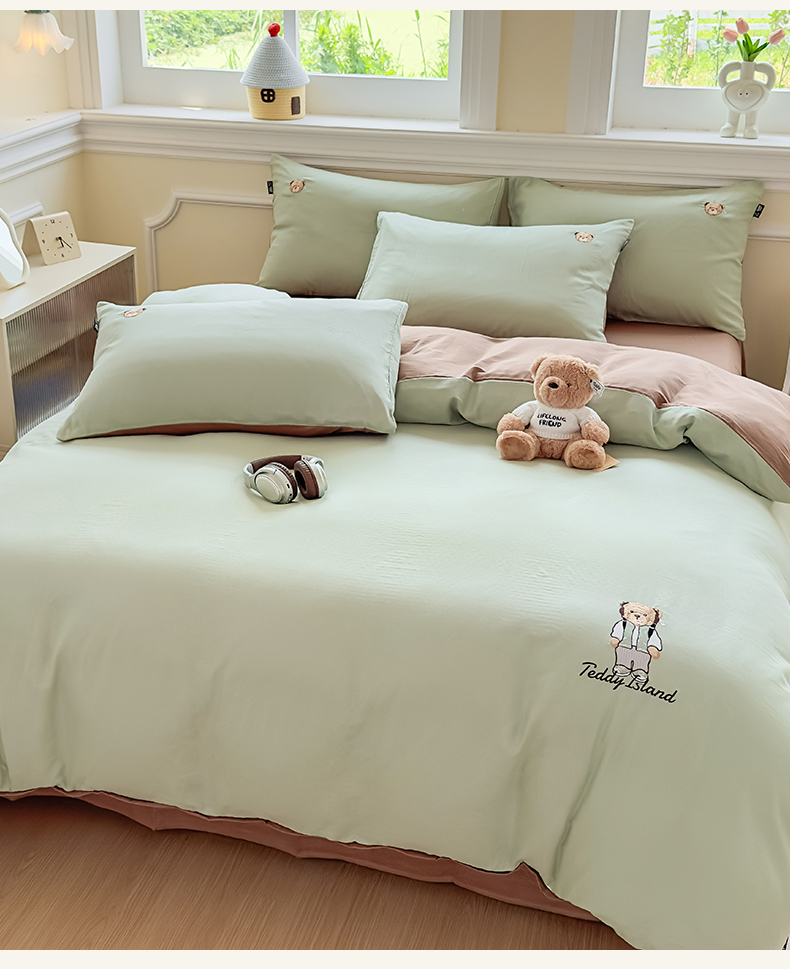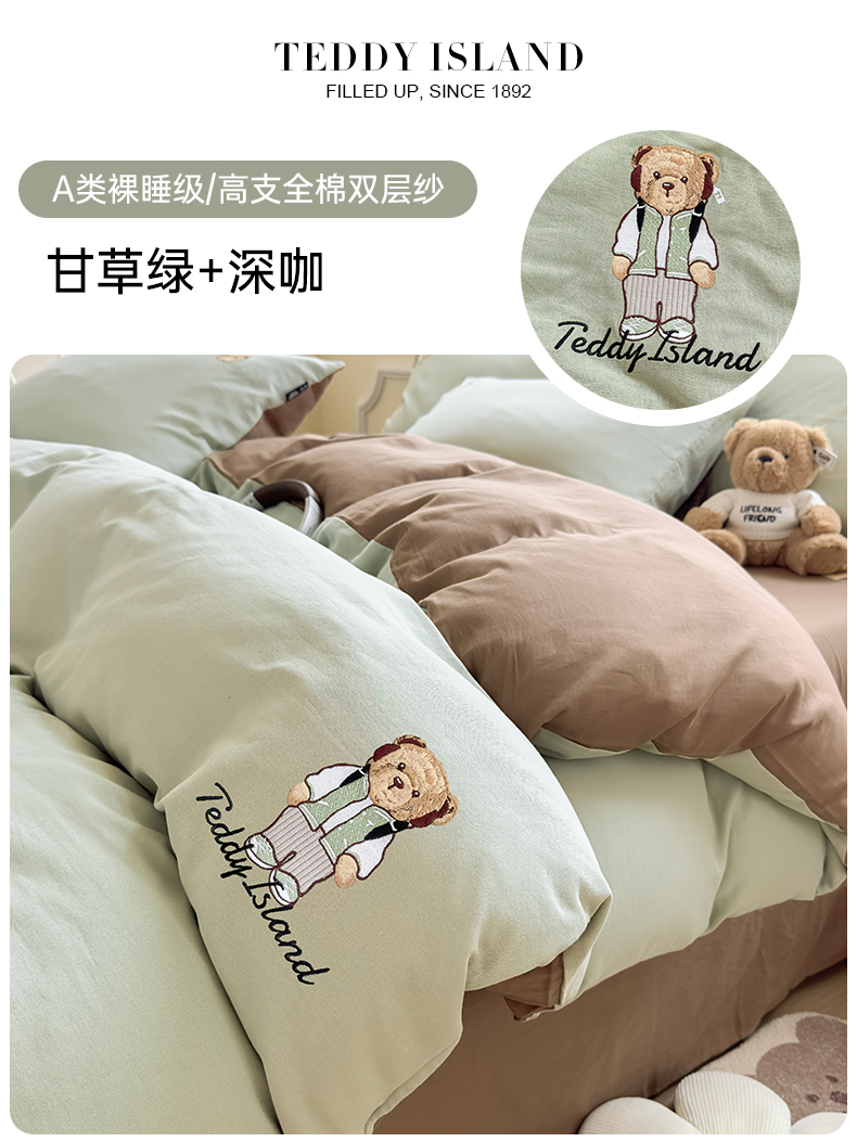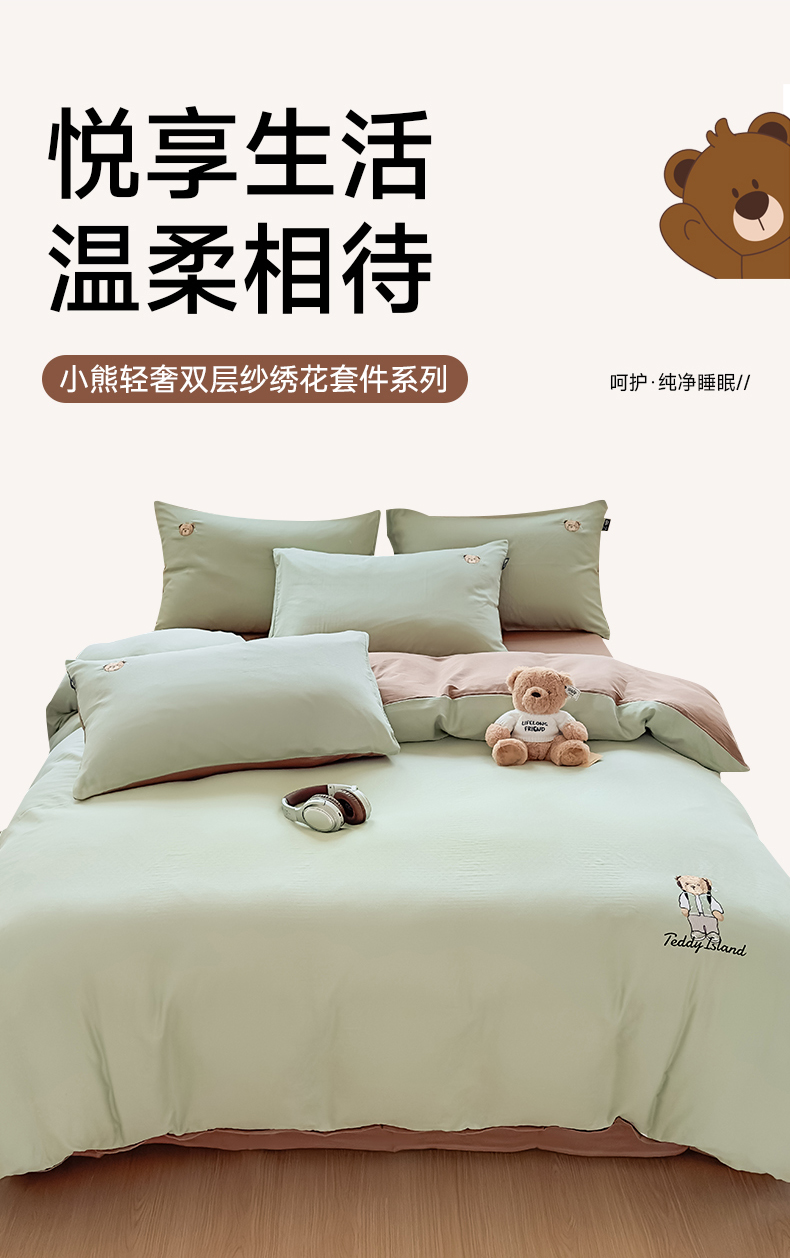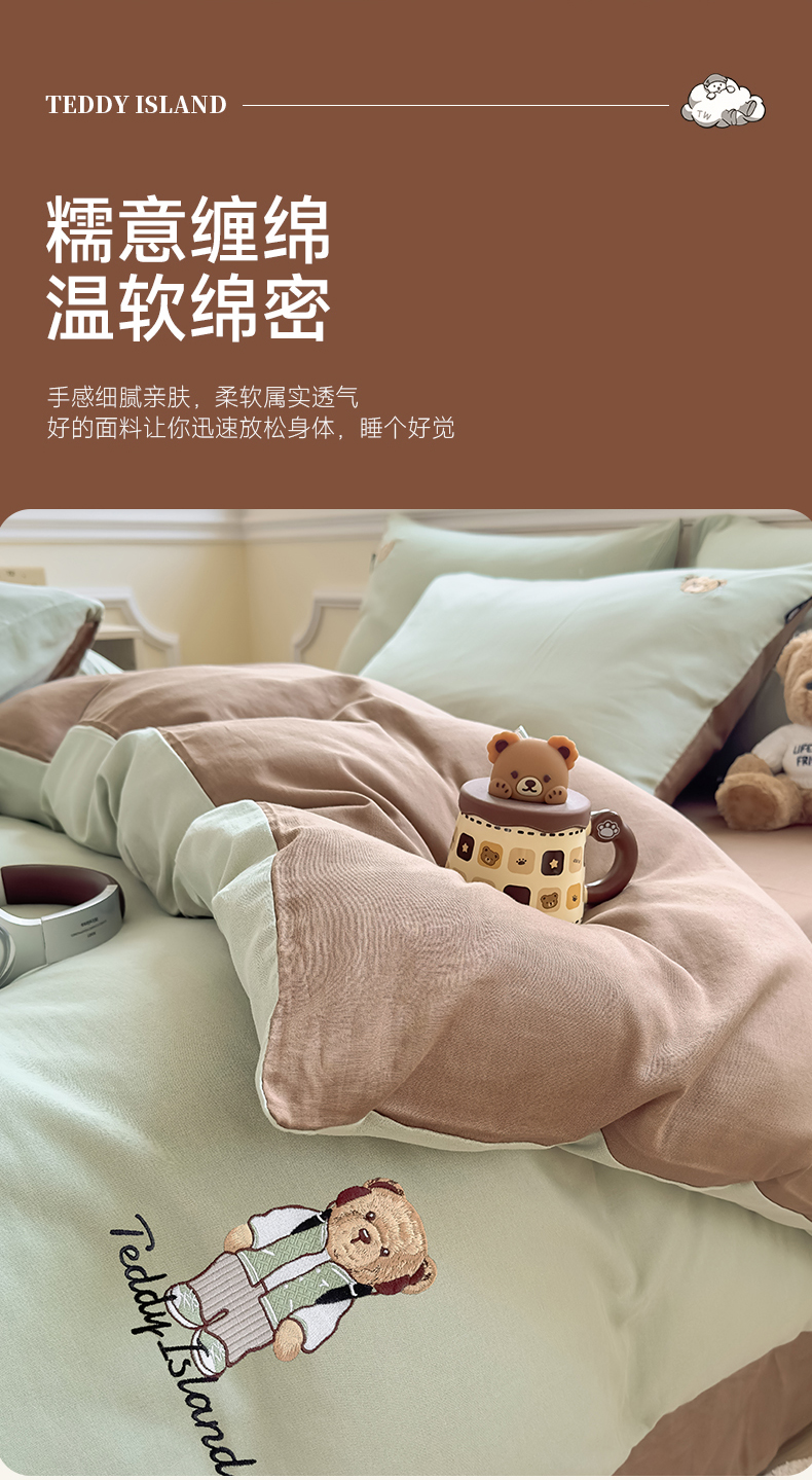 当前位置: 91家纺网 > 商品网购 > 床品套件 > 四件套 > 全棉普通四件套 > 尚品本色 2025新款轻奢全棉双层纱绣花四件套 甘草绿+深咖
