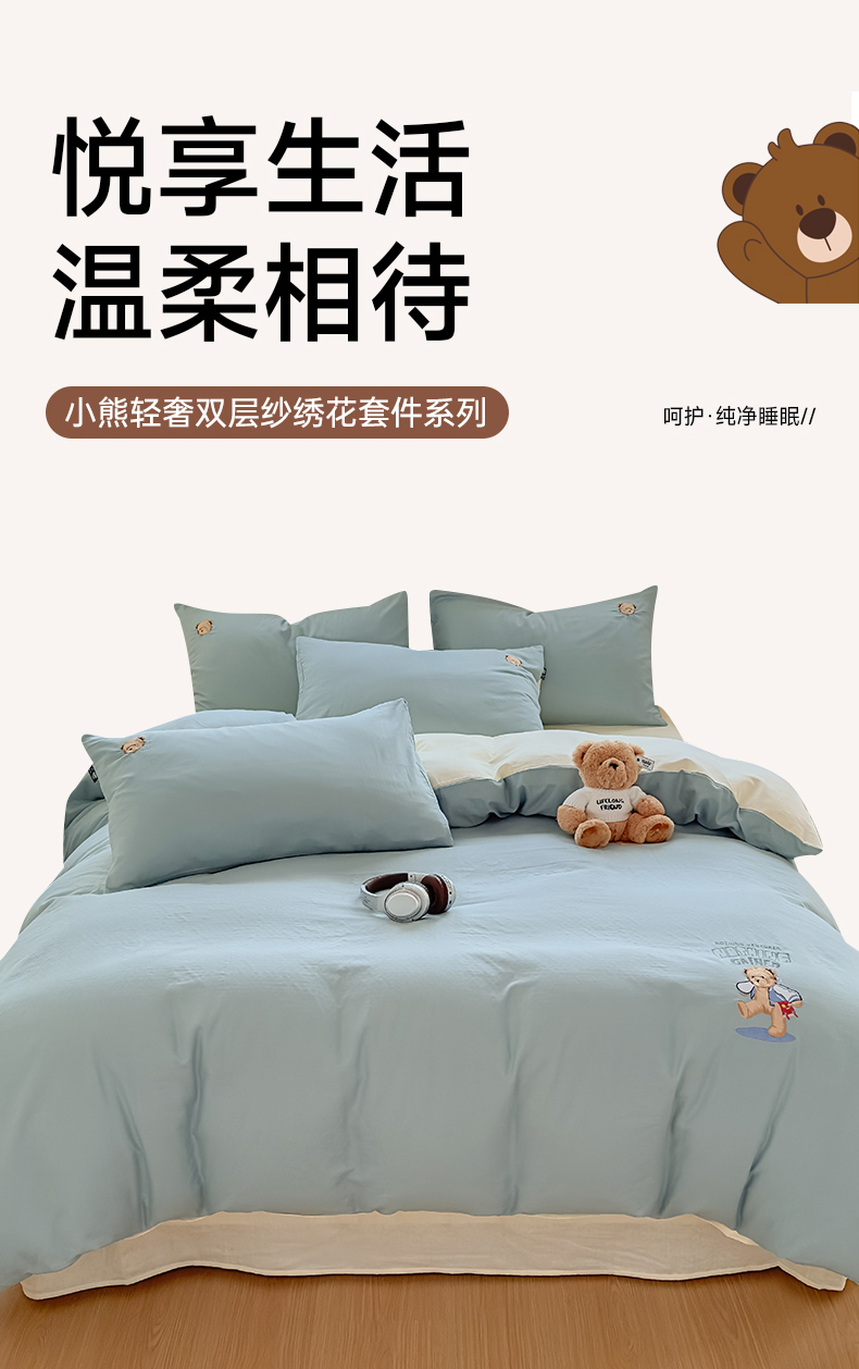 当前位置: 91家纺网 > 商品网购 > 床品套件 > 四件套 > 全棉普通四件套 > 泰迪爱兰Teddy ISLAND 2025新款轻奢全棉双层纱绣花四件套 孔雀蓝+米黄