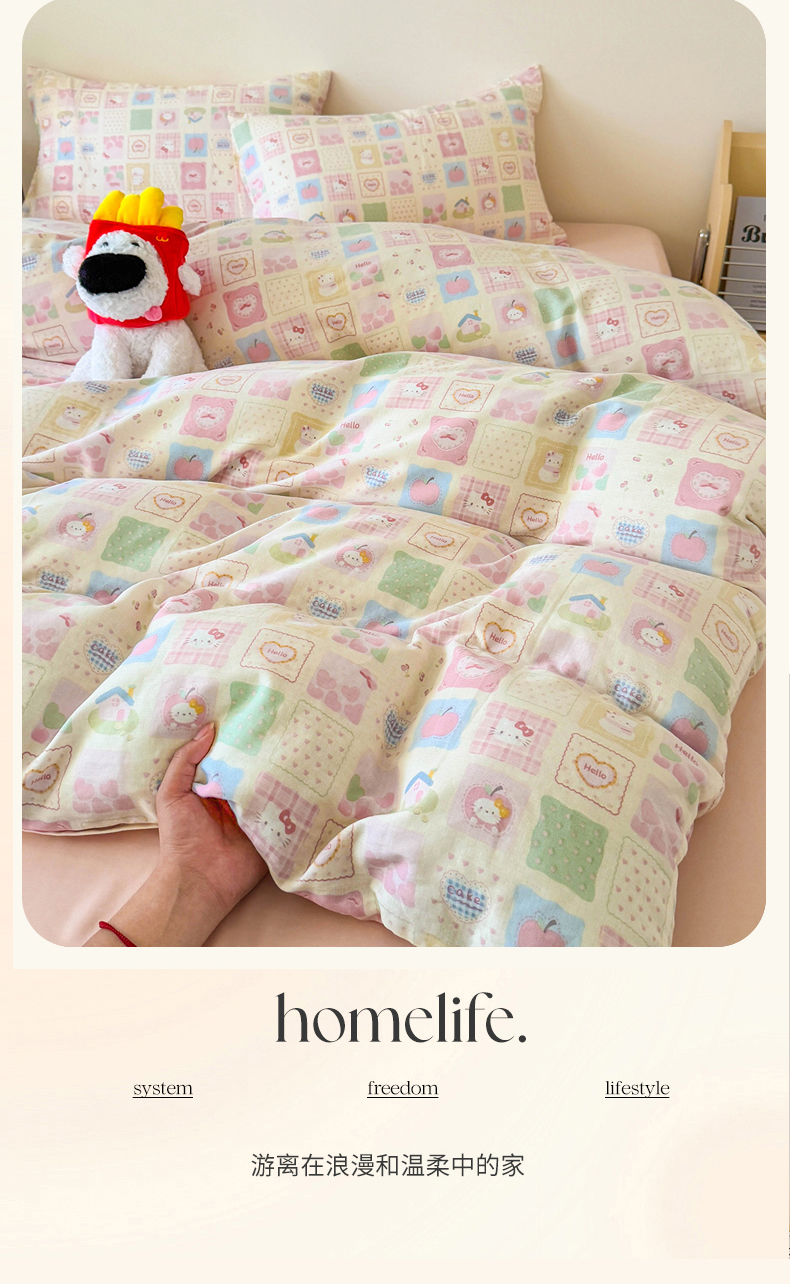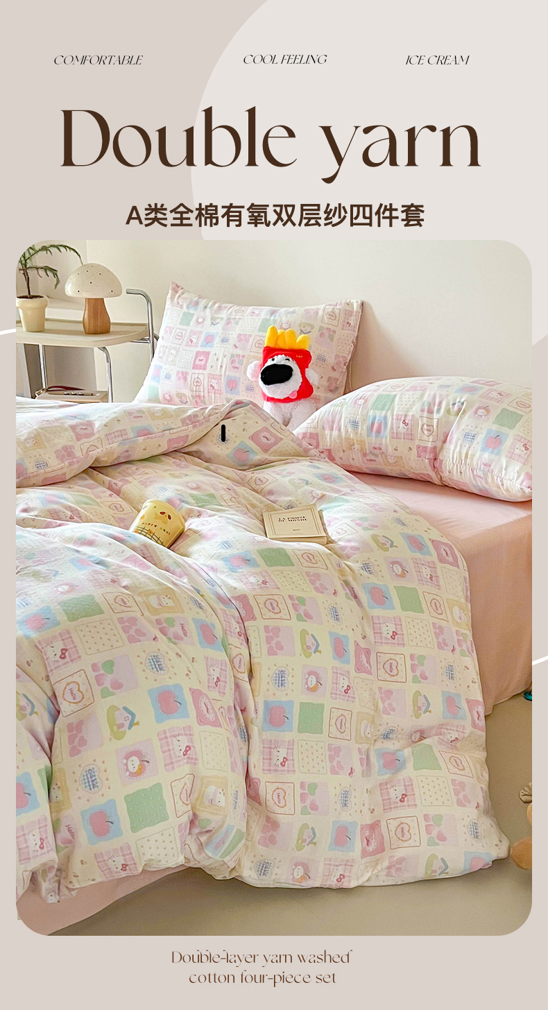 当前位置: 91家纺网 > 商品网购 > 床品套件 > 四件套 > 全棉普通四件套 > 麦伦家居 2025新款A类全棉纯棉有氧双层纱人字纹提花四件套 水果派