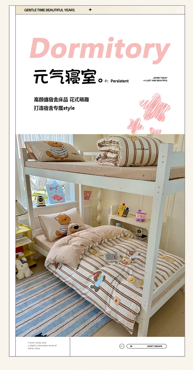 商品名称:港岛妹妹 2025新款软柔棉105g大版双面印花宿舍学生三件套上下铺三件套 复古绿格狗