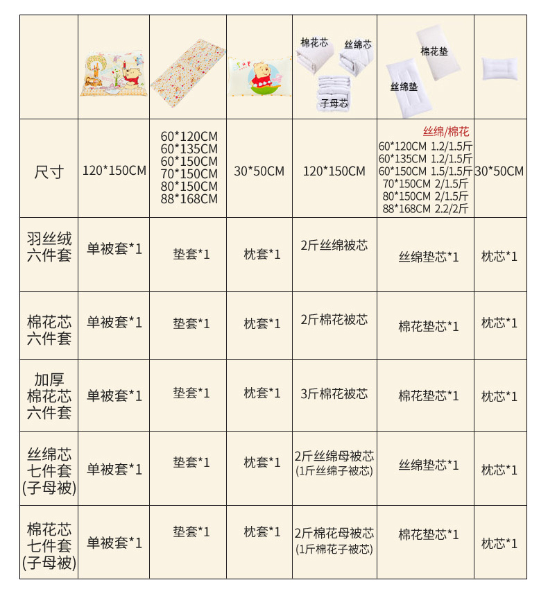 2斤棉花芯六件套 | ¥118.00 |
