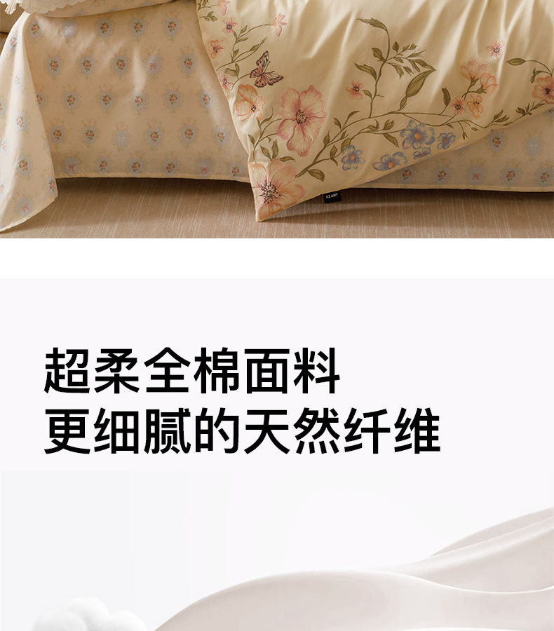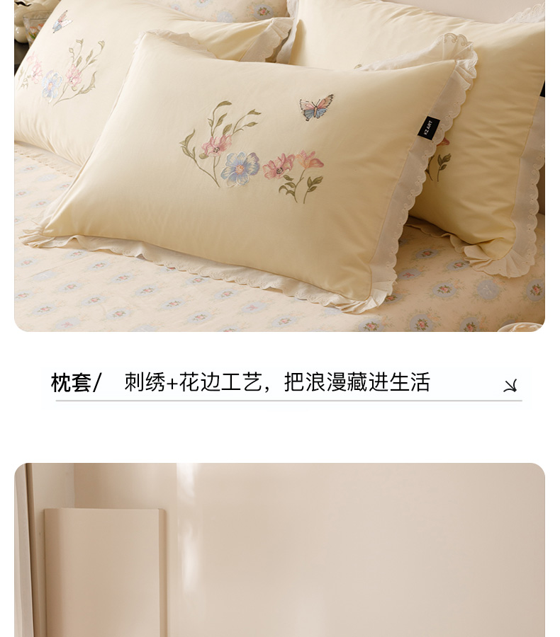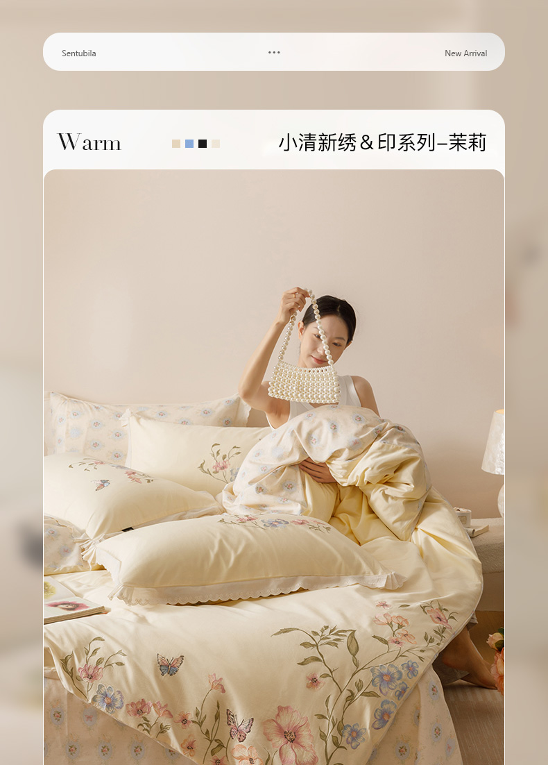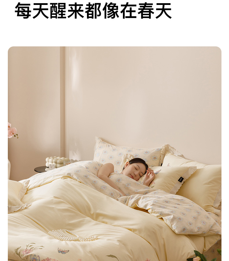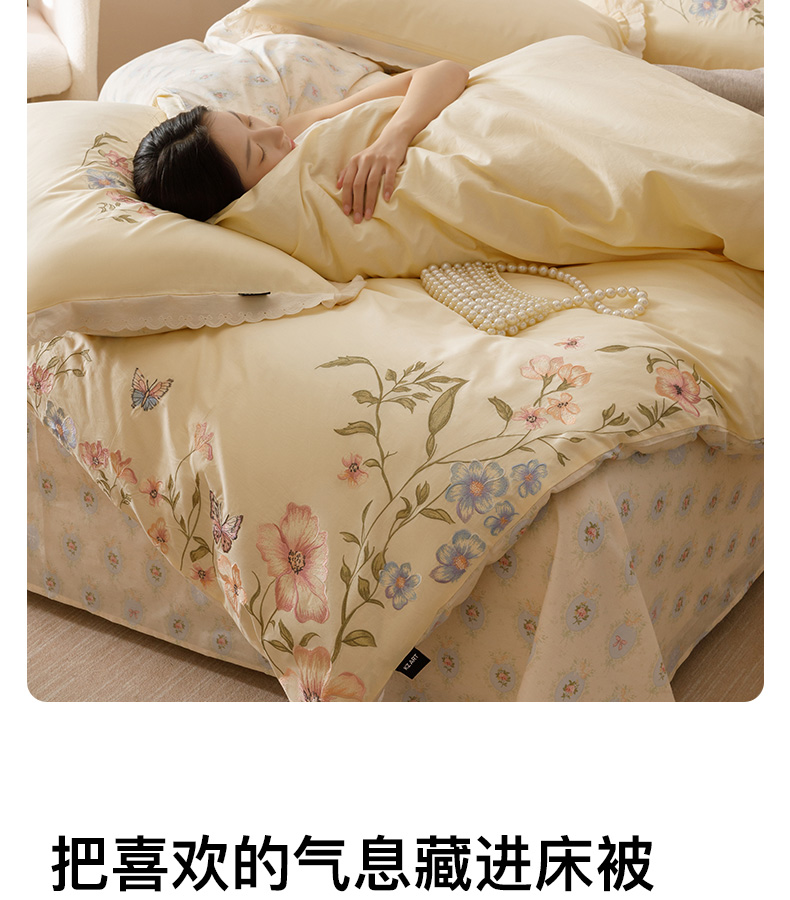 商品名称:卡姿家纺 2025秋冬小清新绣花+印花四件套-茉莉 茉莉-芝士黄