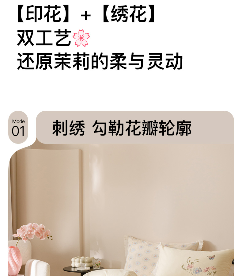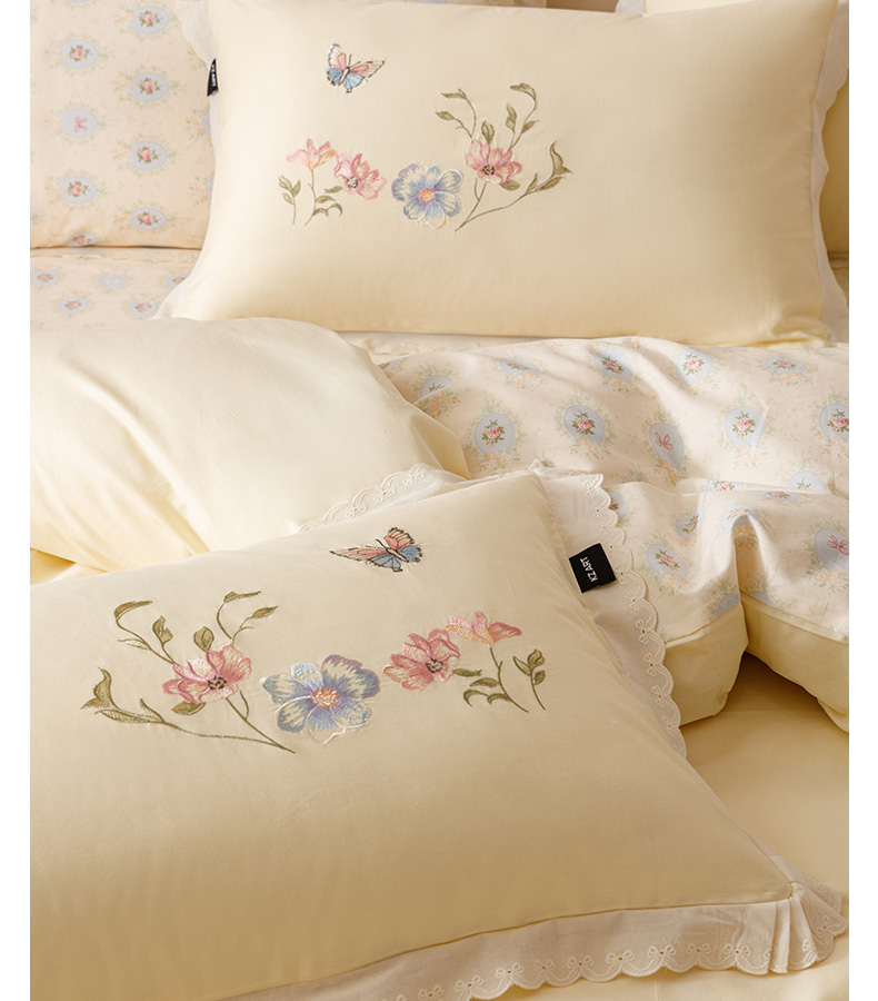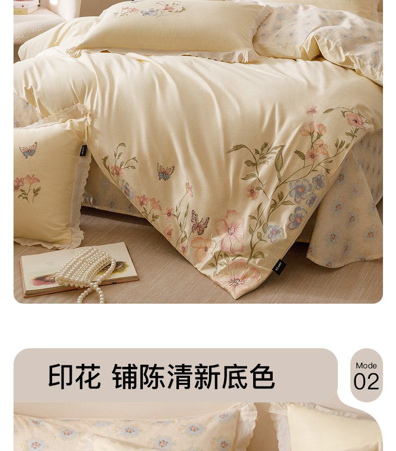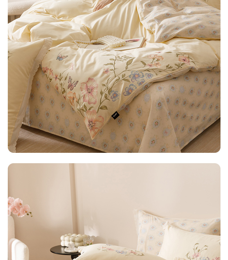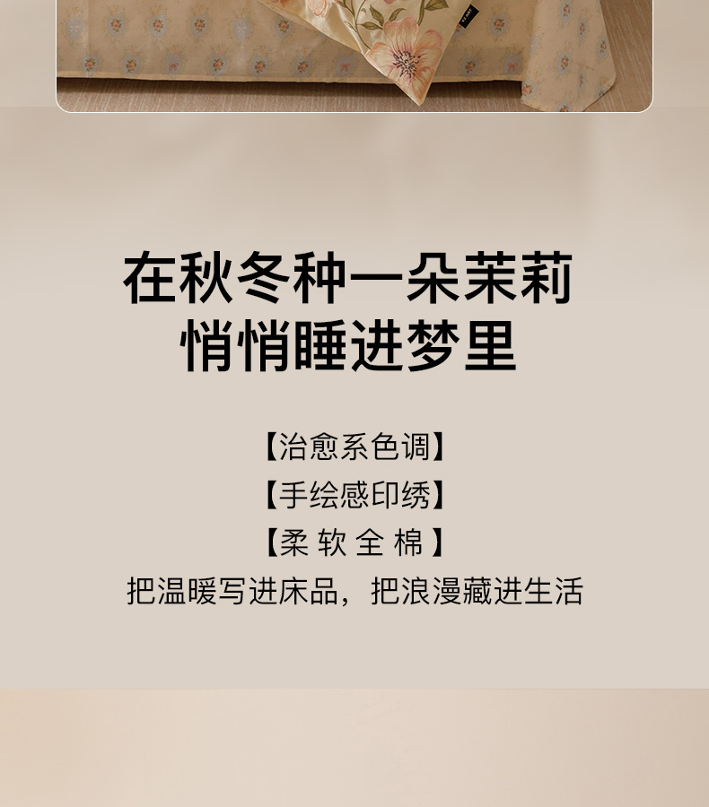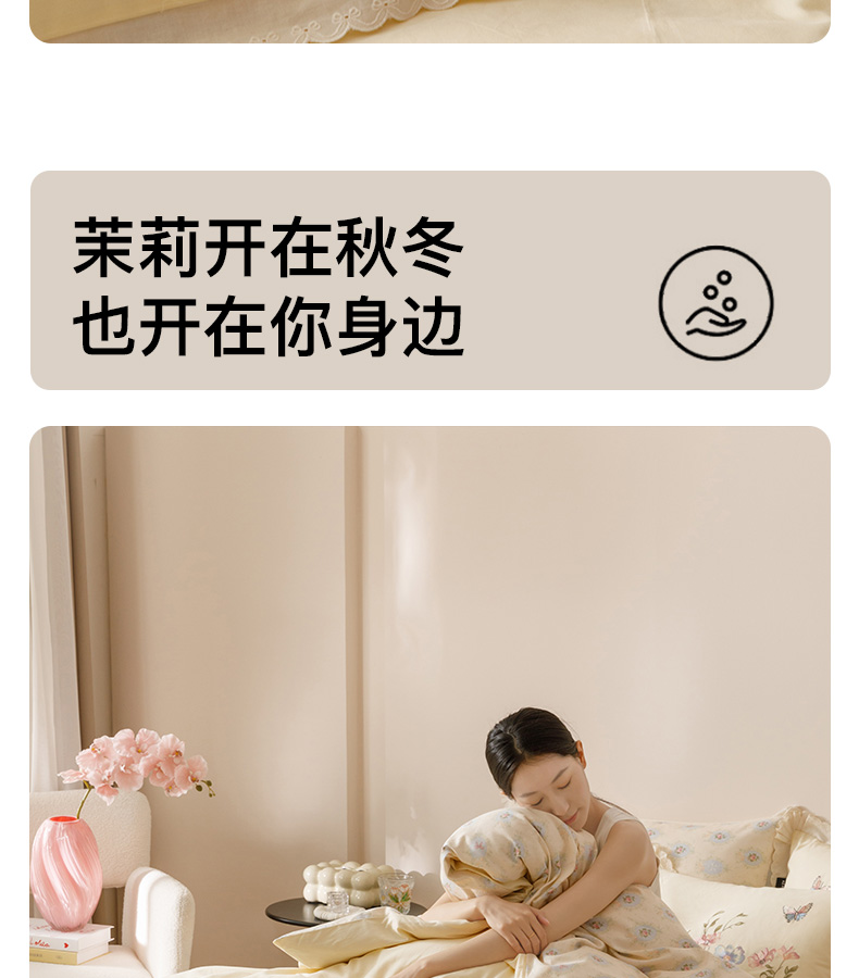 商品名称:卡姿家纺 2025秋冬小清新绣花+印花四件套-茉莉 茉莉-芝士黄