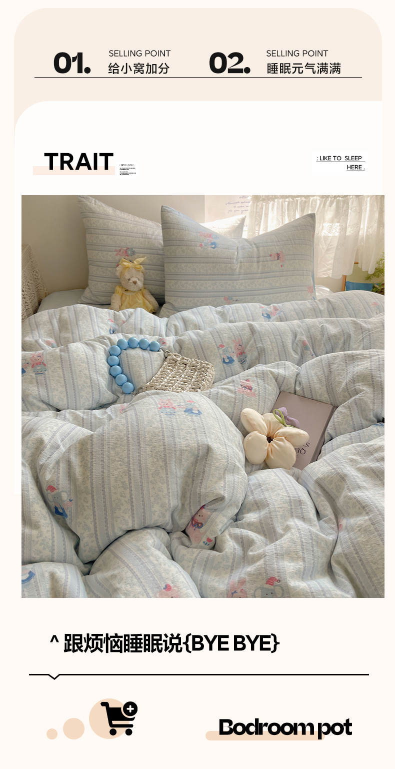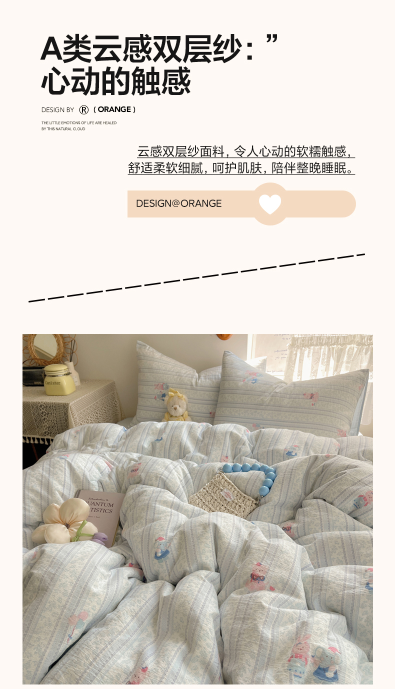 当前位置: 91家纺网 > 商品网购 > 床品套件 > 四件套 > 其它四件套 > 沐芷 2025 木棉双层纱A类四件套直播 开学季宿舍三件套 单被套/四件套--提供买家秀 彼岸-小象宝宝