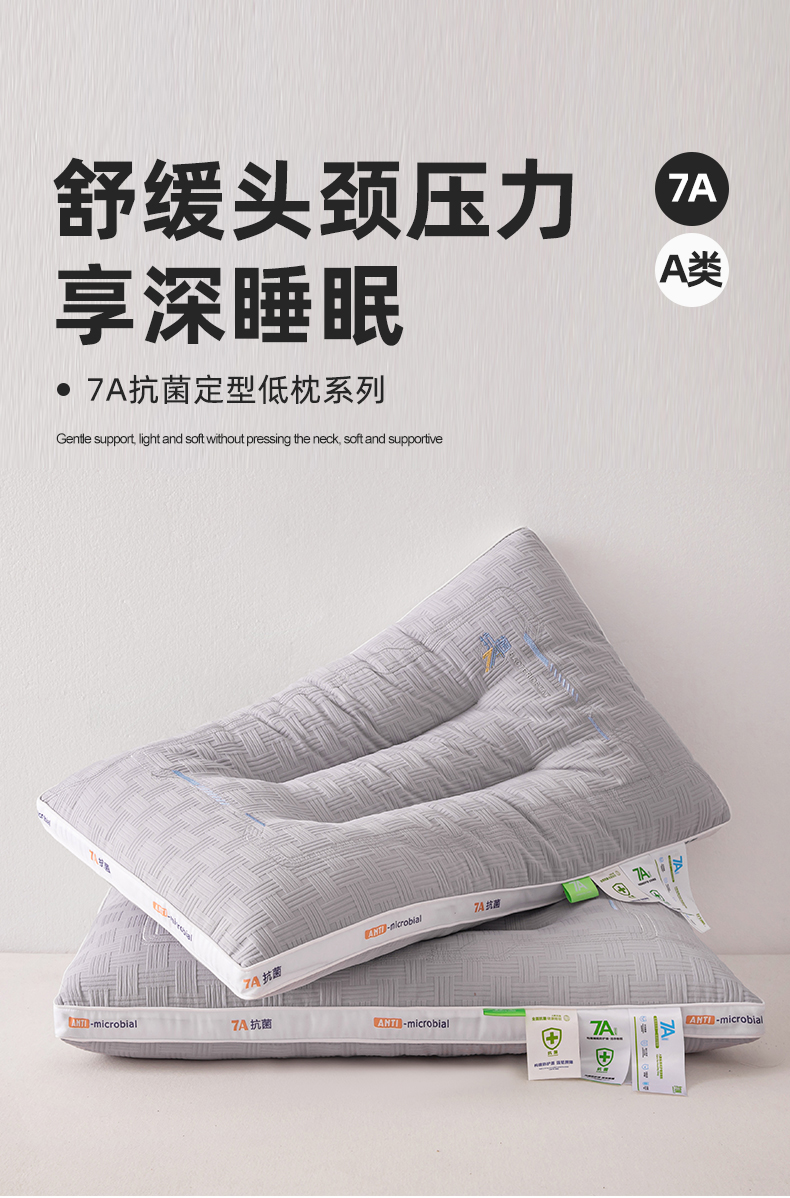 当前位置: 91家纺网 > 商品网购 > 枕头/枕芯/保健枕/颈椎枕 > 普通枕芯 > 麦肯锡 2025新款7A抗菌定型低枕 枕头枕芯 7A抗菌定型低枕-灰色 48x74cm/只