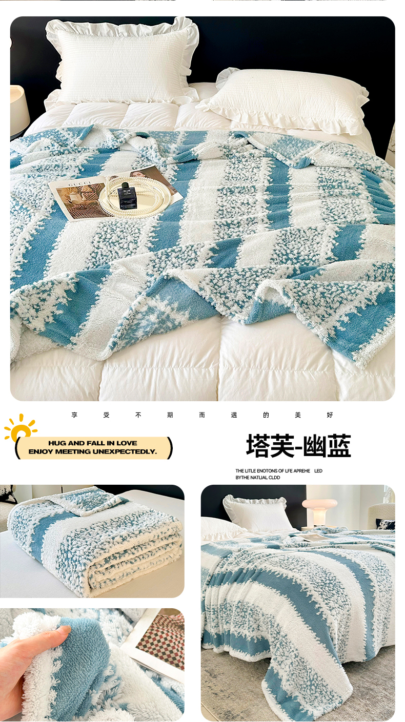 商品名称:春妮家纺 2025新款阳离子塔芙绒舒棉绒毛毯 塔芙-幽蓝