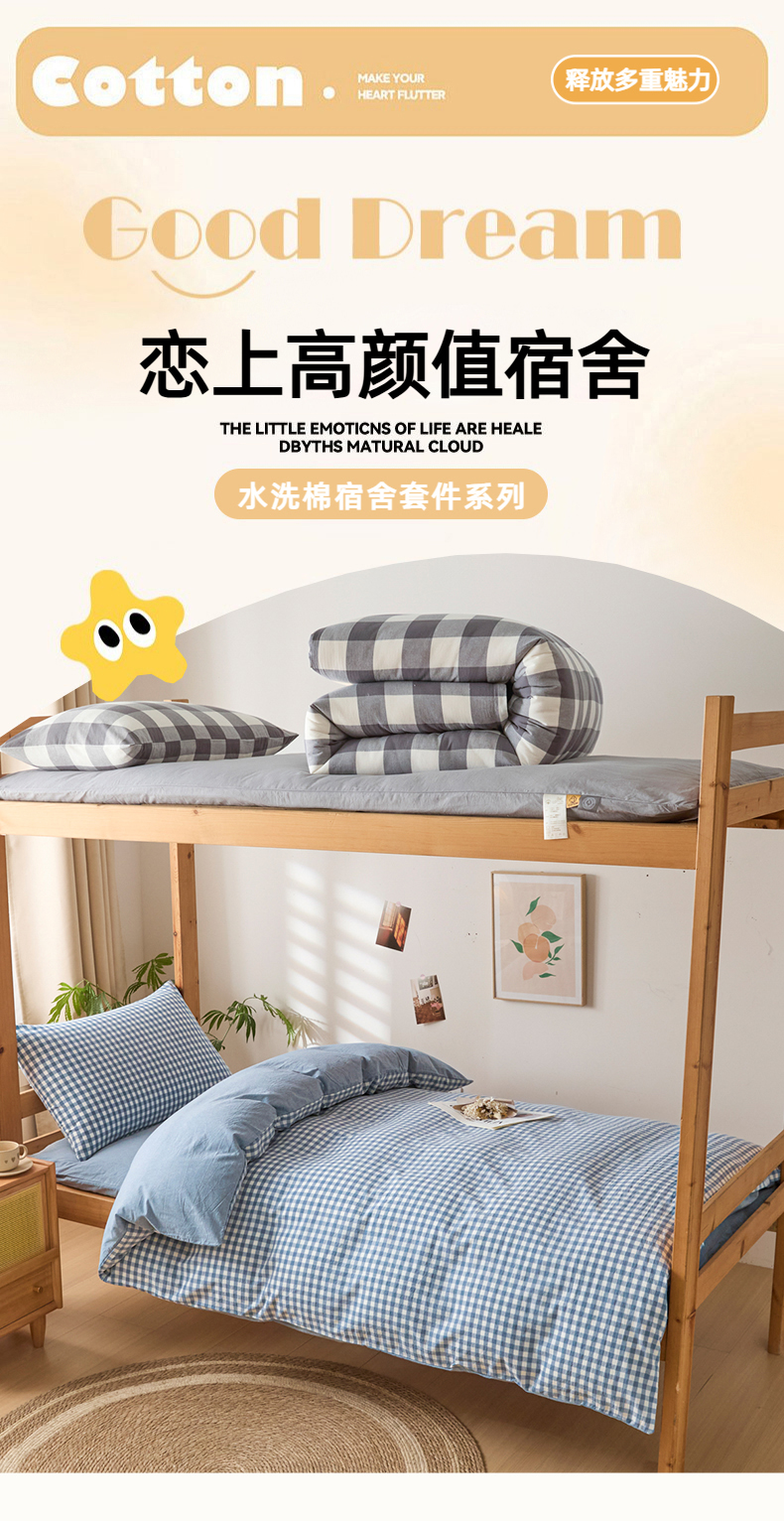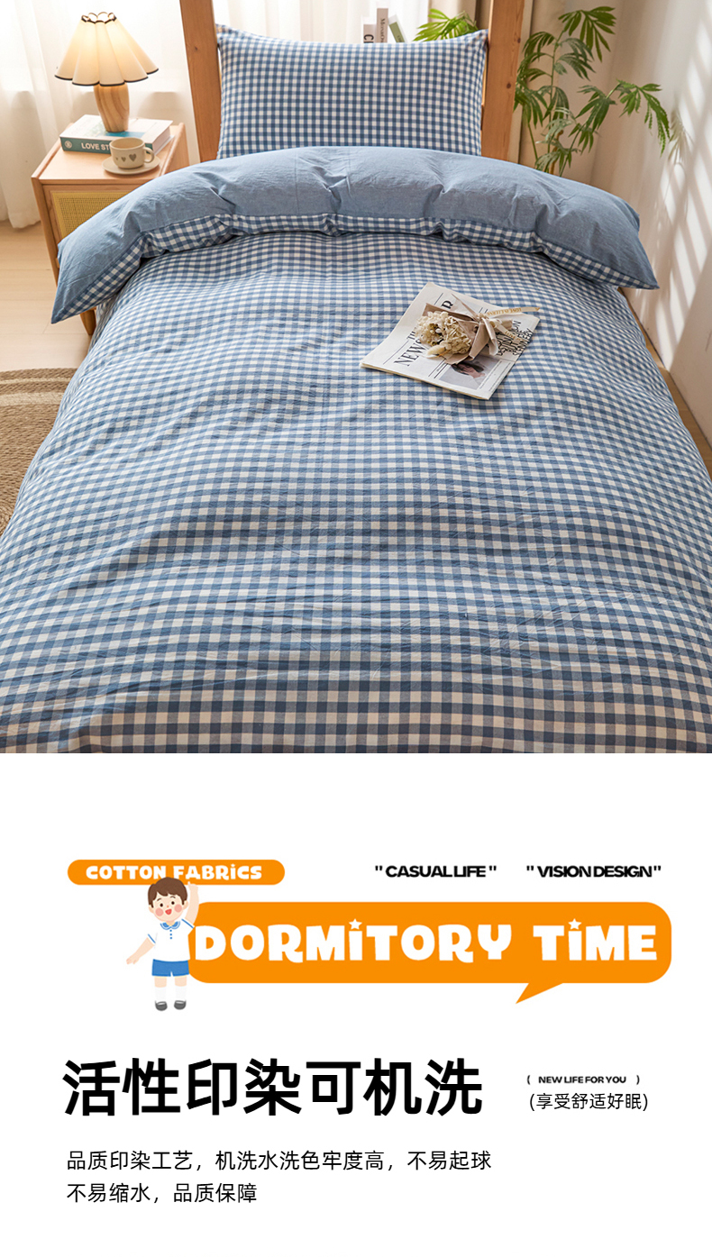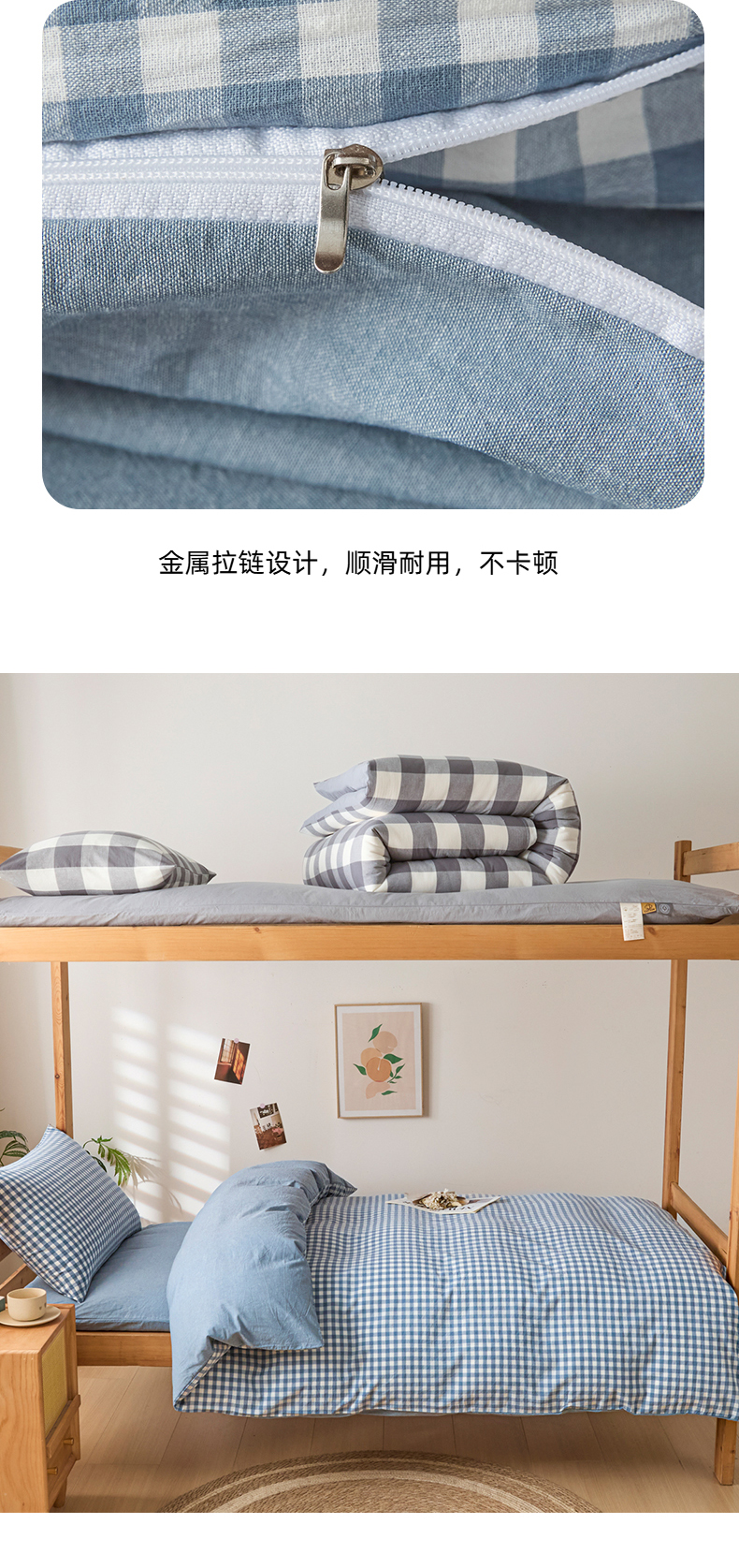 (总)爱屋及屋 2025新款水洗棉学生季大礼包学生宿舍六件套棉花被+棉花垫子+枕头+三件套一站式全套,海蓝大格,格韵蓝,光年灰,灰中格,简析粉,简析蓝,蓝咖大格,蓝小格,蓝中格,清新格,韵绿格,左岸蓝