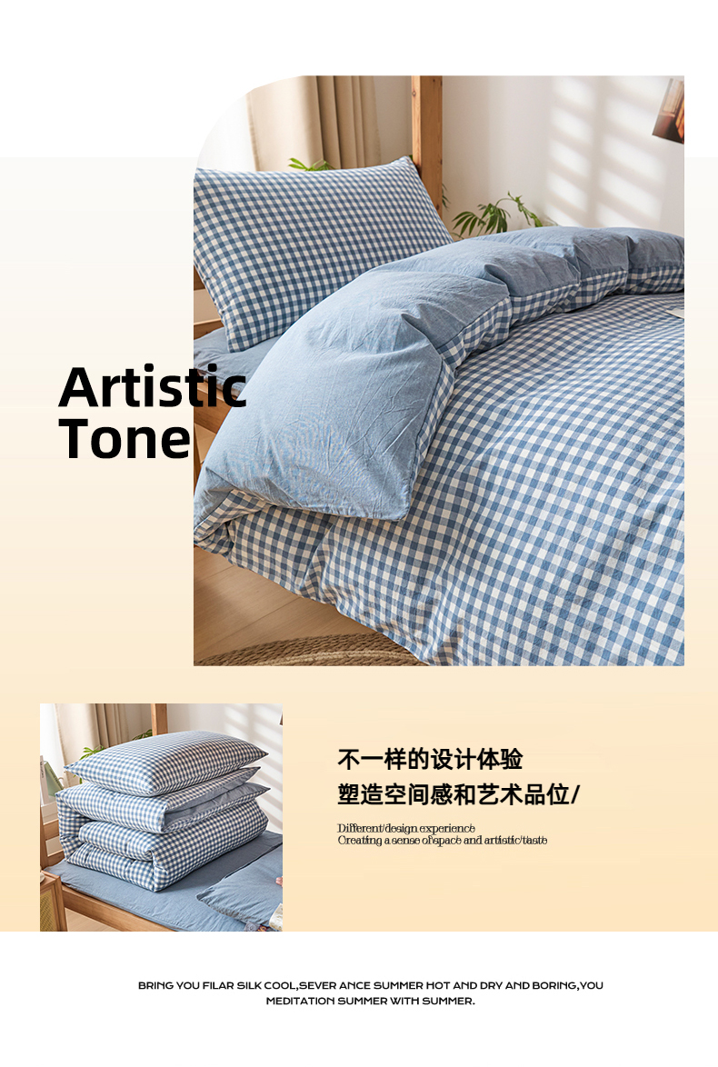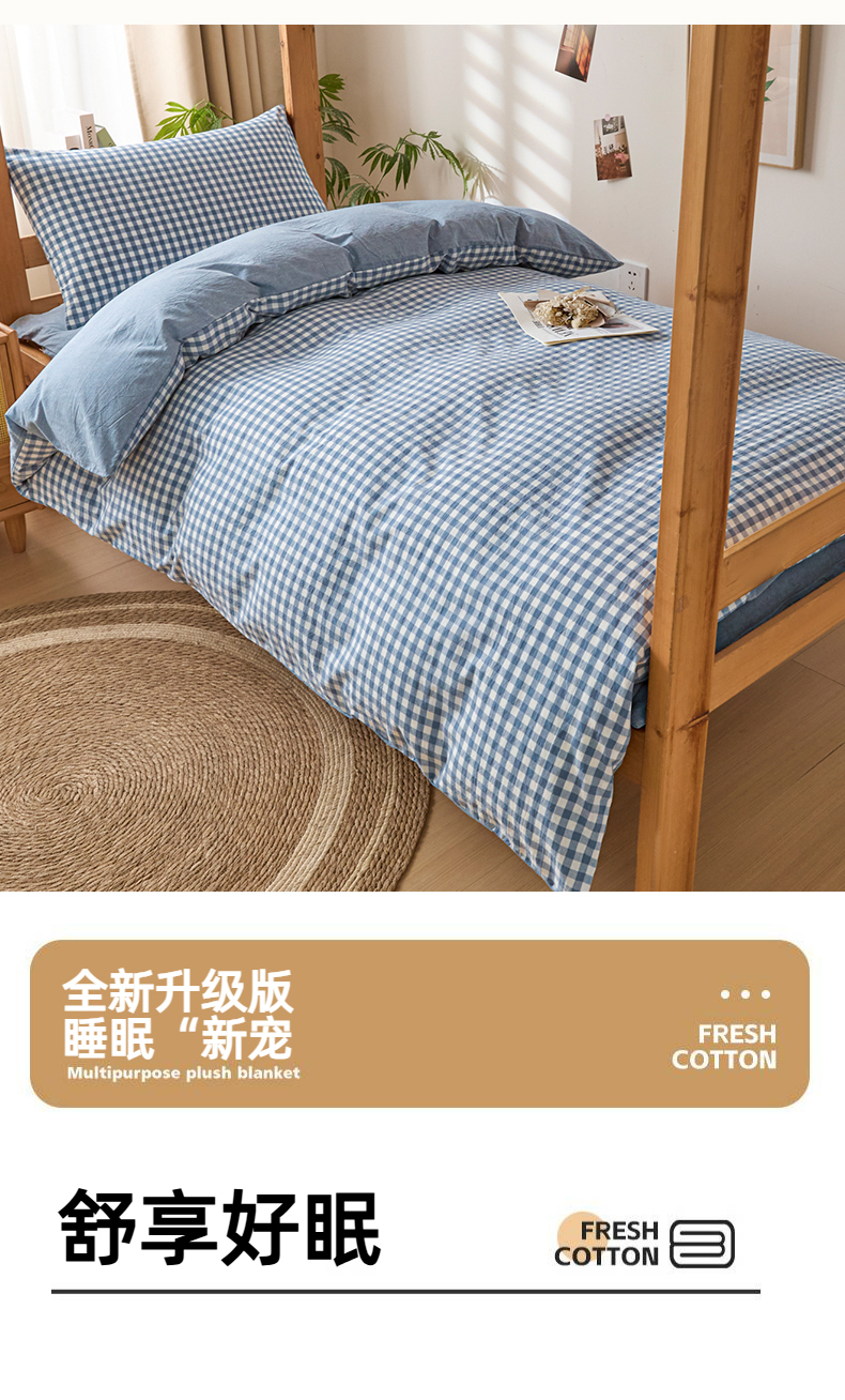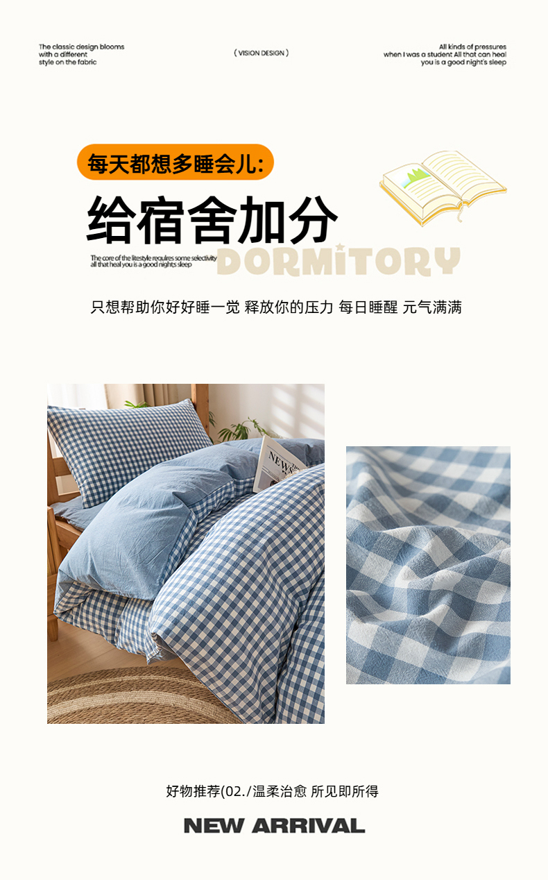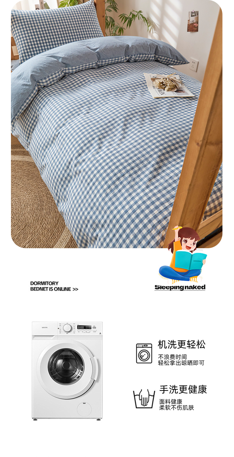 (总)爱屋及屋 2025新款水洗棉学生季大礼包学生宿舍六件套棉花被+棉花垫子+枕头+三件套一站式全套,海蓝大格,格韵蓝,光年灰,灰中格,简析粉,简析蓝,蓝咖大格,蓝小格,蓝中格,清新格,韵绿格,左岸蓝