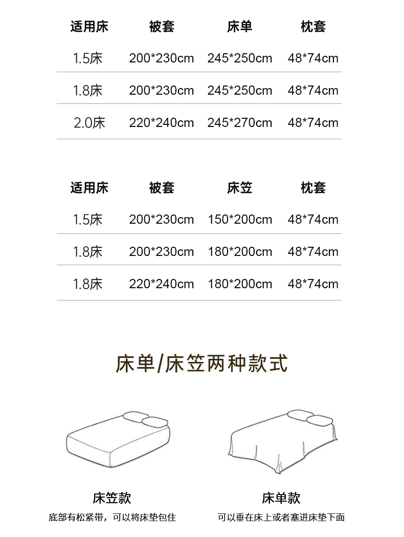 【床笠款】1.5四件套-被套200x230 | ¥190.00 |