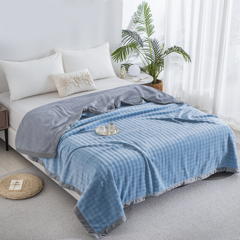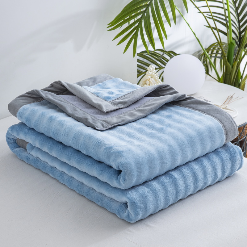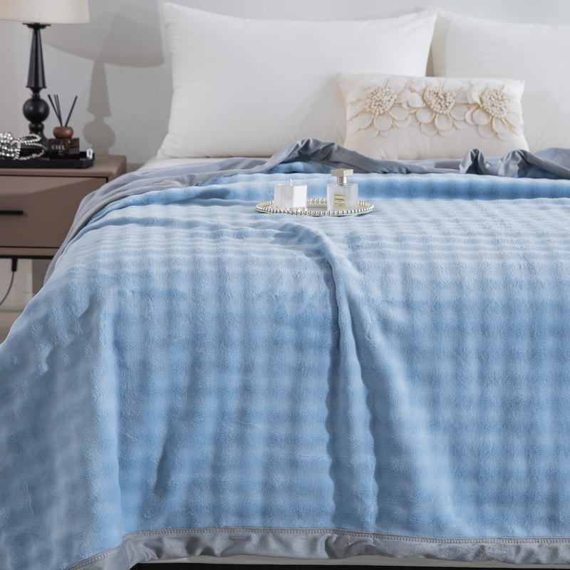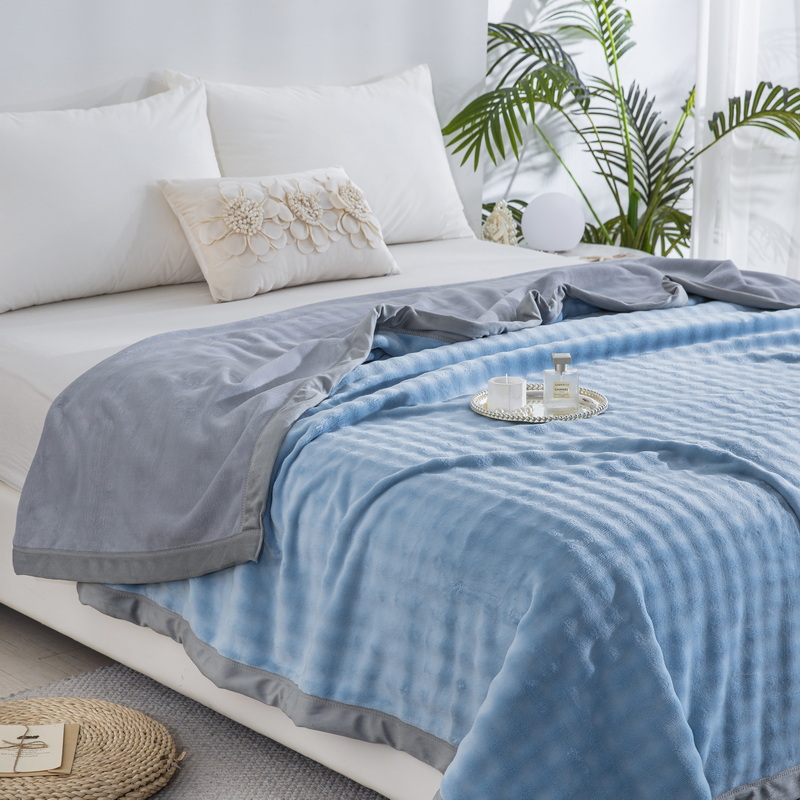卉晨家纺 2025新款牛奶绒纯色小泡泡复合毯 天空蓝