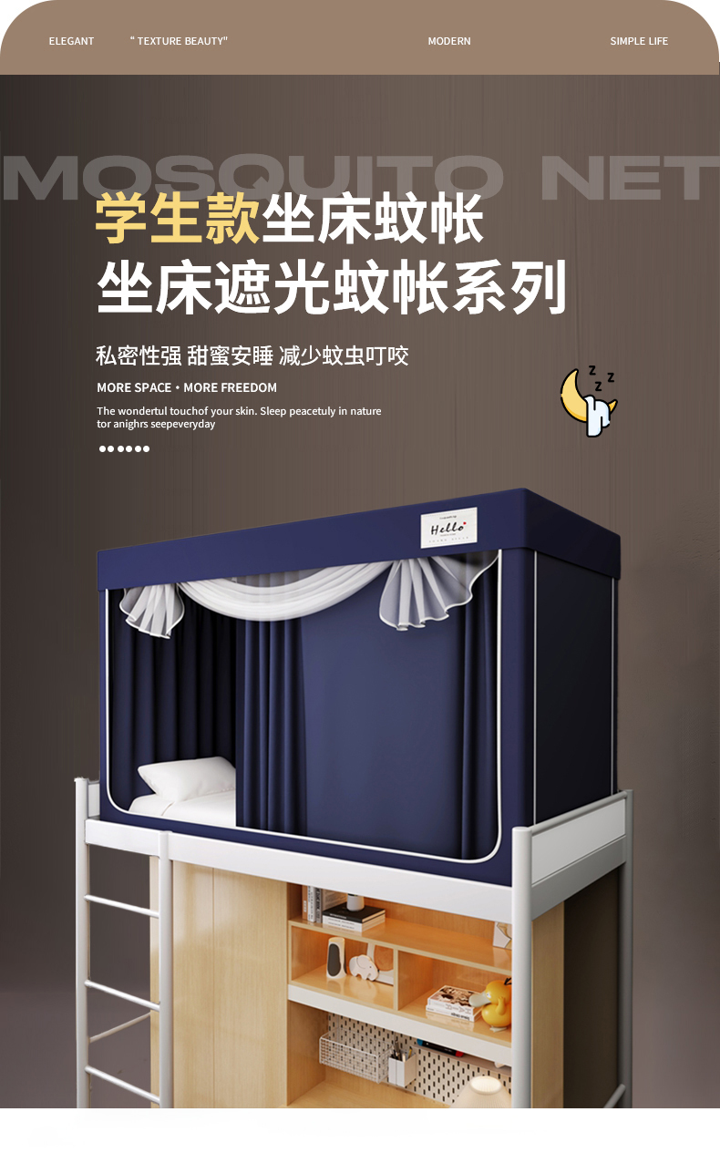 • 91家纺网 家纺一手货源 找家纺 青竹苑 2025新款织标印花纯色强遮光坐床学生蚊帐 幸运酣睡宝蓝