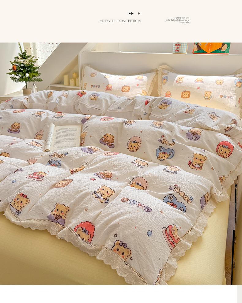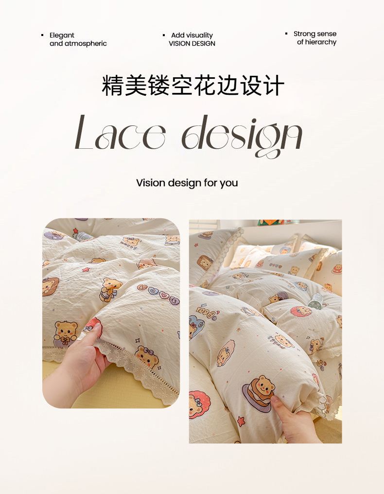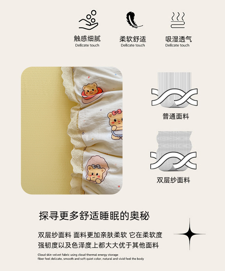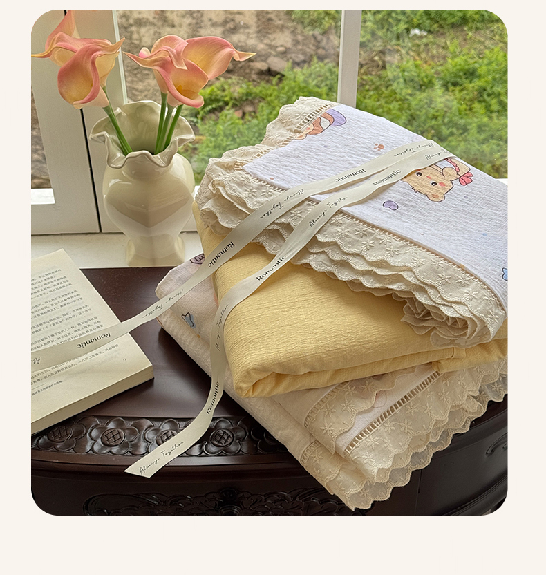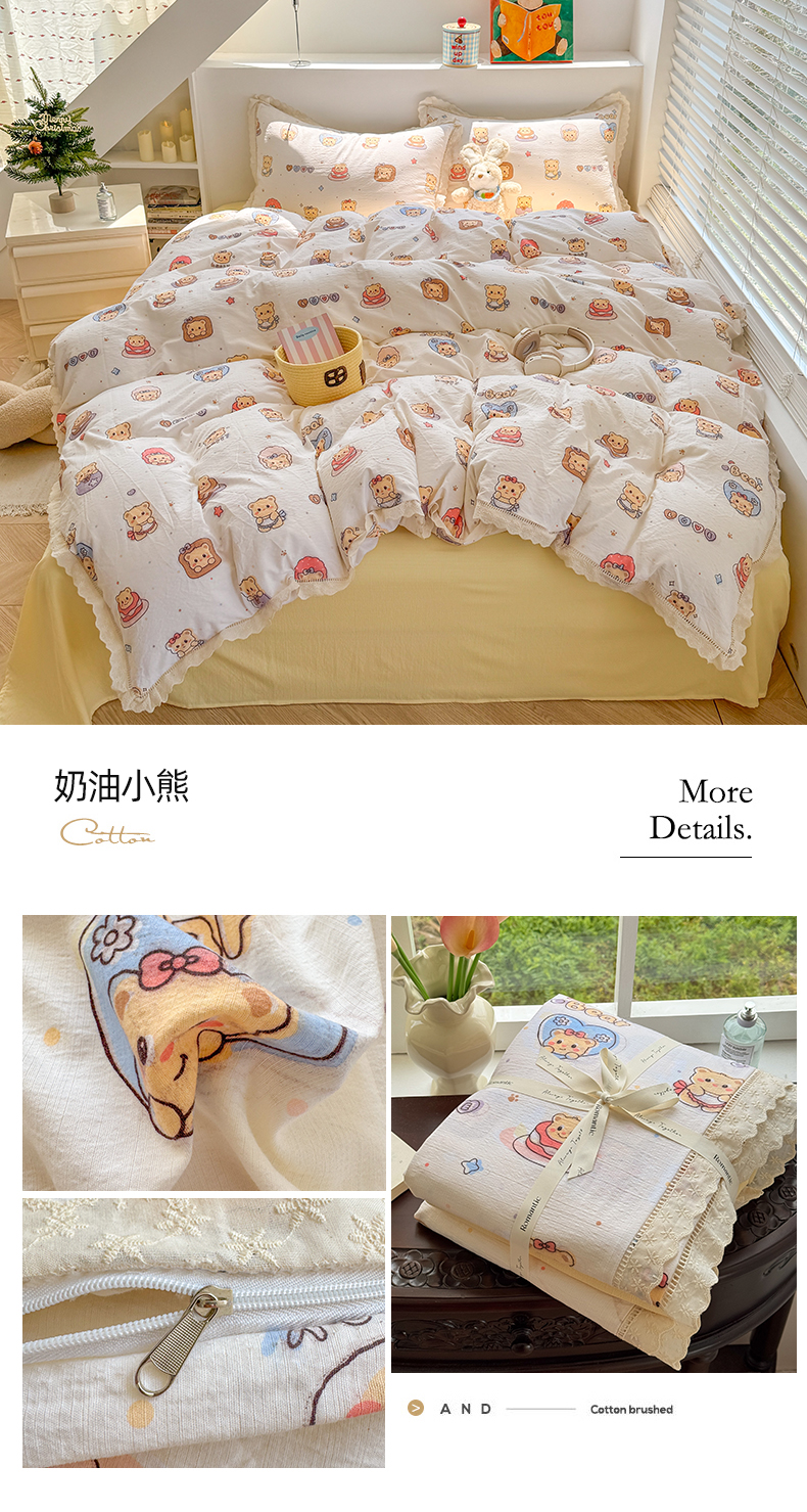 当前位置: 91家纺网 > 商品网购 > 床品套件 > 四件套 > 其它四件套 > 艾特你 2025新款云感双层纱镂空花边四件套 花边款-奶油熊