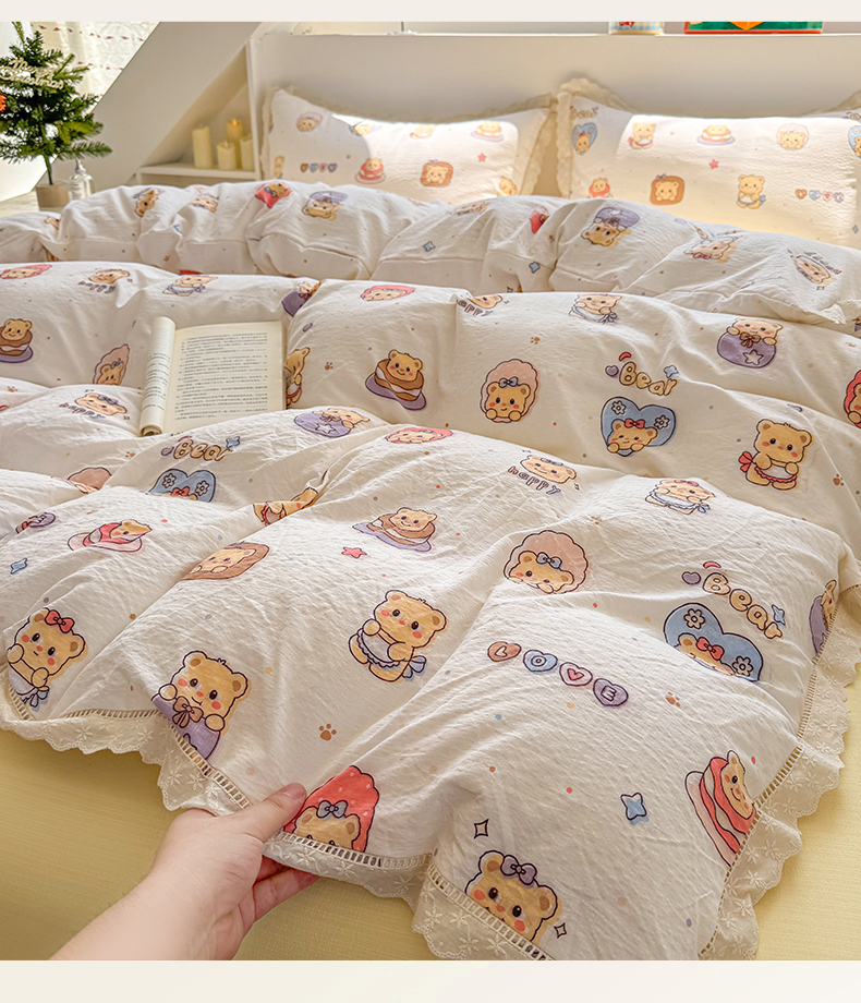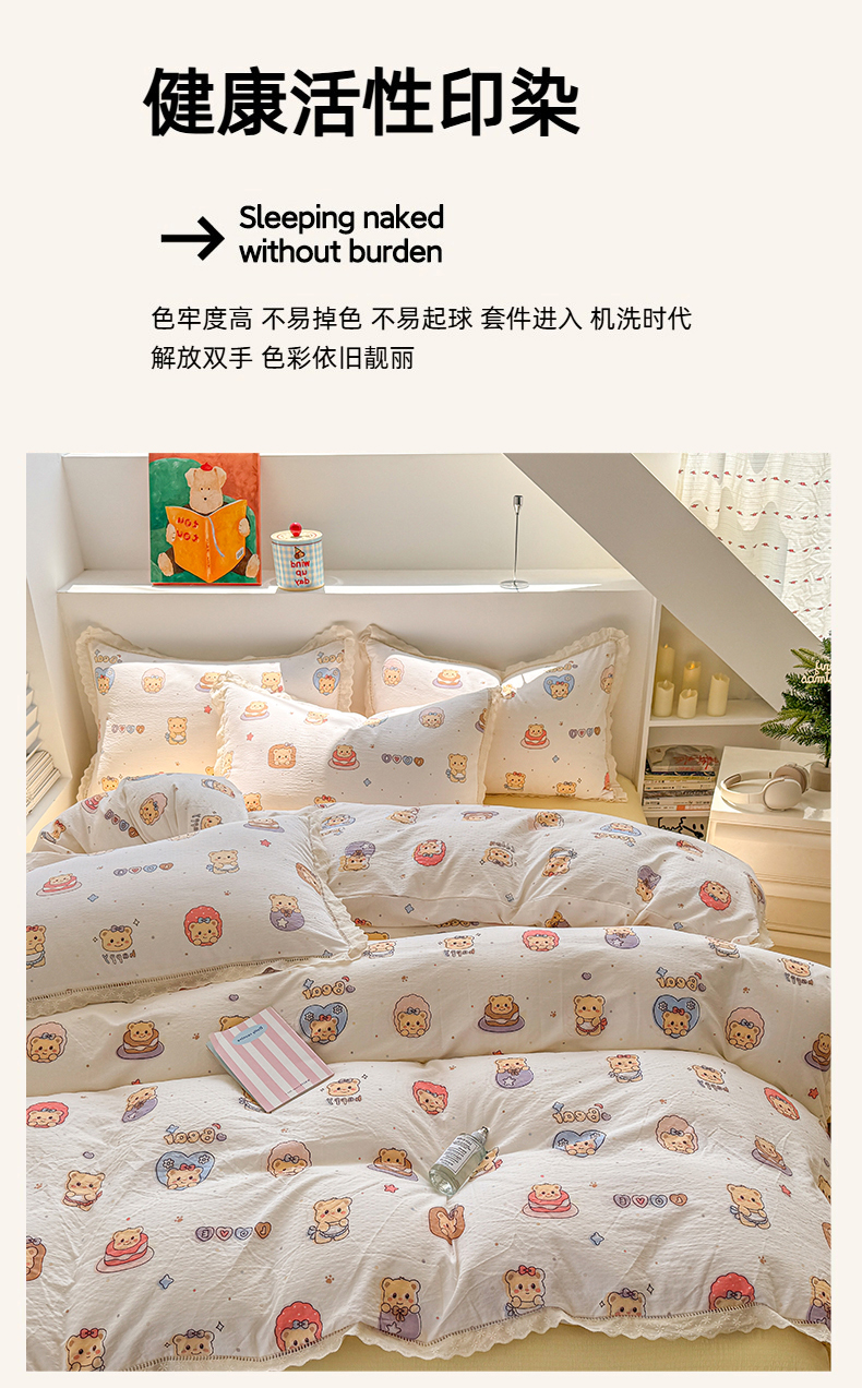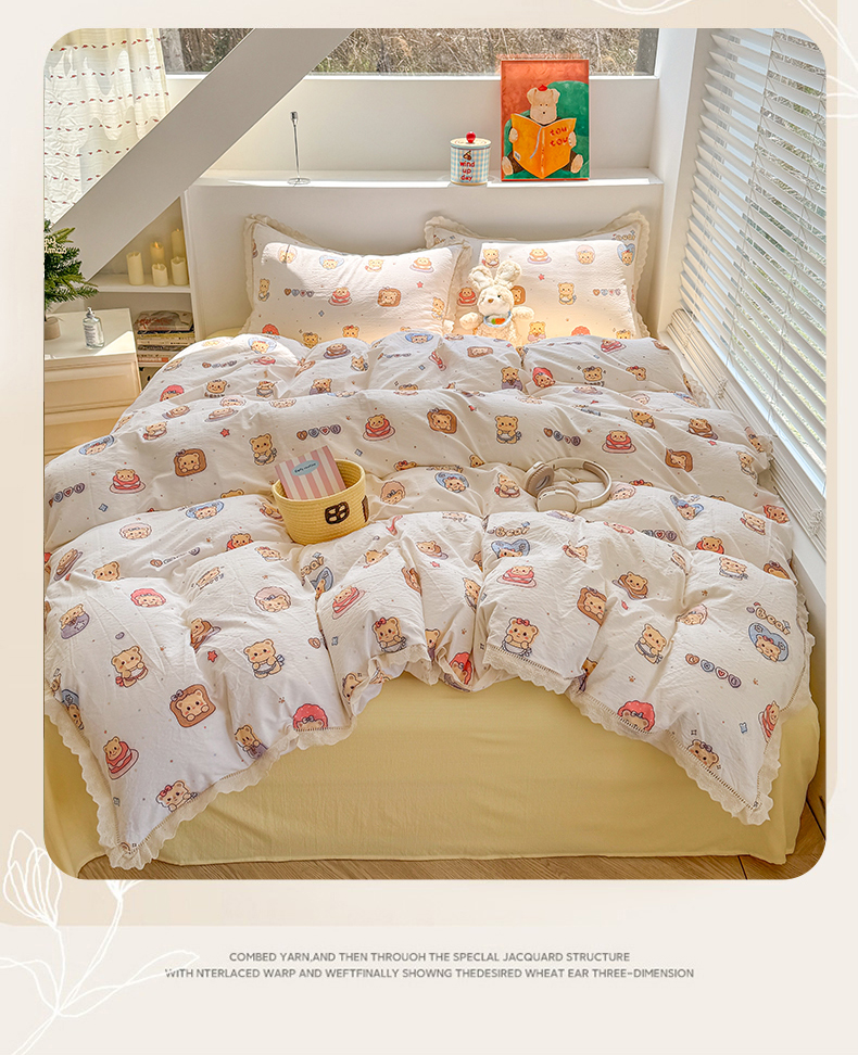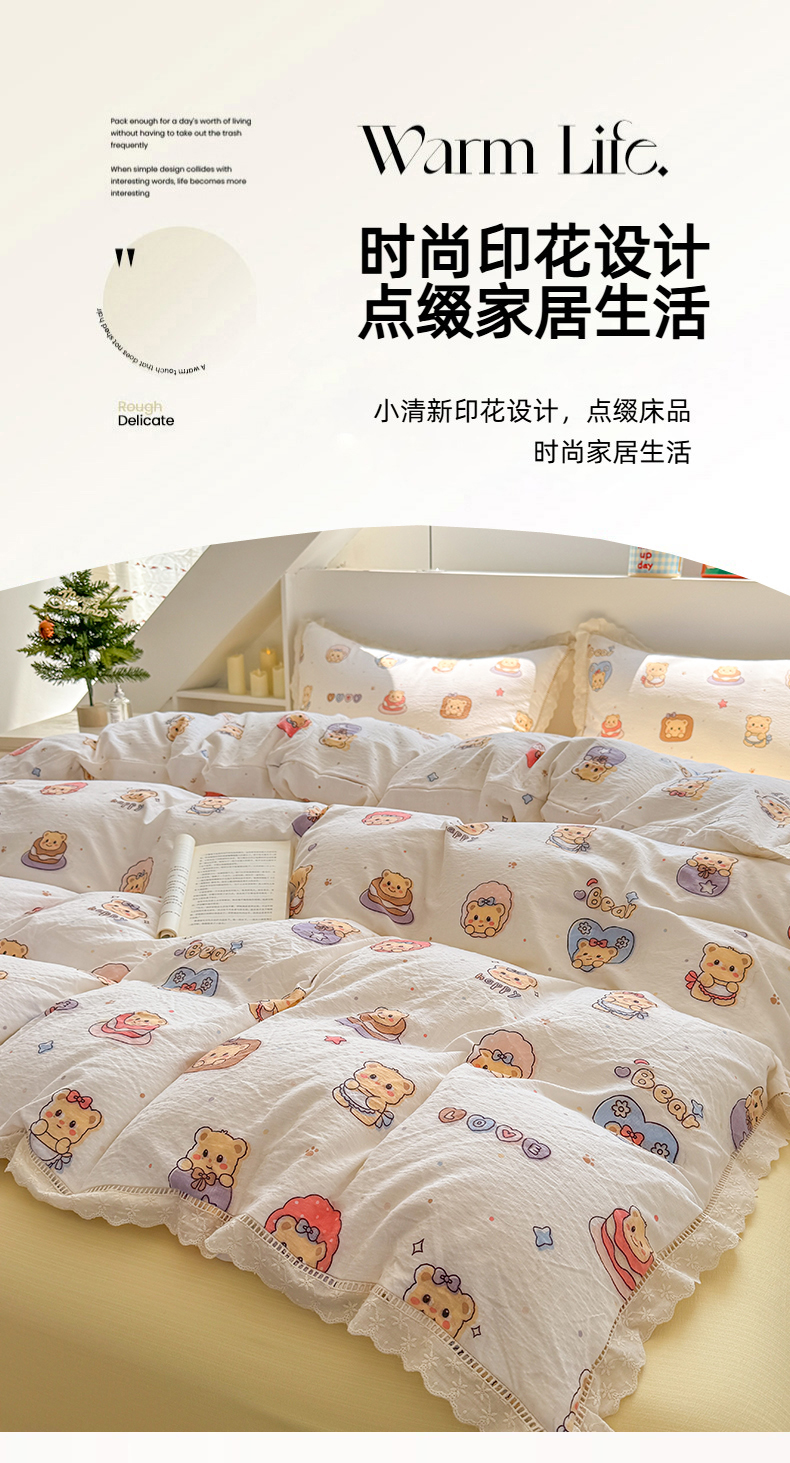 当前位置: 91家纺网 > 商品网购 > 床品套件 > 四件套 > 其它四件套 > 艾特你 2025新款云感双层纱镂空花边四件套 花边款-奶油熊
