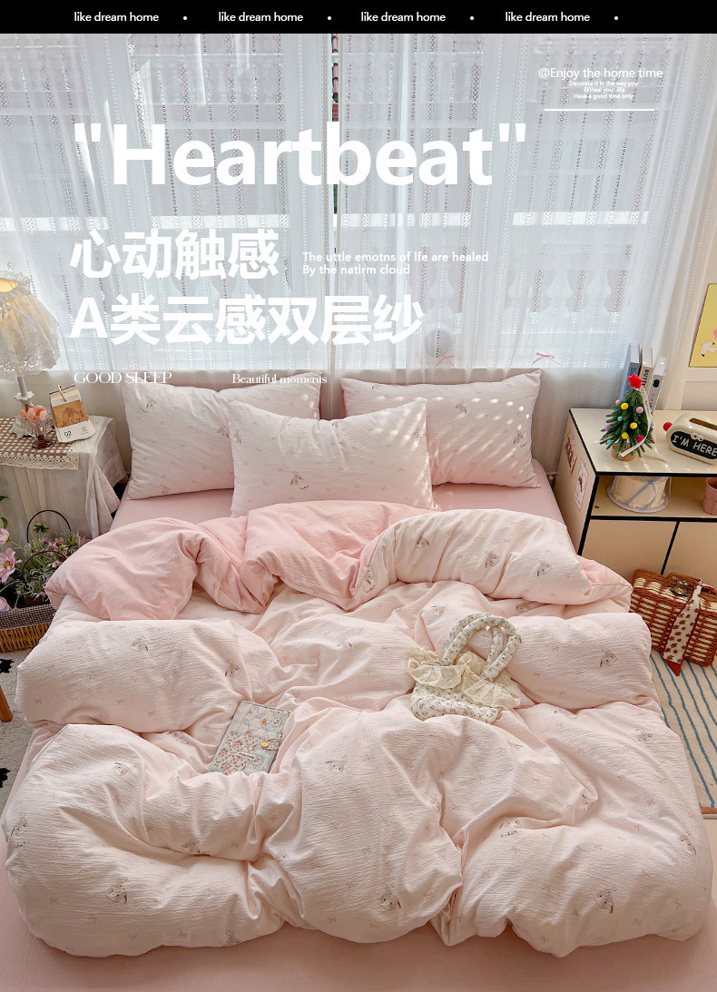 当前位置: 91家纺网 > 商品网购 > 床品套件 > 四件套 > 双层纱四件套 > 水木坊 2025新款A云感双层纱四件套-浪漫 浪漫-兔叽叽