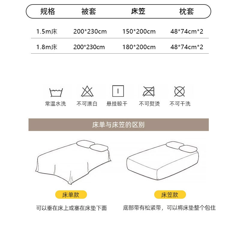 【床笠款】1.8四件套-被套200x230 | ¥52.00 |