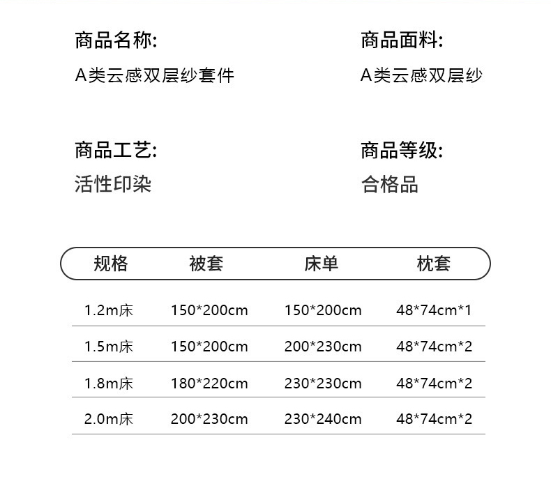 【床笠款】1.5四件套-被套200x230 | ¥52.00 |
