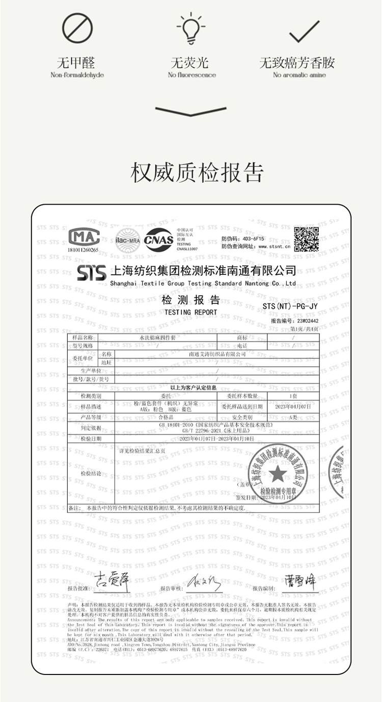 4、通州区市场监管局川姜分局友情提醒:近期针对抗静电,无静电,抗菌防螨,及有关舒适度,百分比的举报高发。为不影响商品正常销售,请各商家高度重视,自检自查及时整改,谢谢配合!