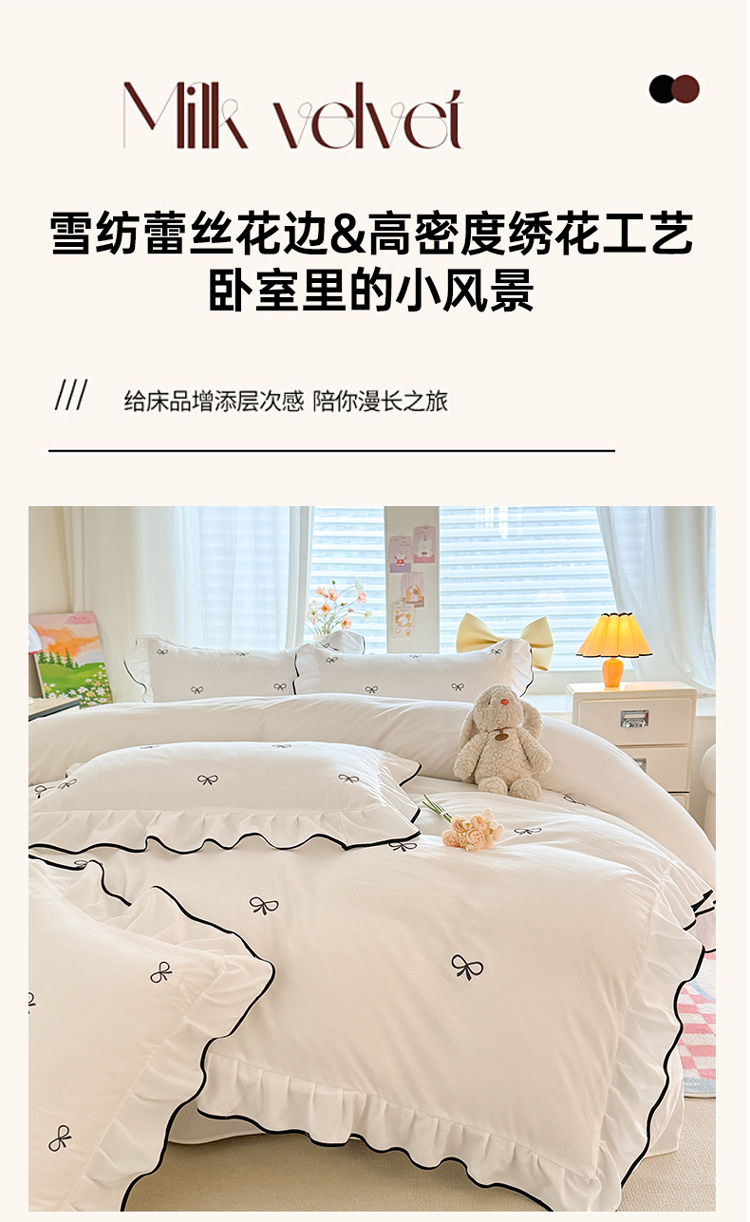(总)漫布云 2026新款230g高克重韩版立体盘花牛奶蚕丝绒绣花四件套床裙款被套-洛丽塔系列,洛丽塔-嫩黄 ,洛丽塔-香芋紫,洛丽塔-珍珠粉, 洛丽塔-婴儿蓝