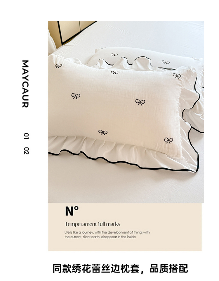 商品名称:漫步云家纺2026春夏新品韩版花边超柔水洗棉纯棉全棉蝴蝶结刺绣四件套 蝶儿飞飞--梦幻紫