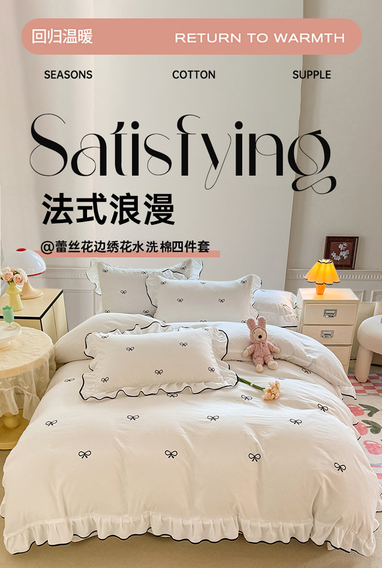 (总)漫布云家纺 2026春夏新款超柔云朵棉古法水洗棉床盖款四件套--小清新系列,花开半夏 , 萌宠乐园, 兰亭序 ,绿野仙踪, 陌上花开, 紫韵花梦 ,海盐拿铁