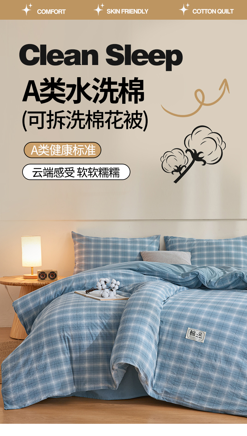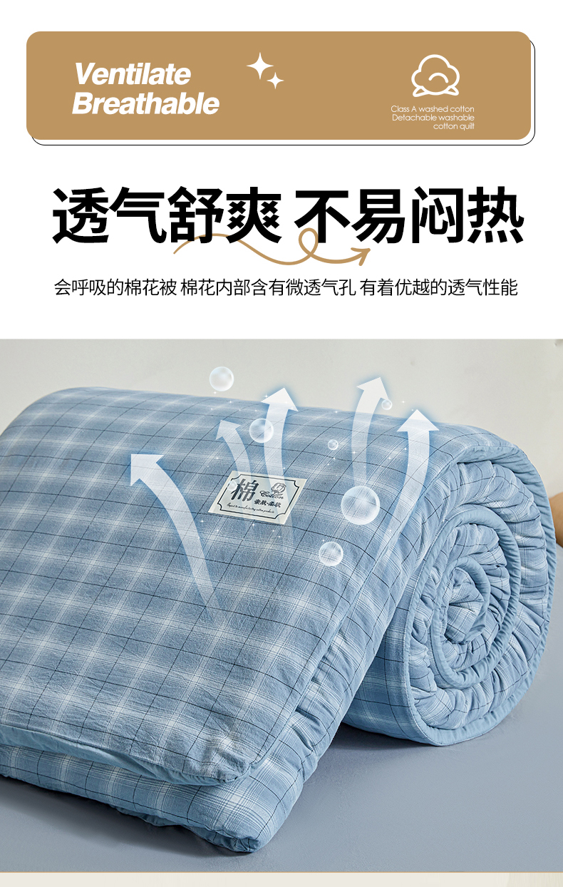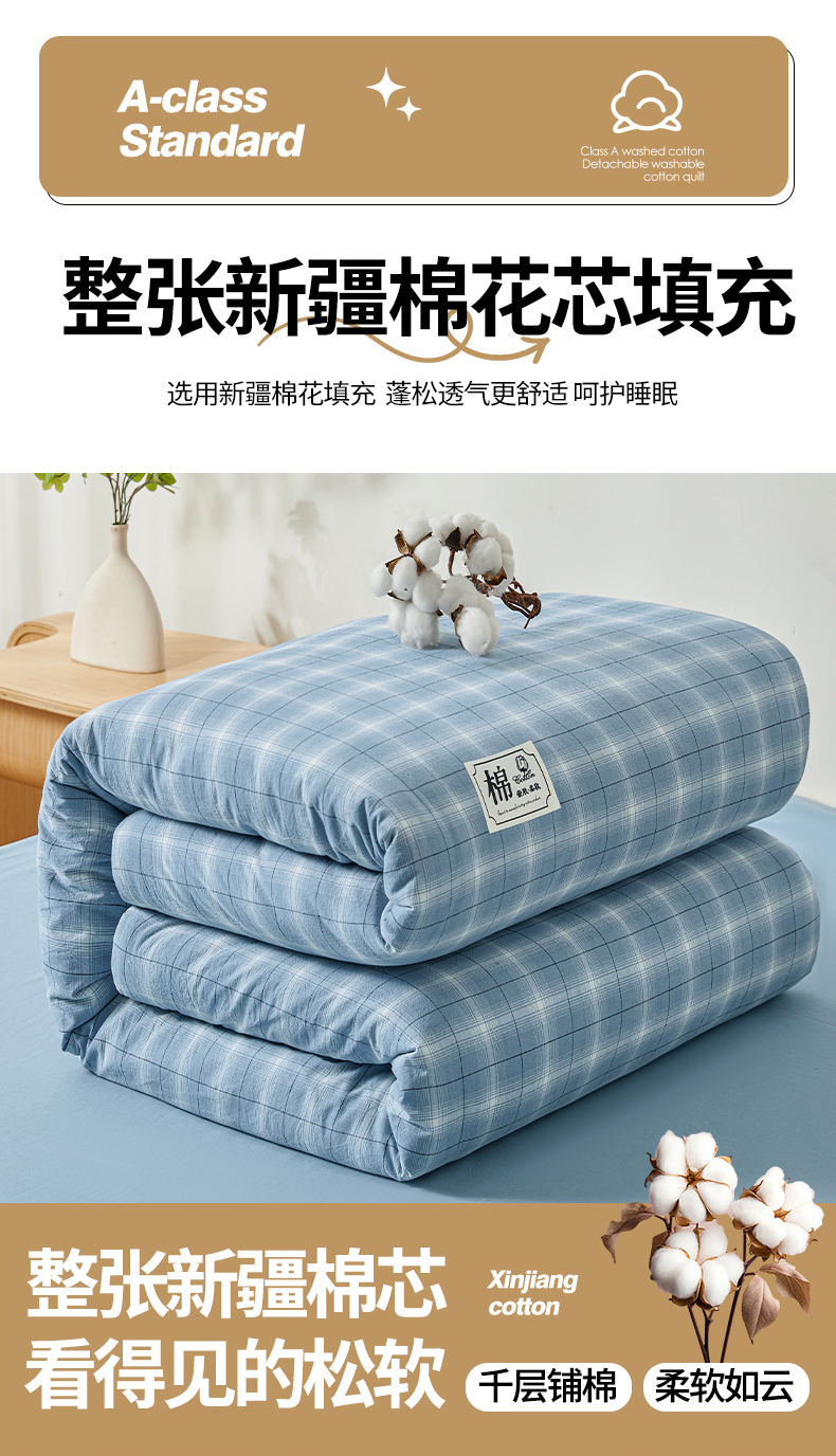 • 91家纺网 家纺一手货源 找家纺 晓时候 2025新款A类水洗棉可拆洗新疆棉花被冬被春秋被夏被四季被子被芯 森蓝格