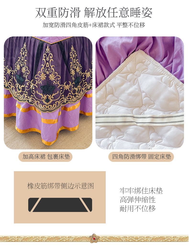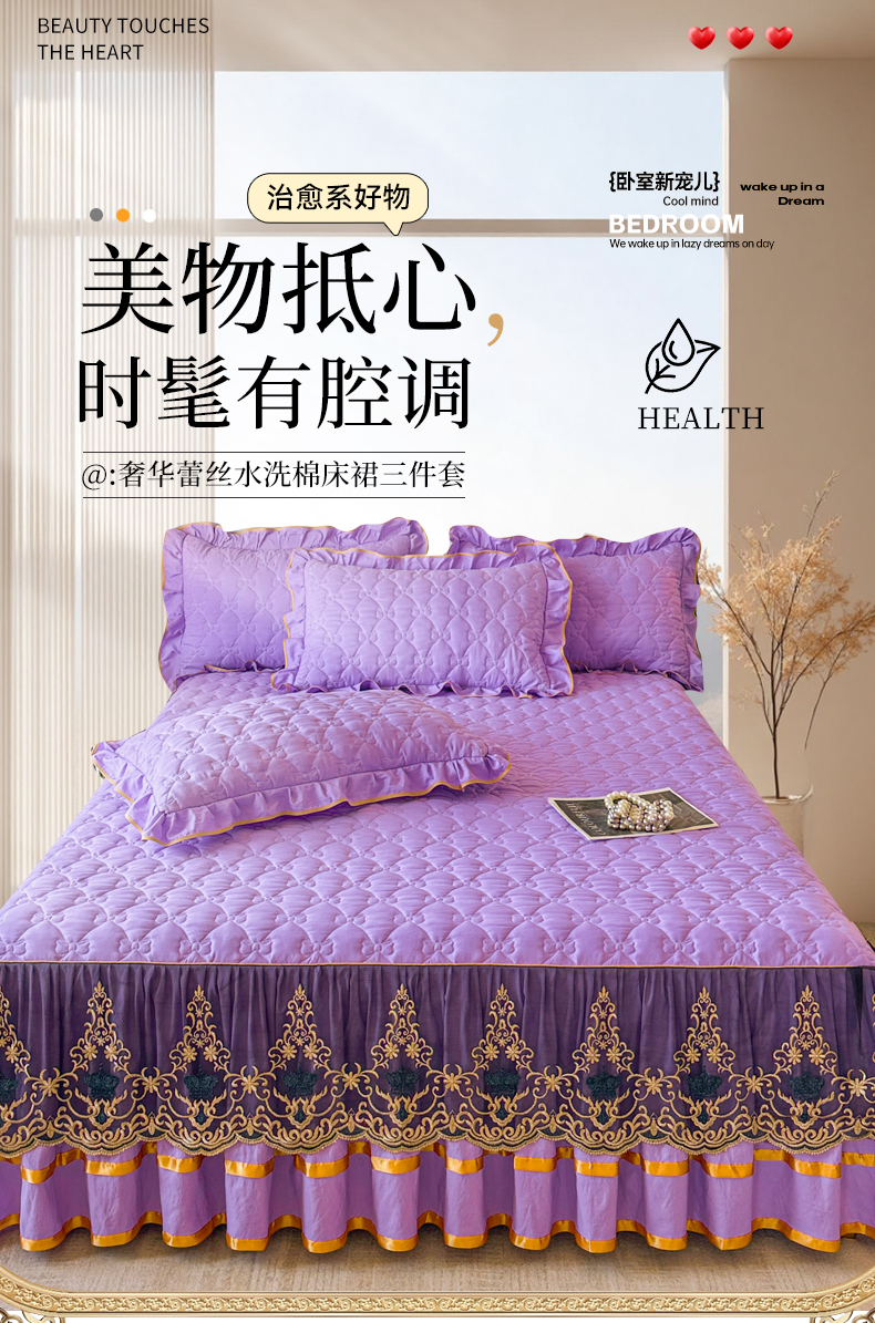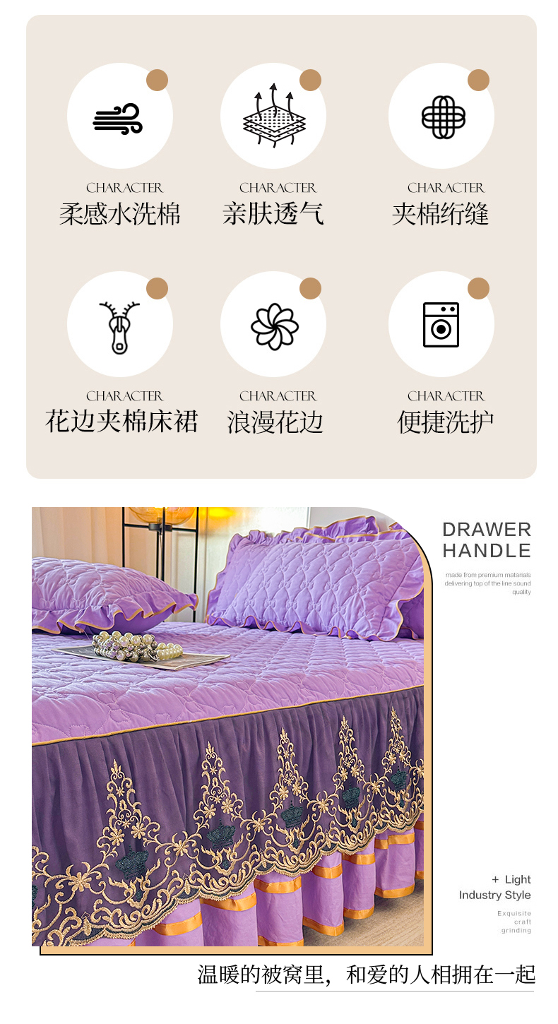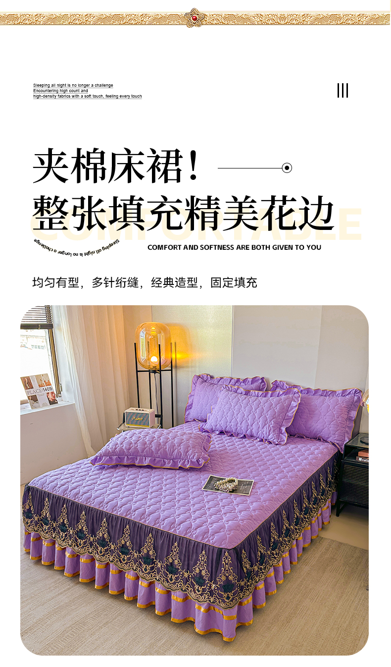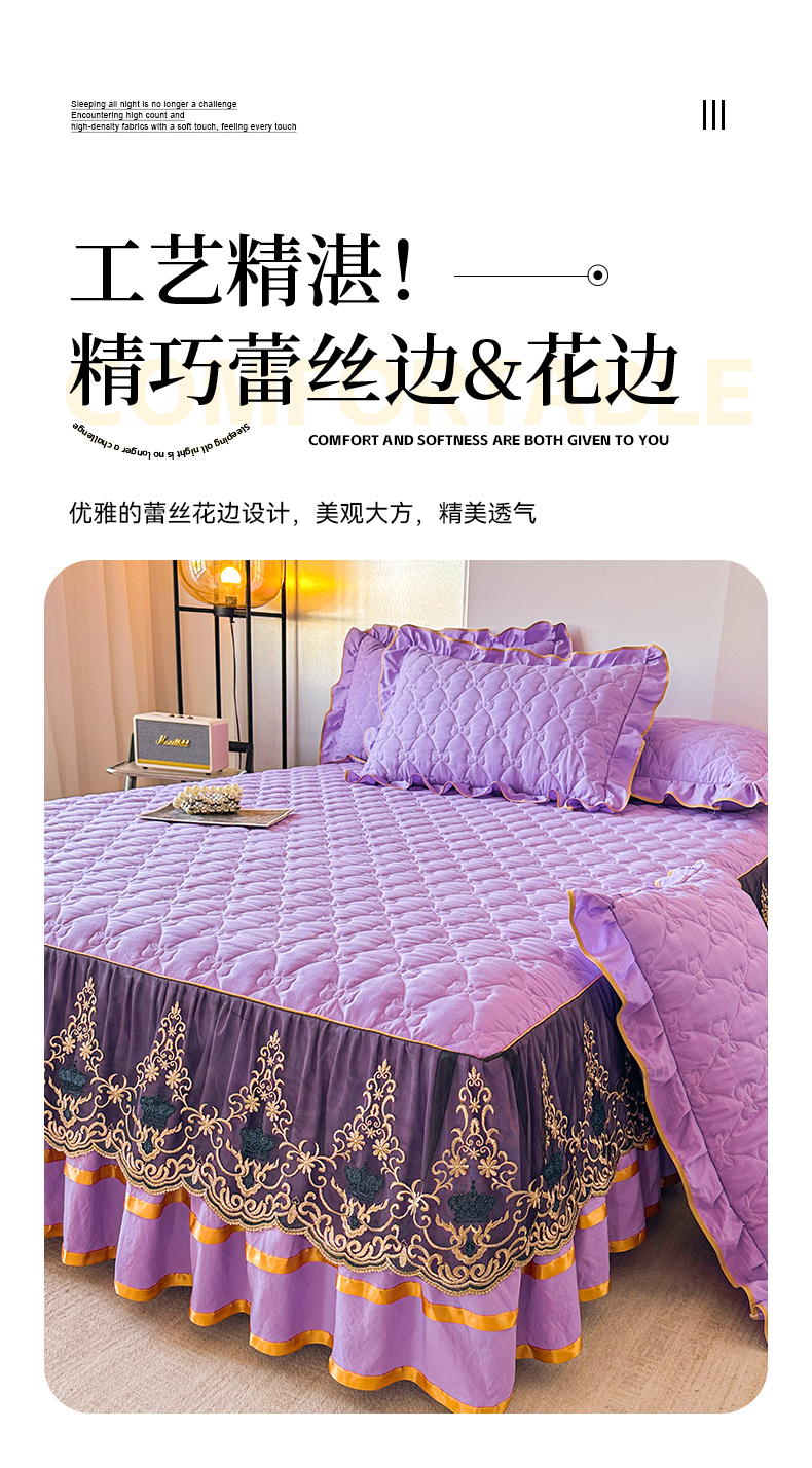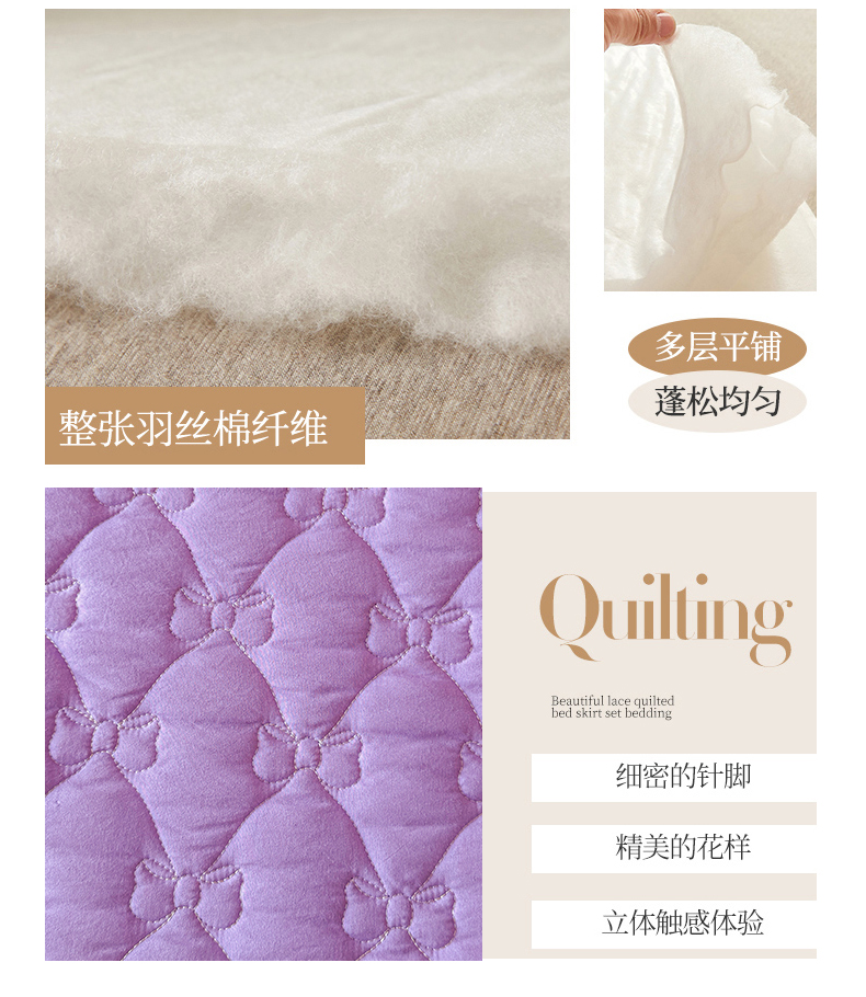 (总)屹成家纺2025新款水晶绒夹棉绗缝蕾丝床裙三件套(塞纳河畔)床裙单件起售价不低于105元,大红,豆沙,翡翠绿,粉玉,橄榄绿,蔚蓝,银灰