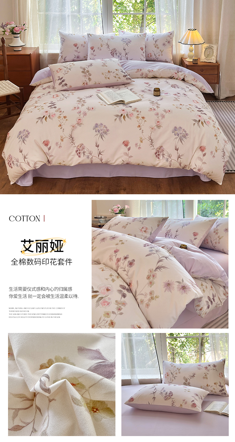 当前位置: 91家纺网 > 商品网购 > 床品套件 > 四件套 > 全棉普通四件套 > 优彩 2025新款数码印花全棉纯棉磨毛四件套 艾丽娅