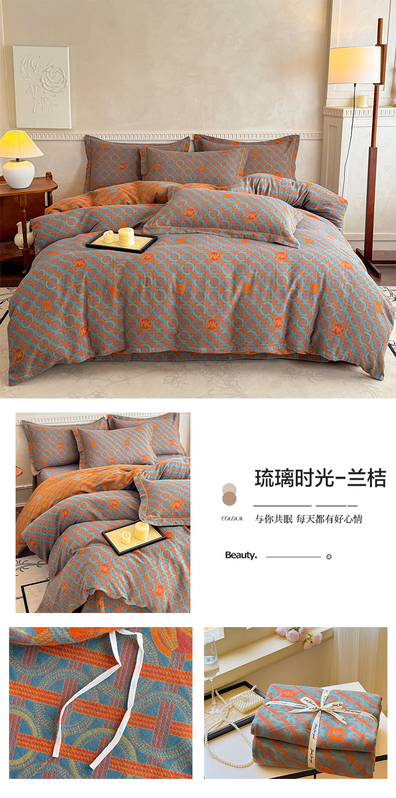 当前位置: 91家纺网 > 商品网购 > 床品套件 > 四件套 > 双层纱四件套 > 江南春家纺 【幻-暖纱】2025新款A类100%全棉色织提花双层纱四件套 【幻-暖纱】琉璃时光-兰桔
