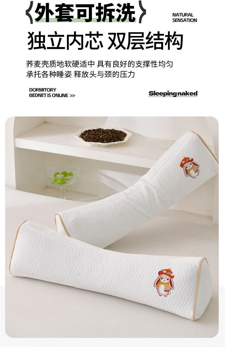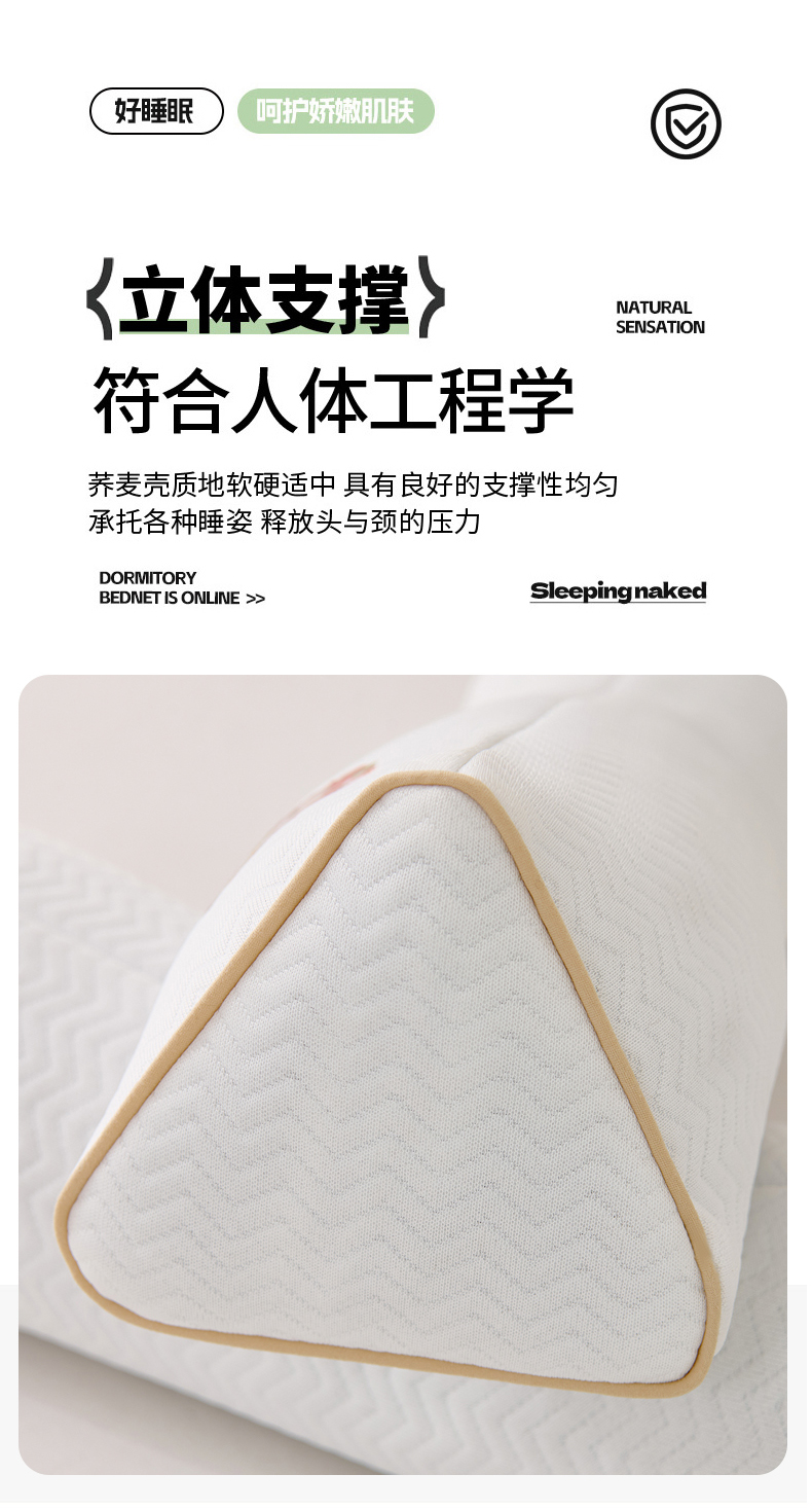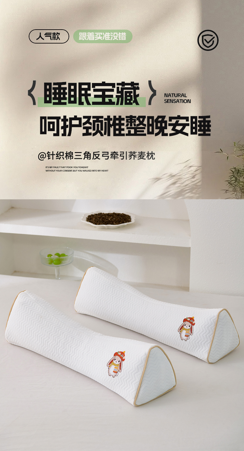 商品名称:(总)大熊枕芯 2025新款针织刺绣款三角荞麦枕全荞麦壳枕头枕芯