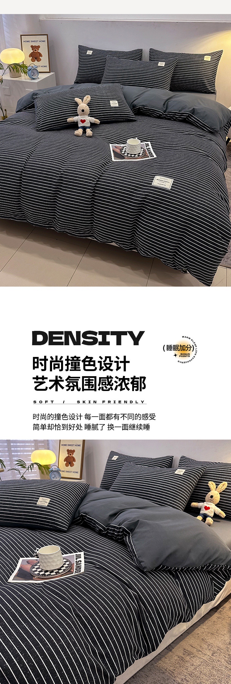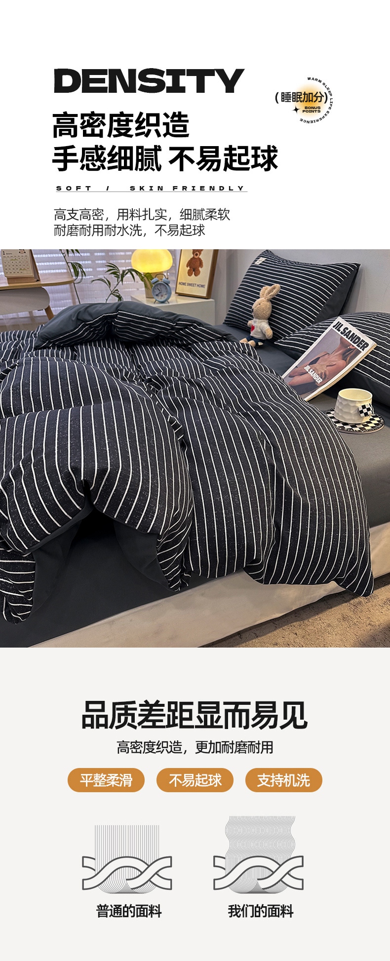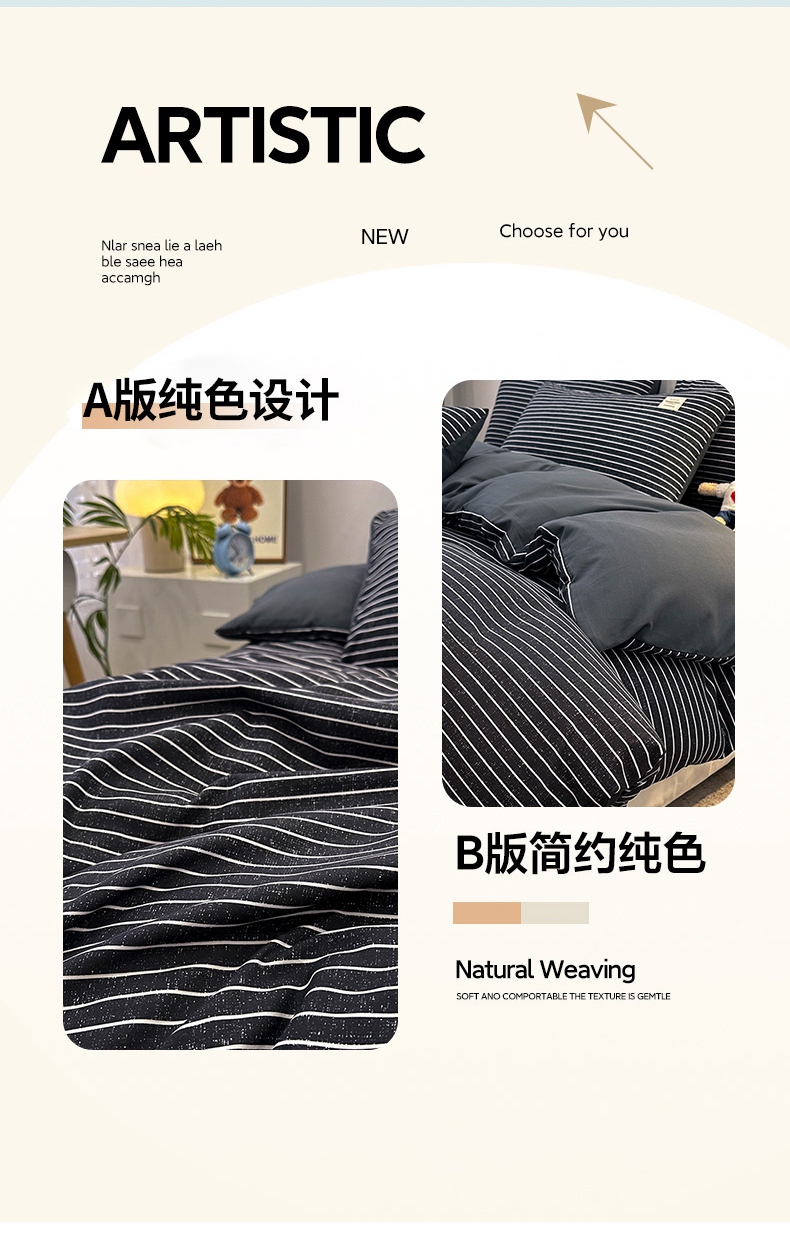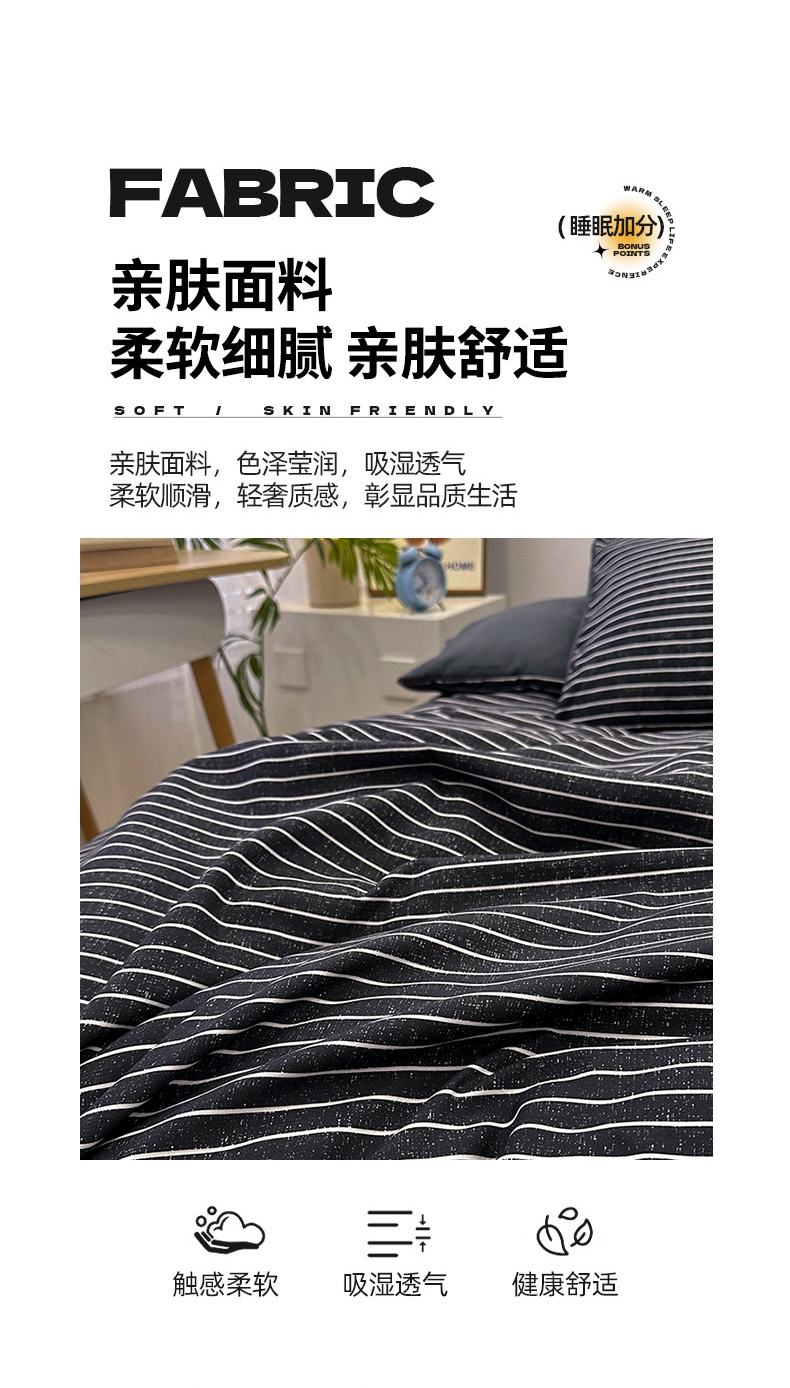 当前位置: 91家纺网 > 商品网购 > 床品套件 > 四件套 > 普通磨毛四件套 > 优纤家纺 2025新款简约亲肤四件套床单床笠学生三件套-格子条纹系列 黑白条