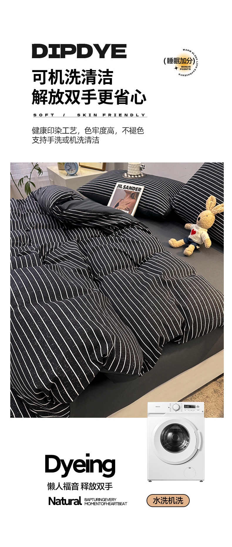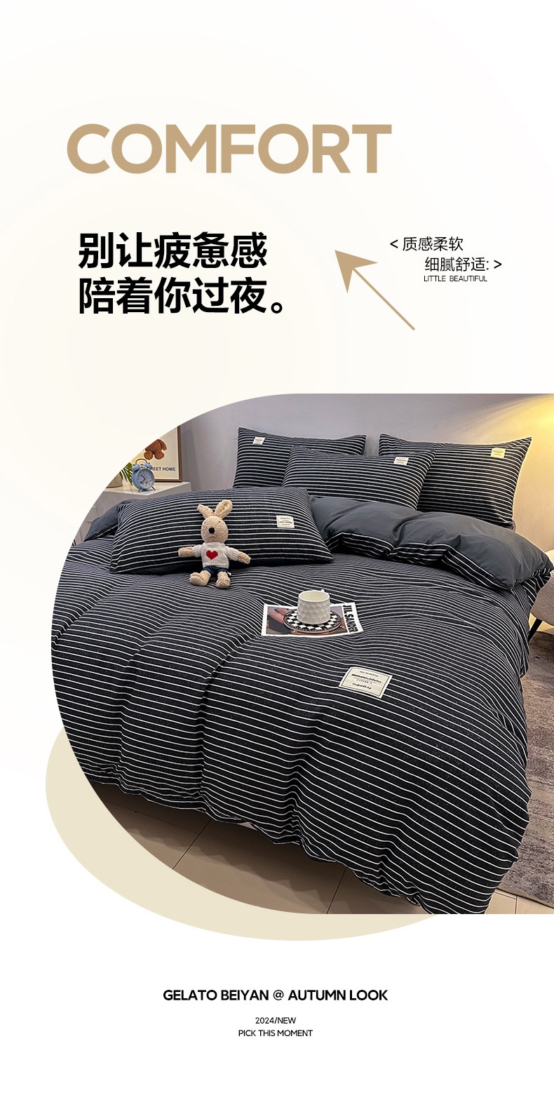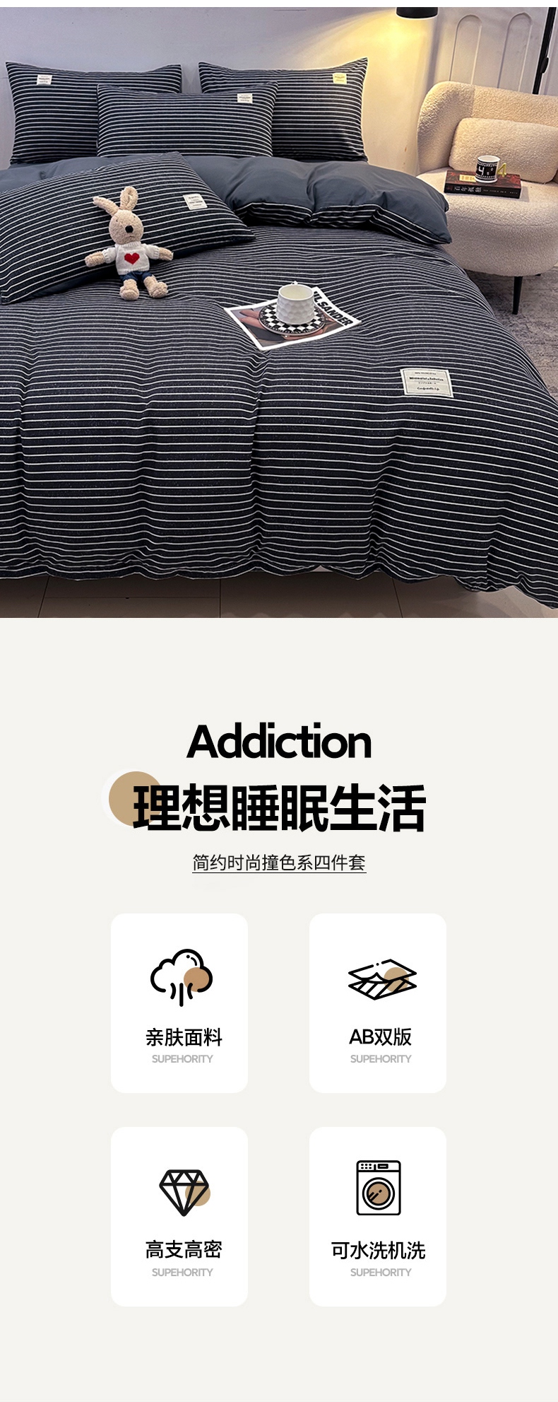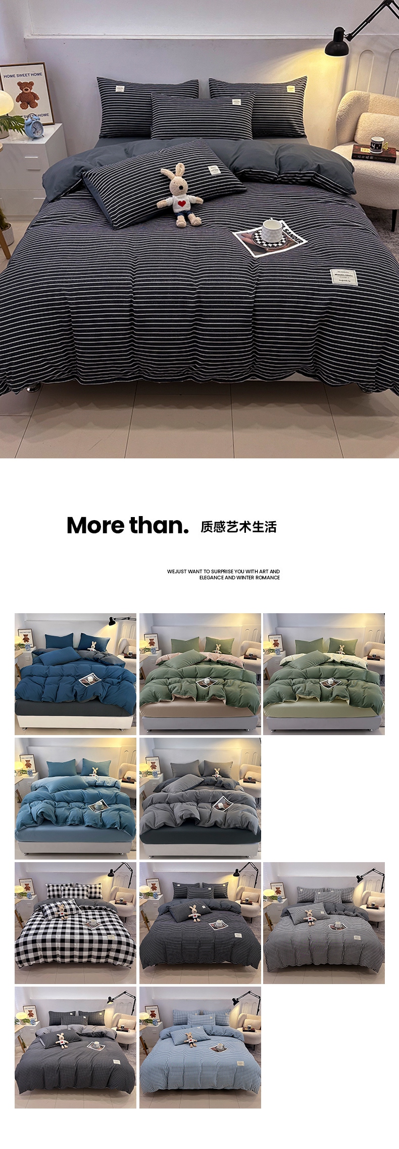 当前位置: 91家纺网 > 商品网购 > 床品套件 > 四件套 > 普通磨毛四件套 > 优纤家纺 2025新款简约亲肤四件套床单床笠学生三件套-格子条纹系列 黑白条